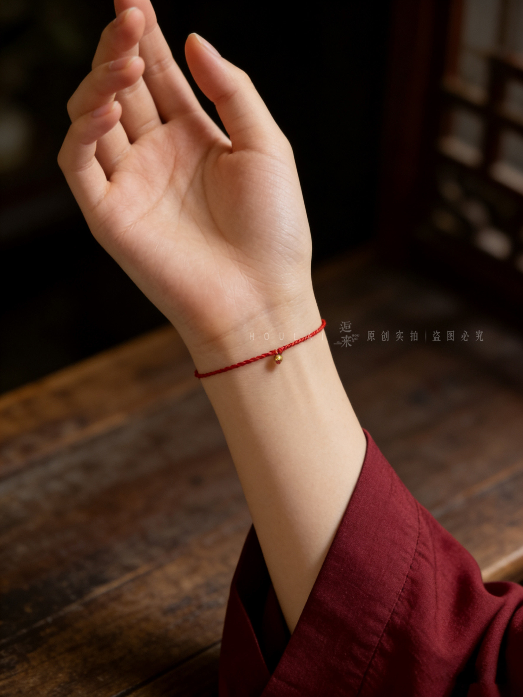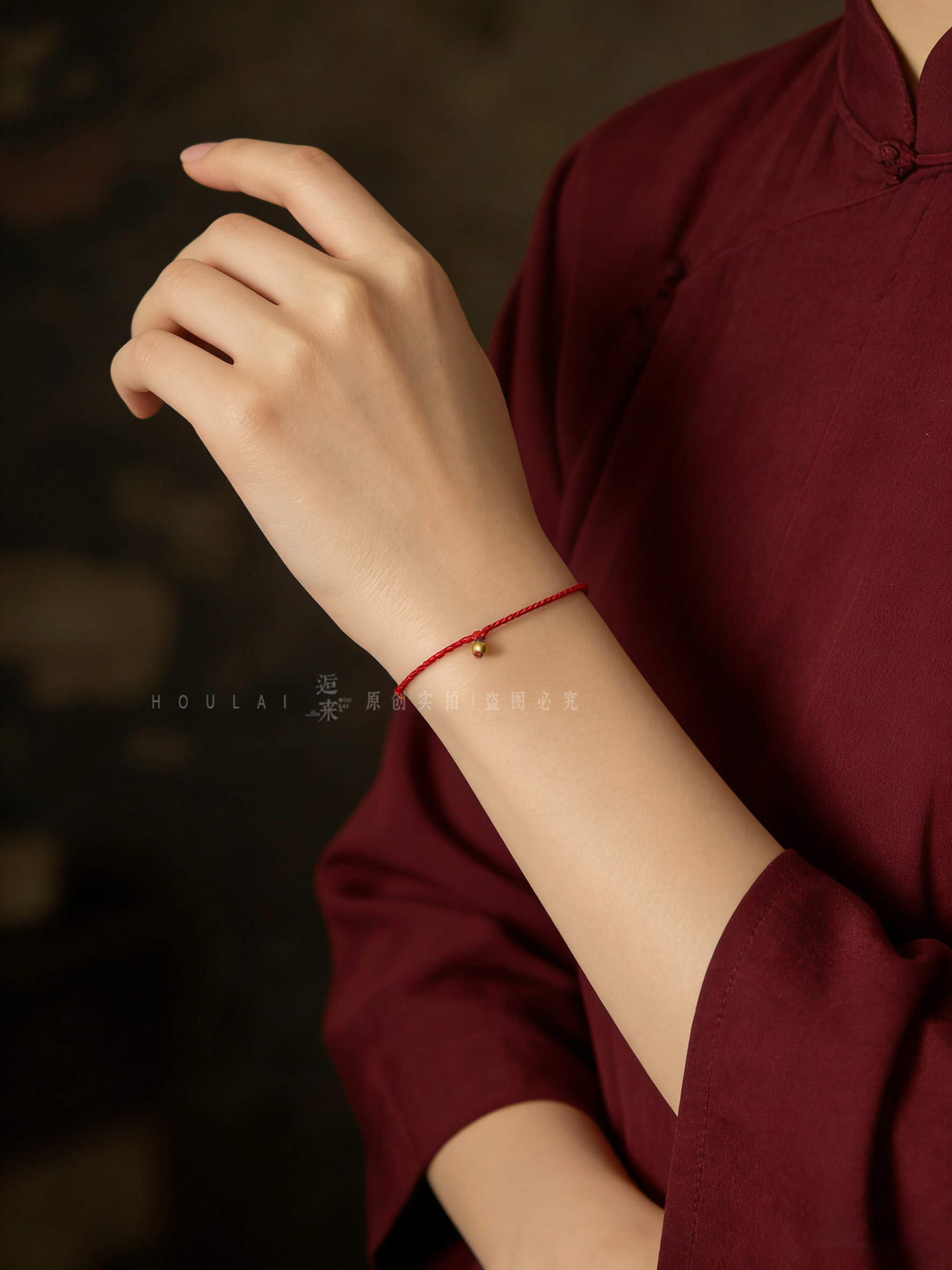 Ultra-Fine Red String Bracelet for Men and Women, 999 Pure Gold Transfer Bead, Pure Gold Zodiac Year Handmade Woven Bracelet