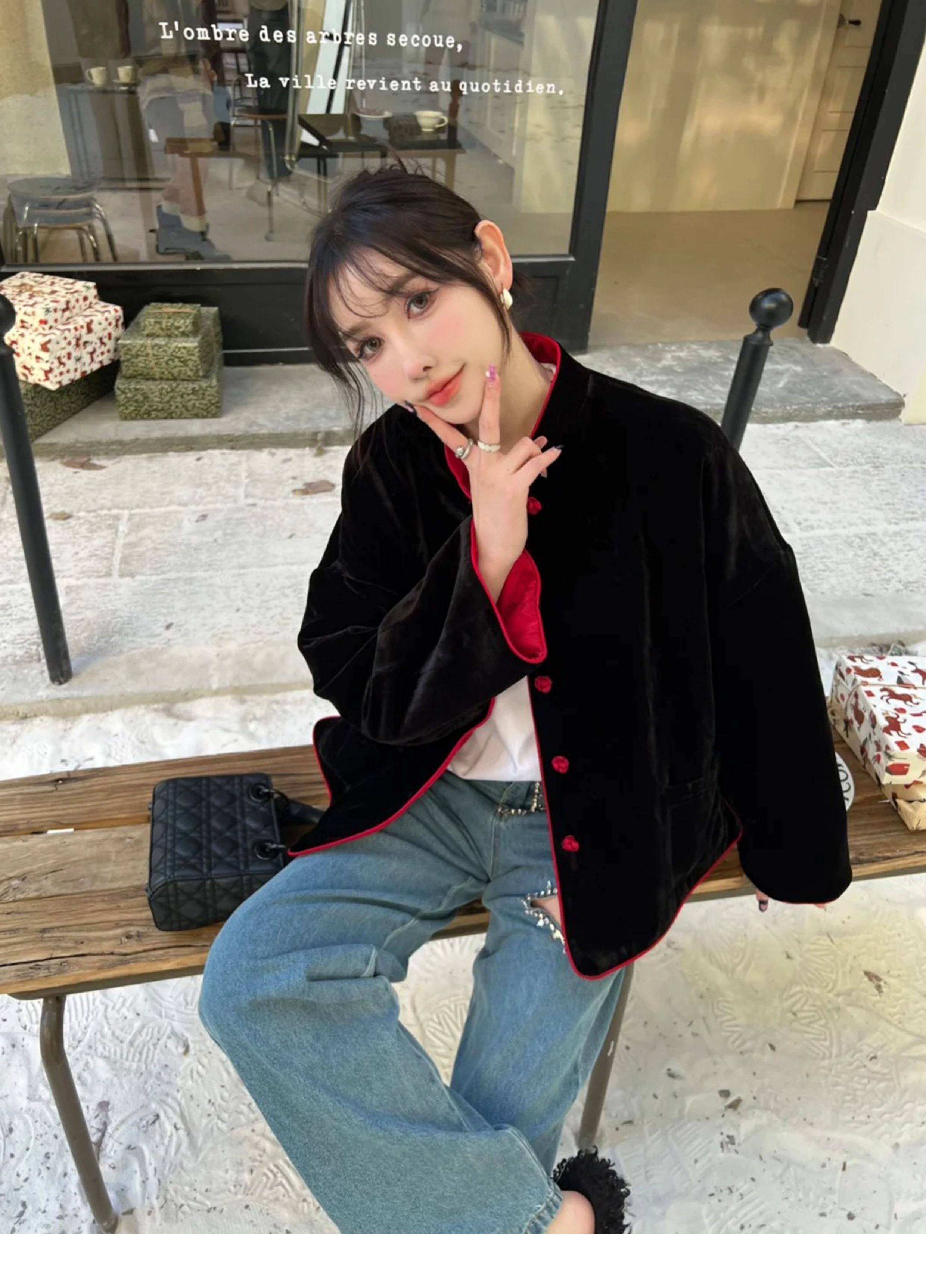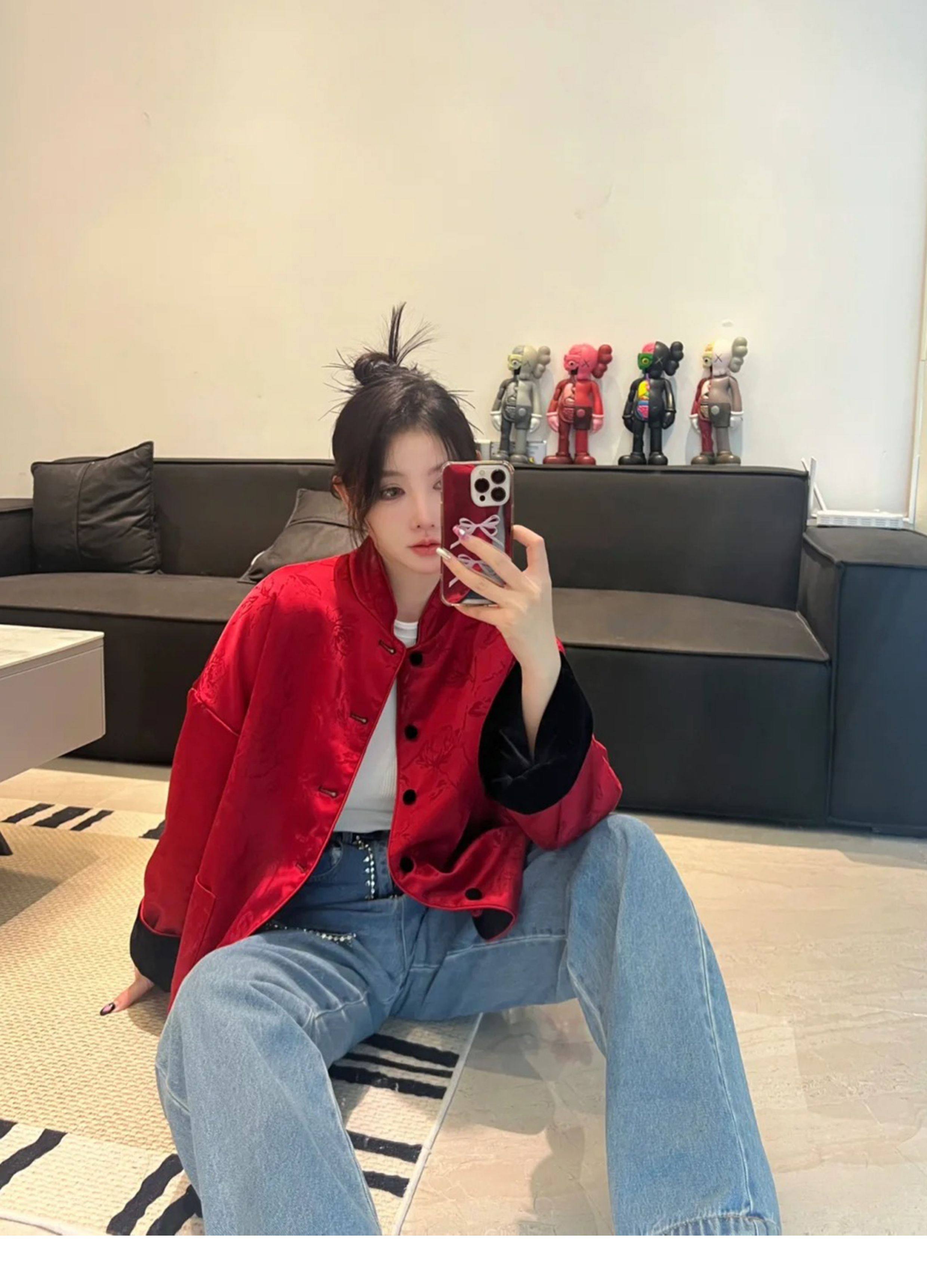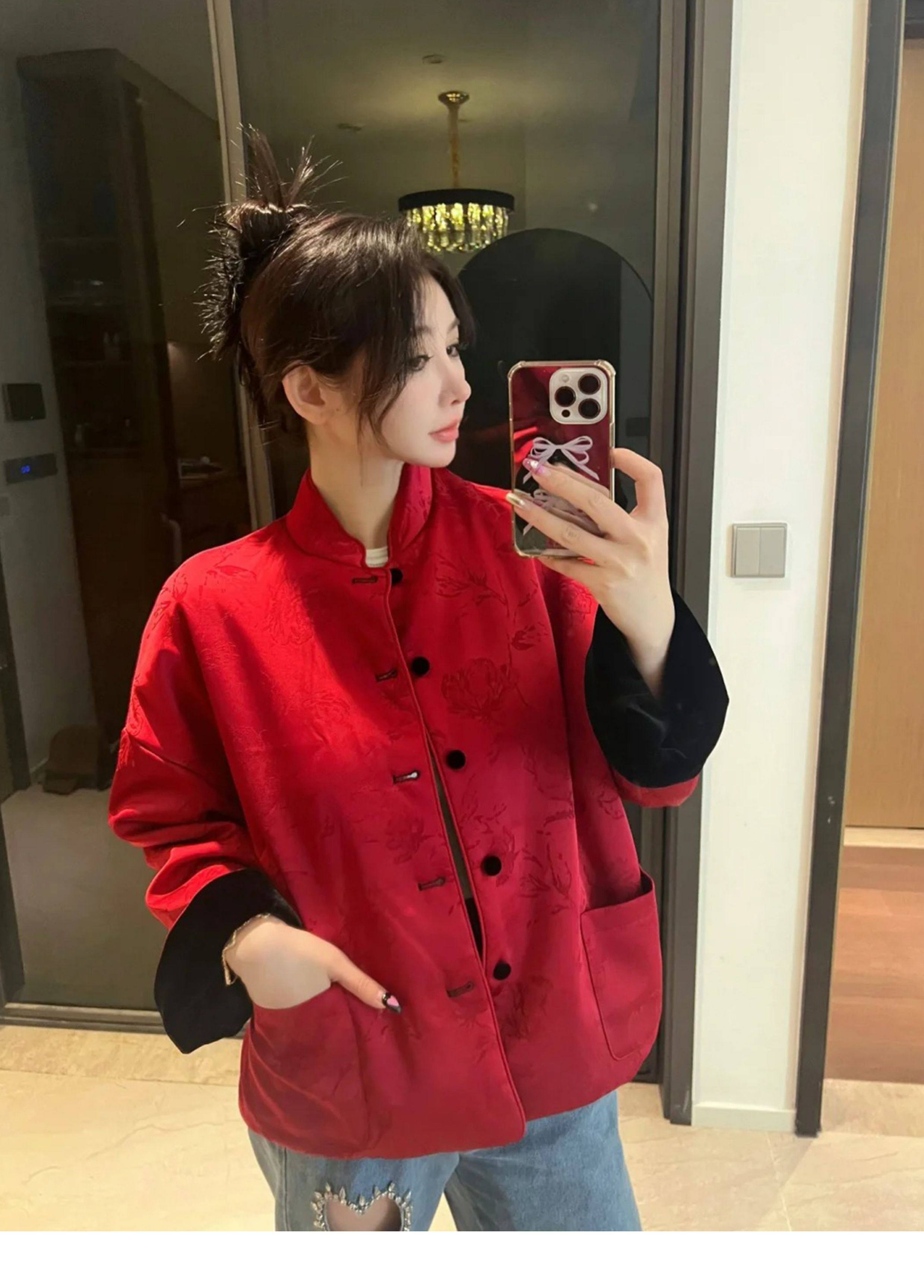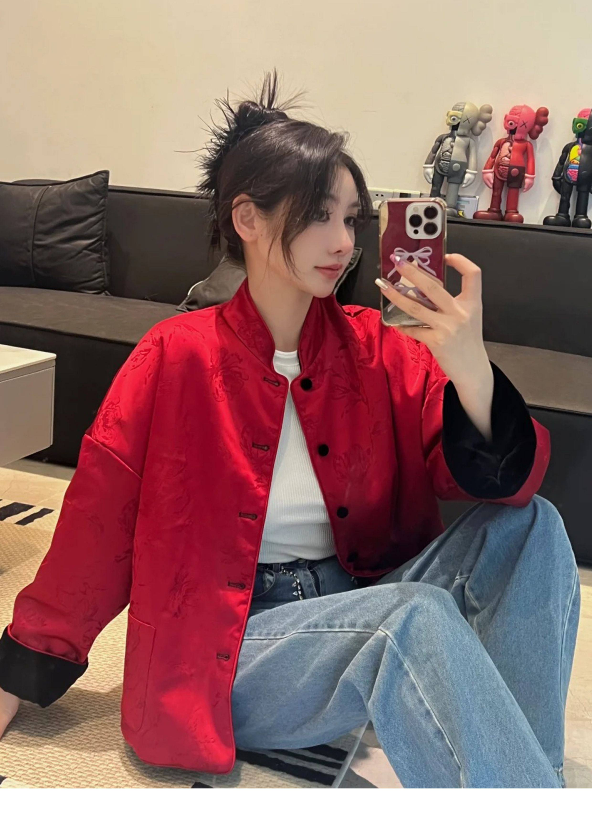 In-Stock New Chinese-Style Reversible Stand-Collar Velvet Jacquard Top Christmas New Year Engagement Red Coat Modernized Tang Suit