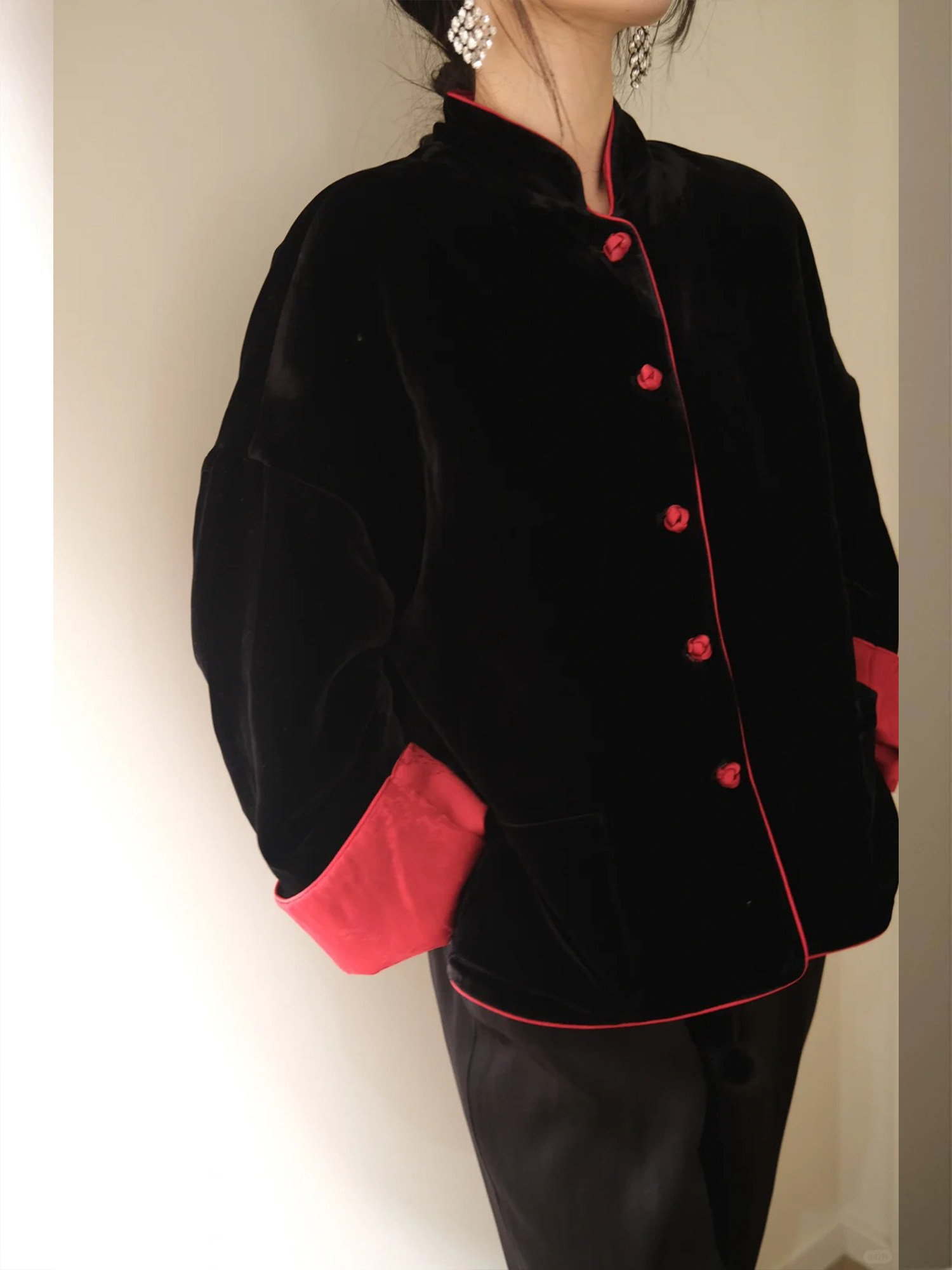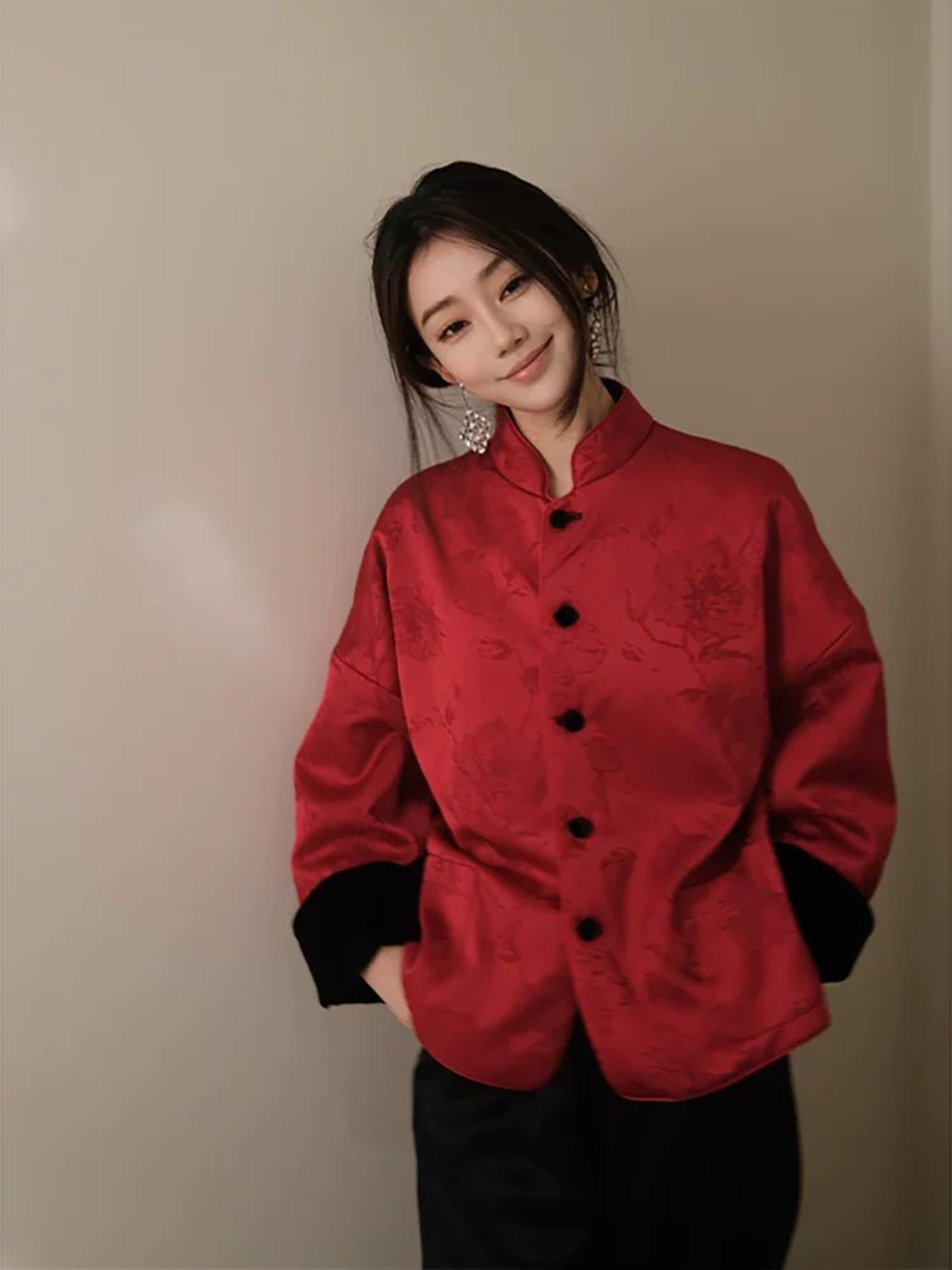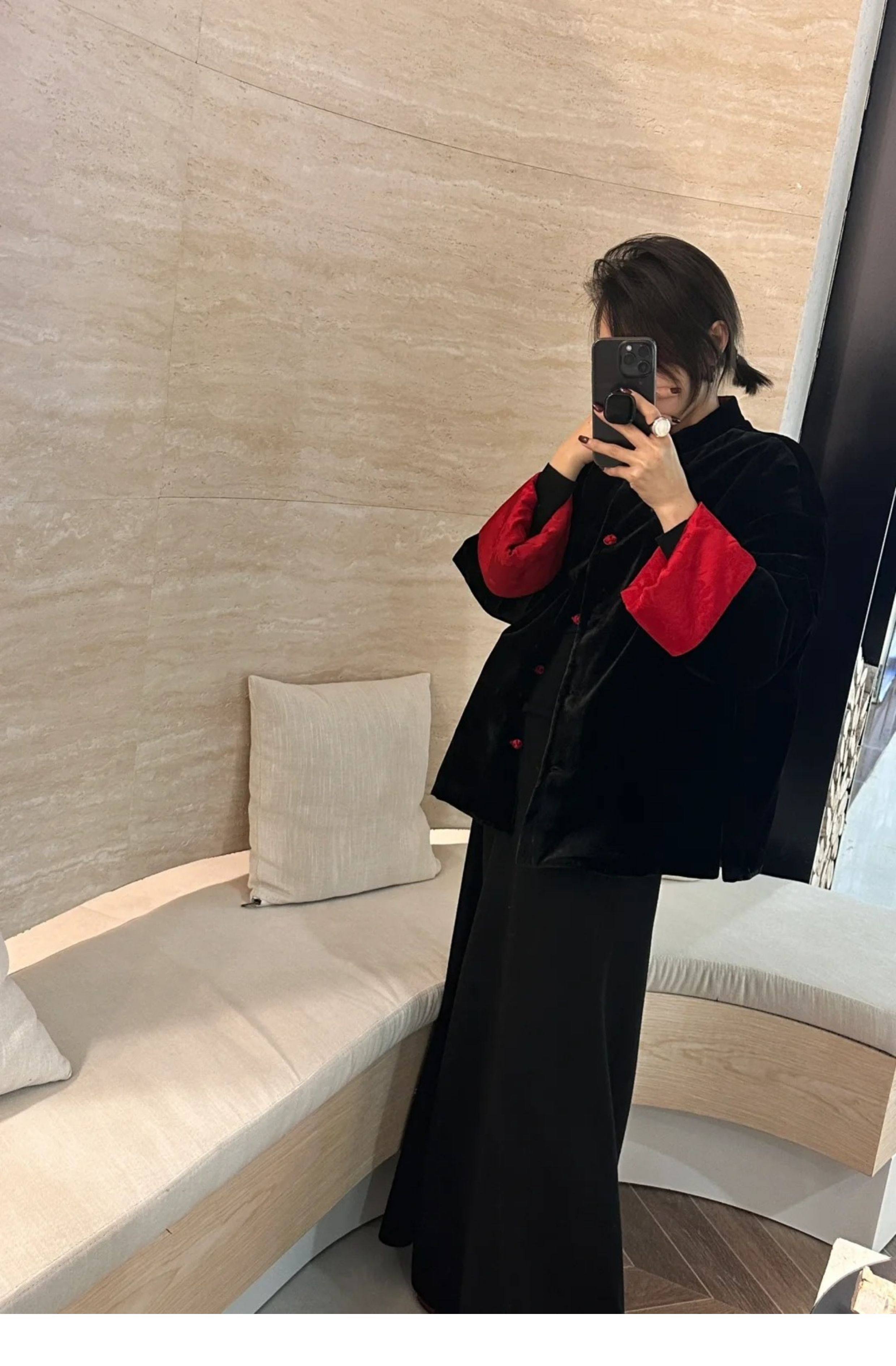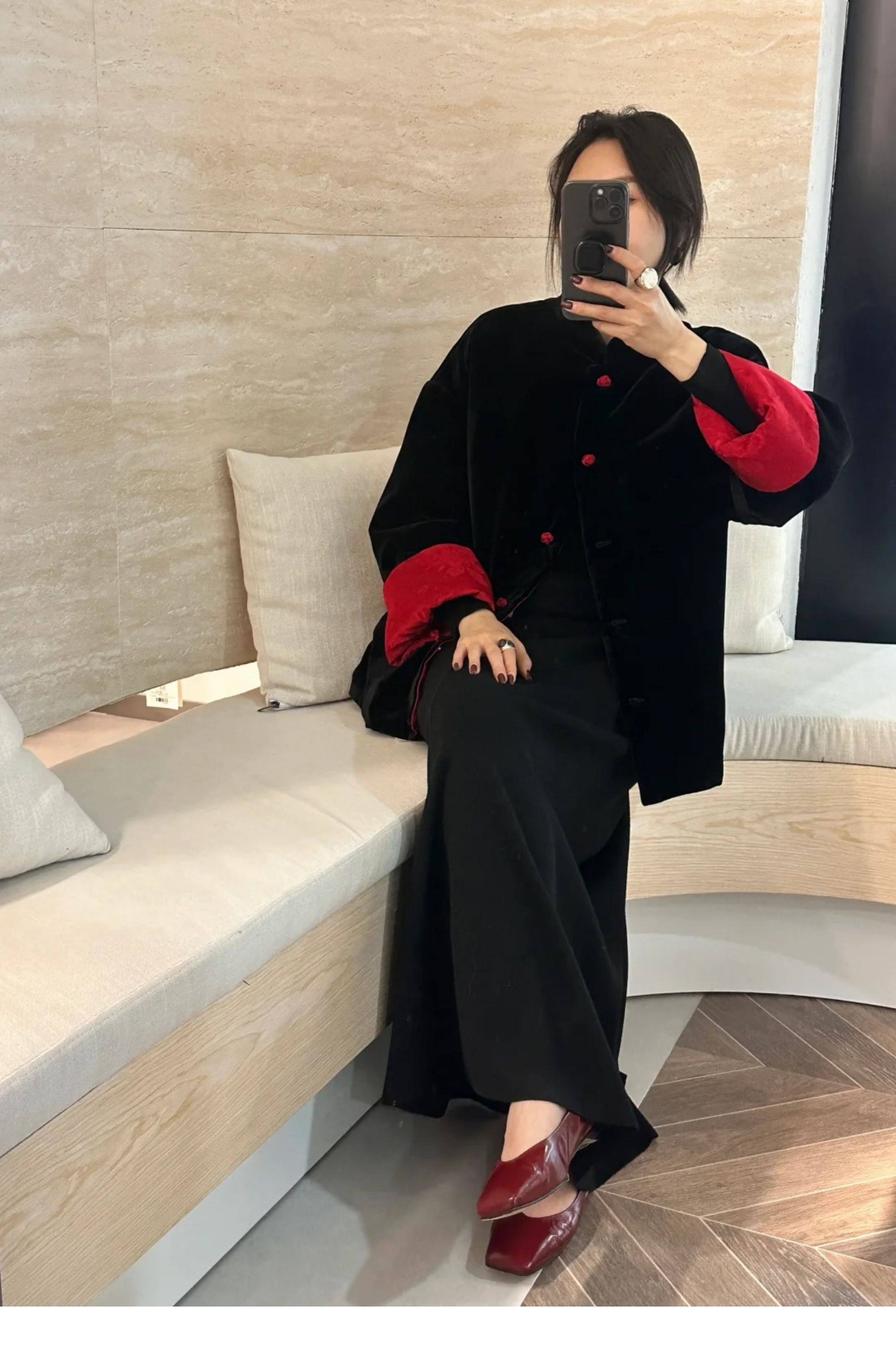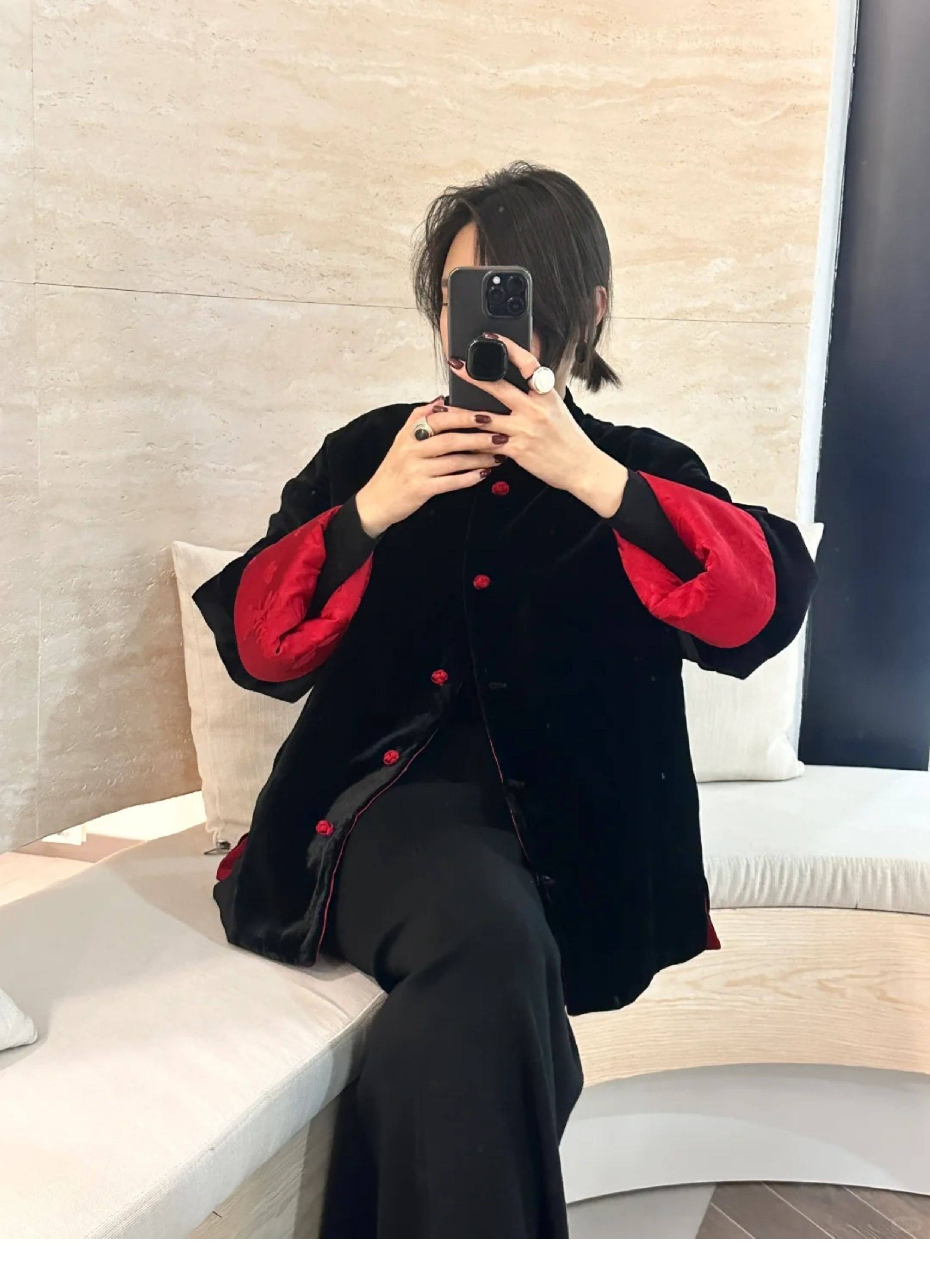 In-Stock New Chinese-Style Reversible Stand-Collar Velvet Jacquard Top Christmas New Year Engagement Red Coat Modernized Tang Suit