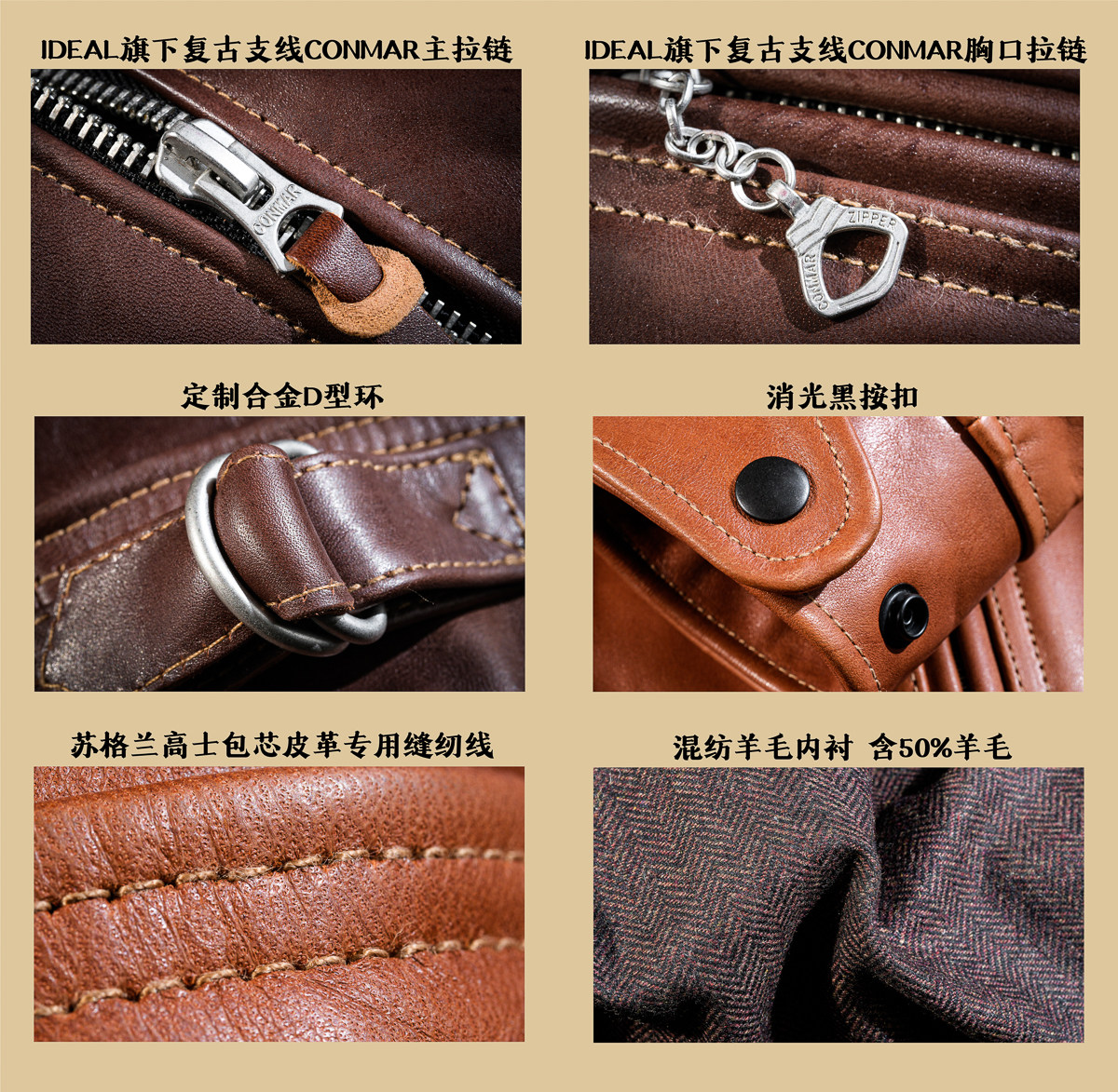 Muhlan High-Grade Horse Leather Havana Color Seal Brown Wool Lining Fw Version Full-Grain Water-Absorbent Uncoated