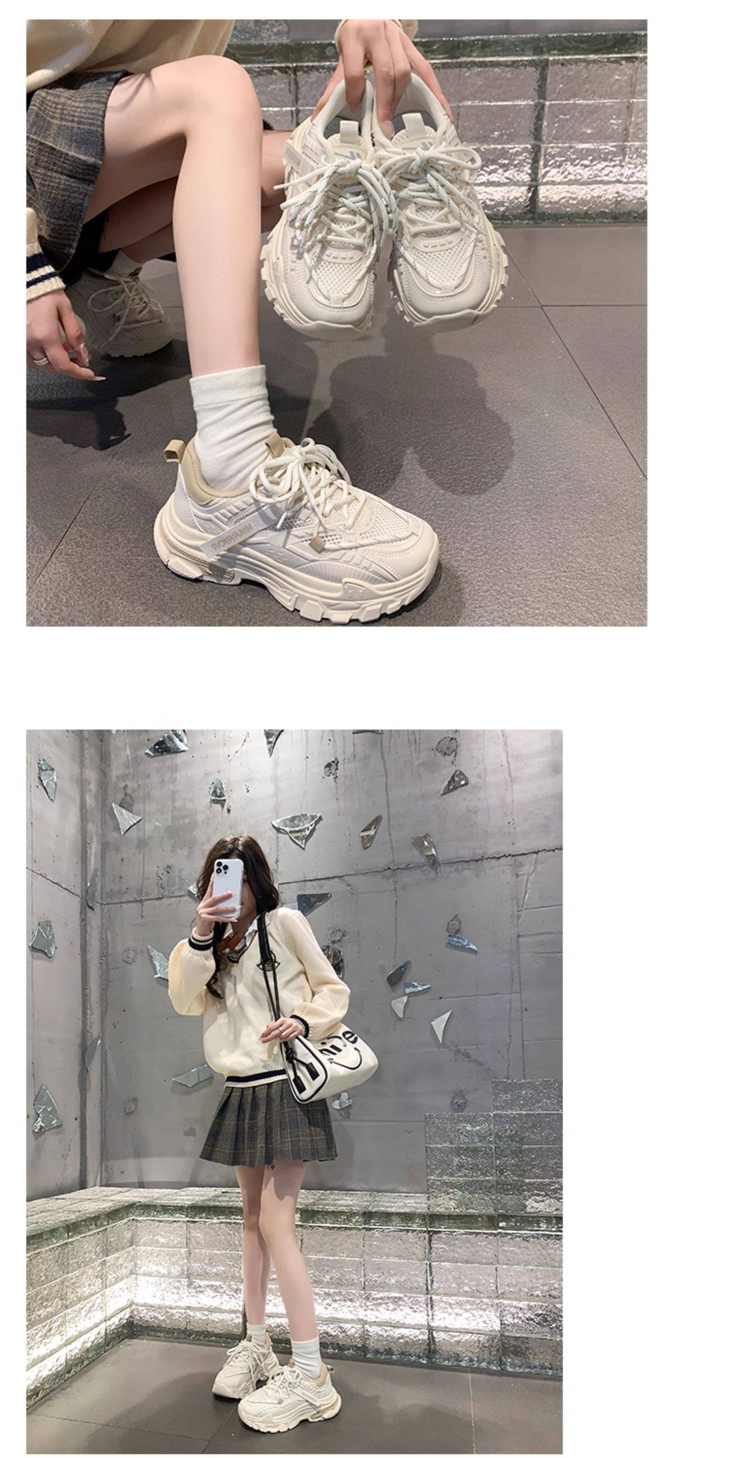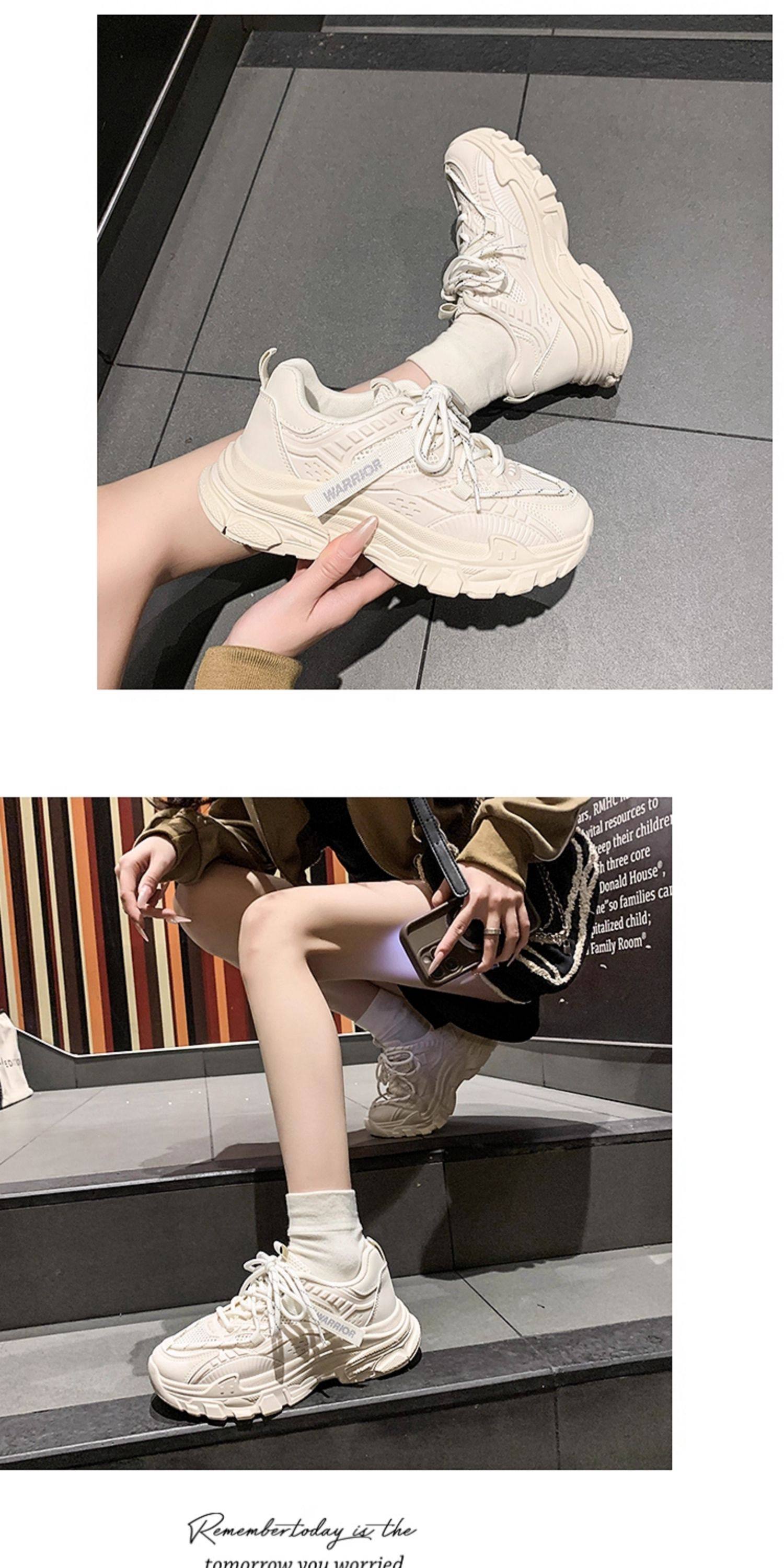 Warrior Women's Shoes 2026 Spring New Sneakers Women's White Shoes Mesh Thick-Soled Shoes Women's Versatile Dad Shoes