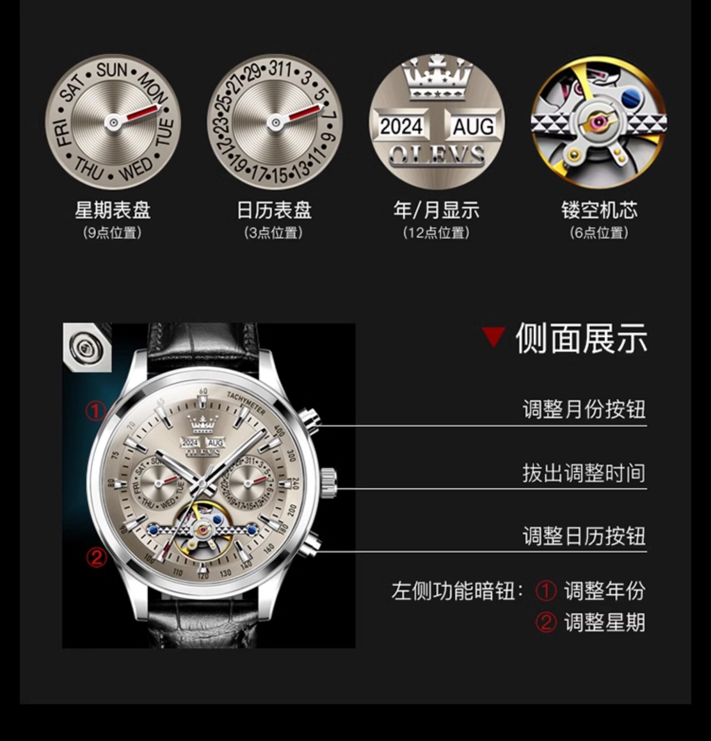 Swiss Oris Men's Watch Mechanical Watch Genuine Skeleton Fully Automatic Multi-Functional Fashion Luminous Brand Watch
