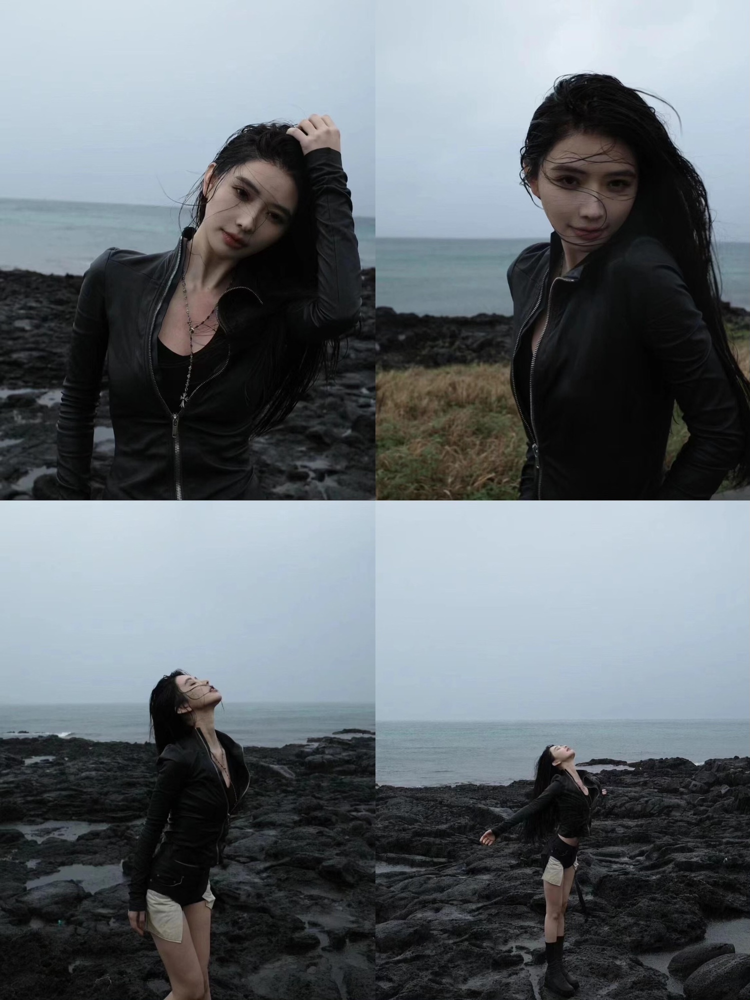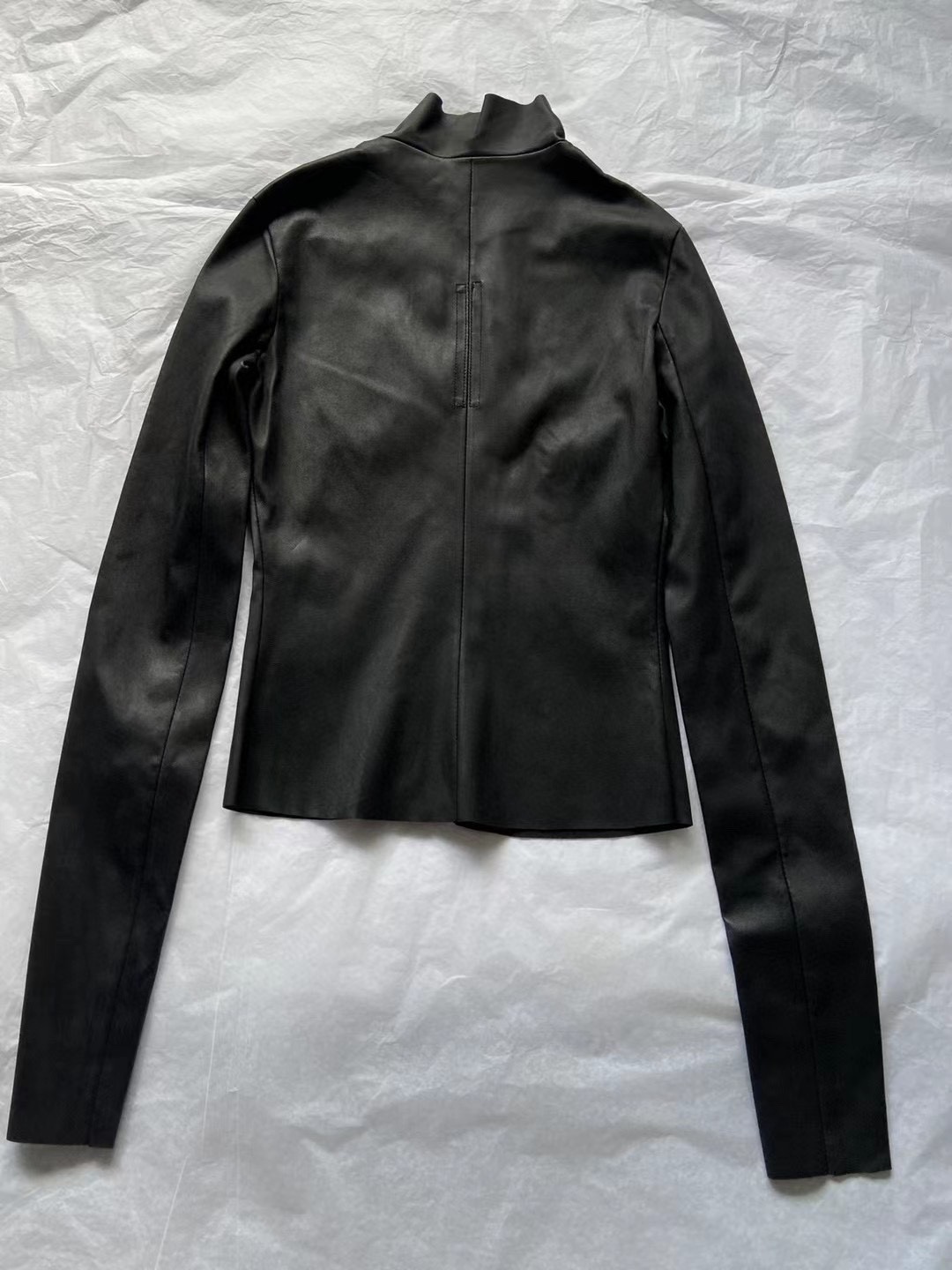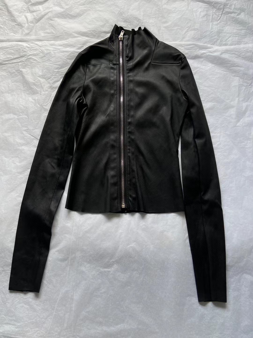 24Fw Dark Ro Style High Collar Diagonal Zipper Pu Leather Stretch Slim Fit Versatile Leather Jacket Motorcycle Jacket for Women