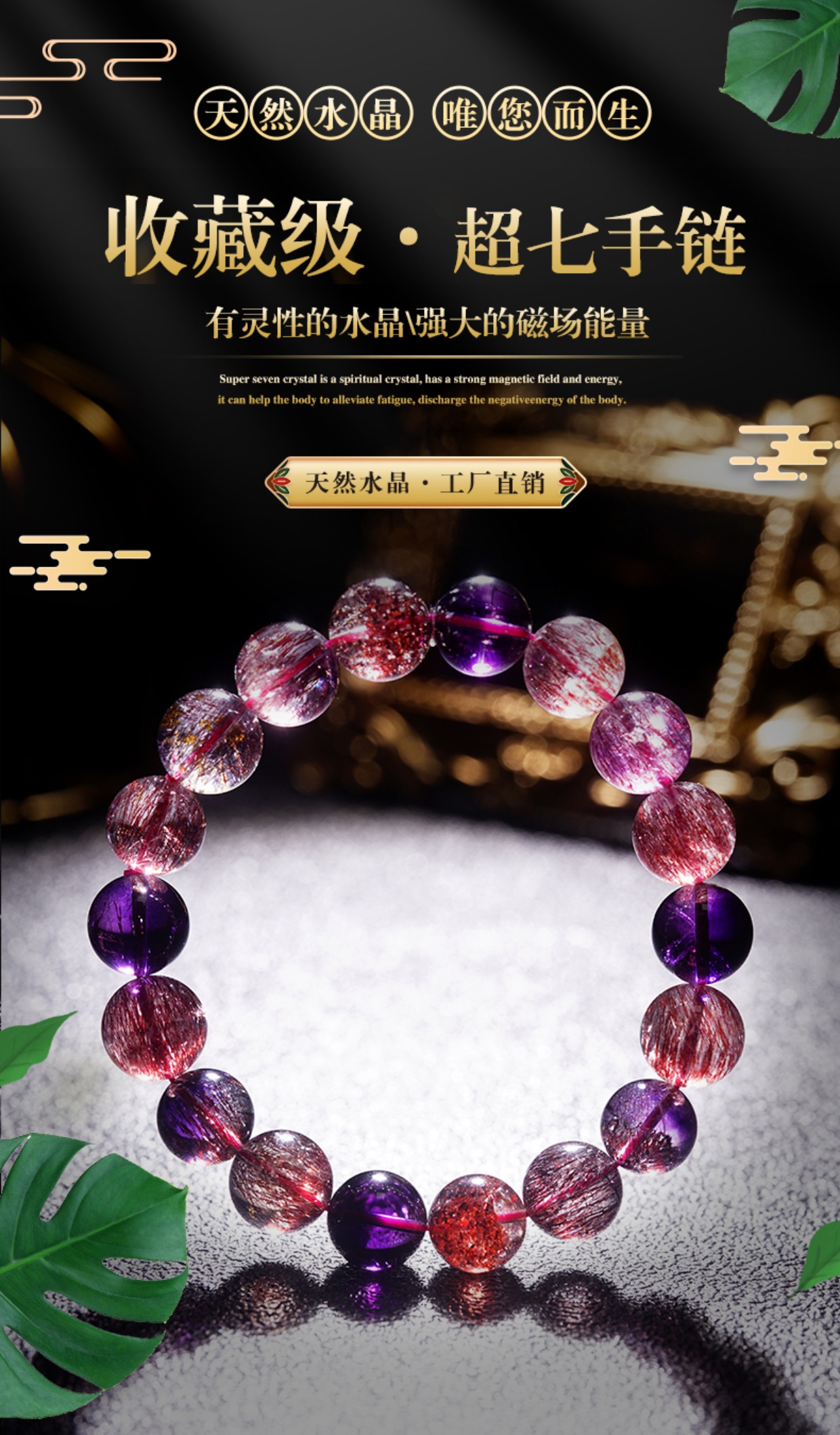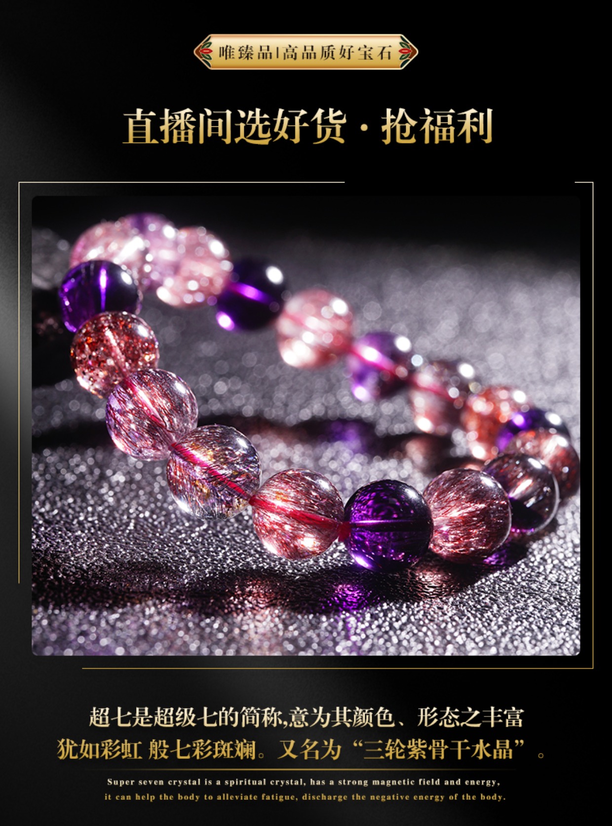 Weizhenpin Collection Grade Colorful Blackcurrant Super Seven Bracelet Purple Red Yellow Super Gold Strawberry Fireworks Super Backbone Crystal Bracelet