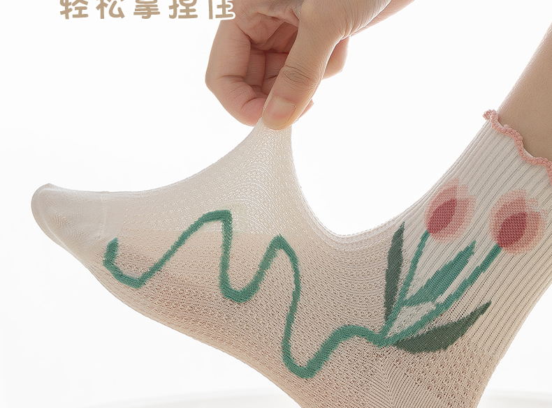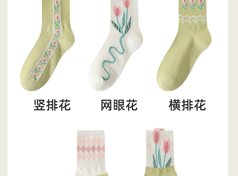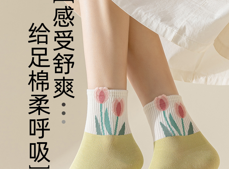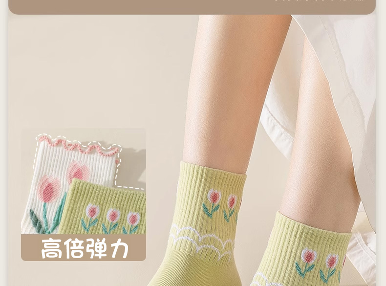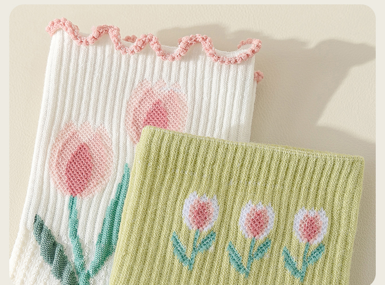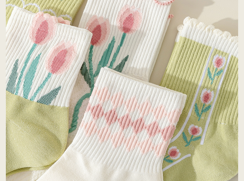 Women's Floral Socks, Spring and Autumn Cotton Socks, Short Socks for Spring and Summer, Thin and Breathable, Short Tube, Japanese Style, Mid-Tube, Trendy Online