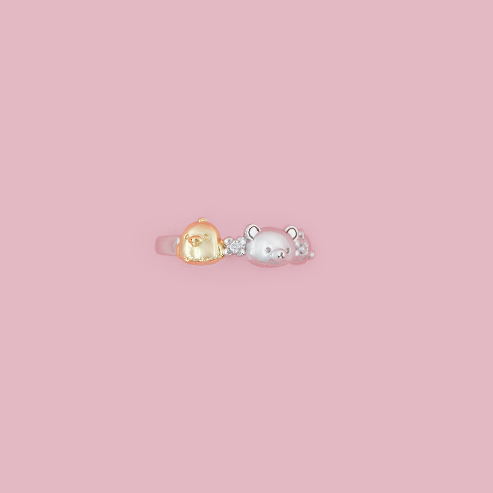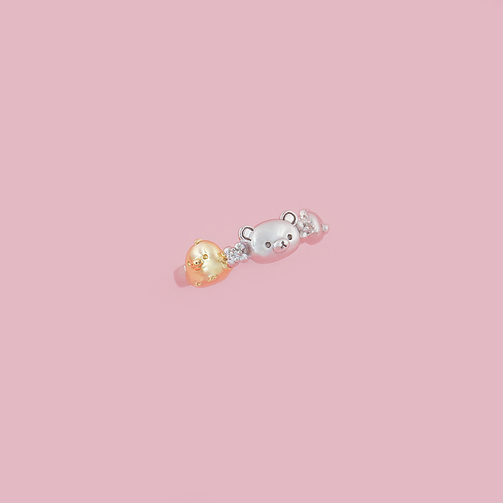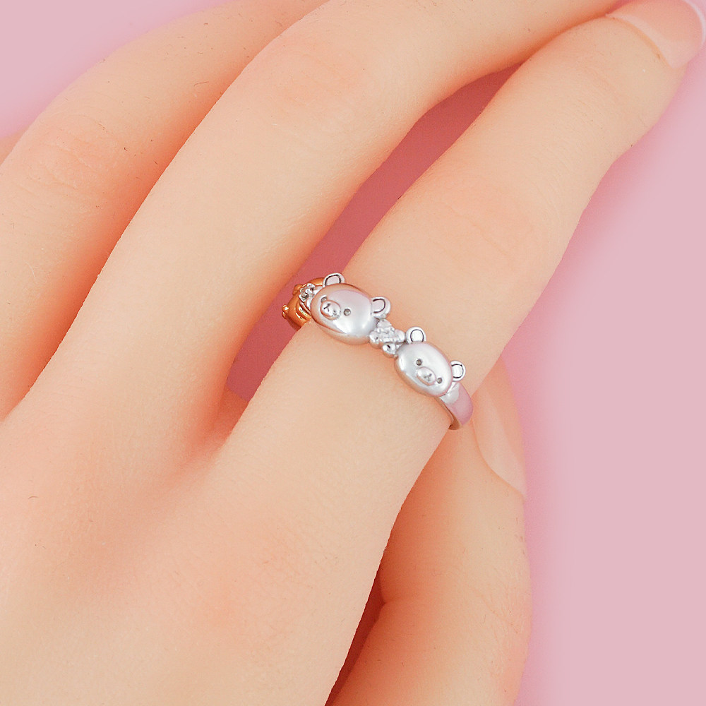 Theone Little Bear and Little Chicken Cute Sterling Silver Ring Adorable Girlfriend Confession Birthday Gift