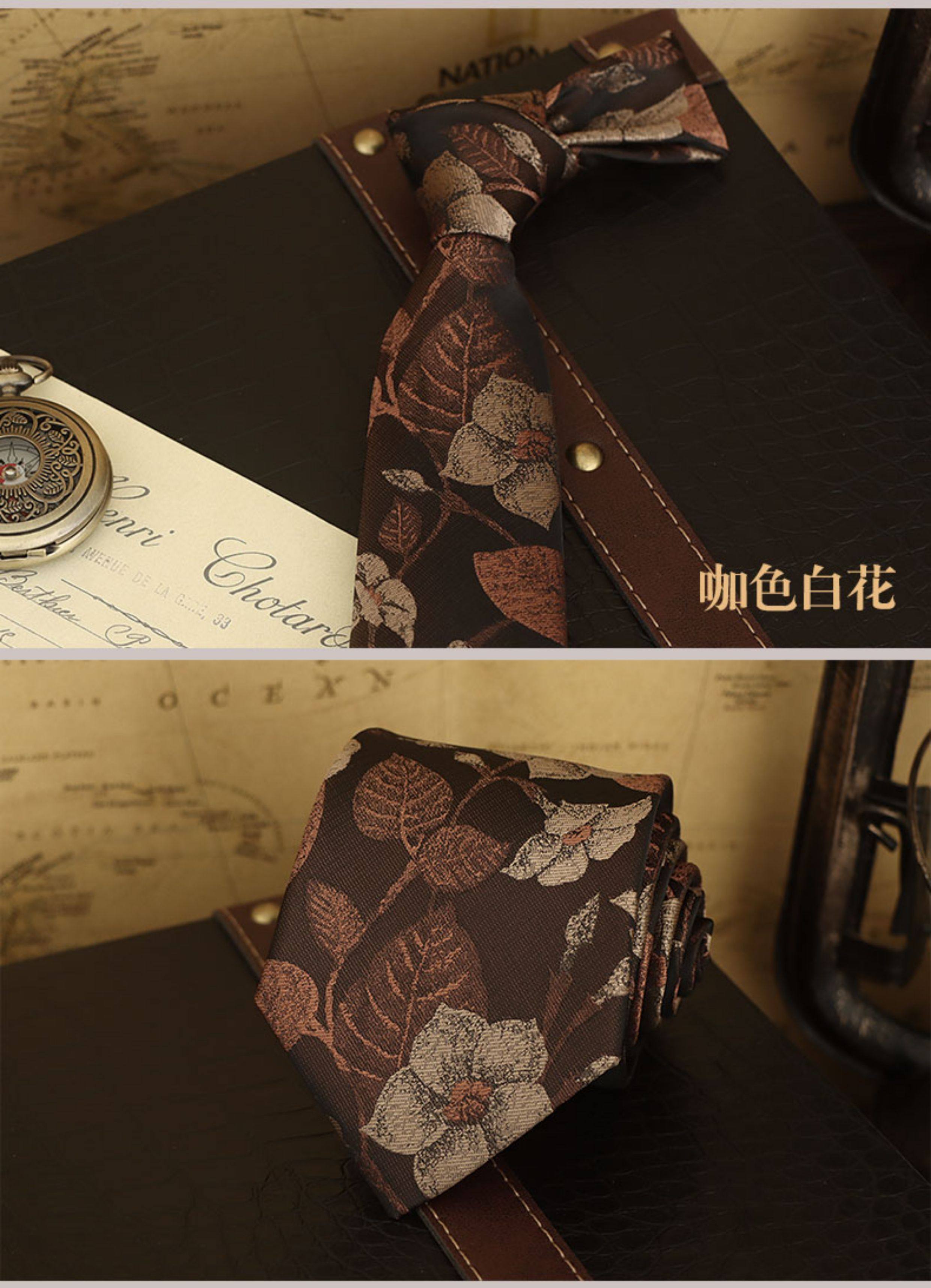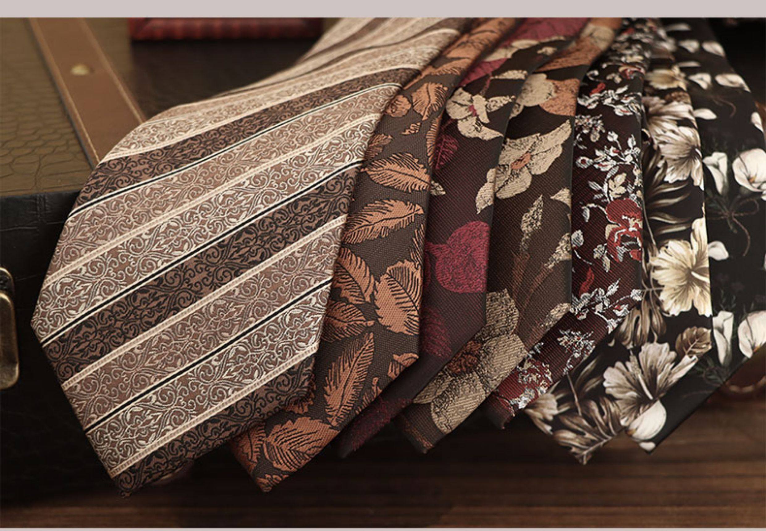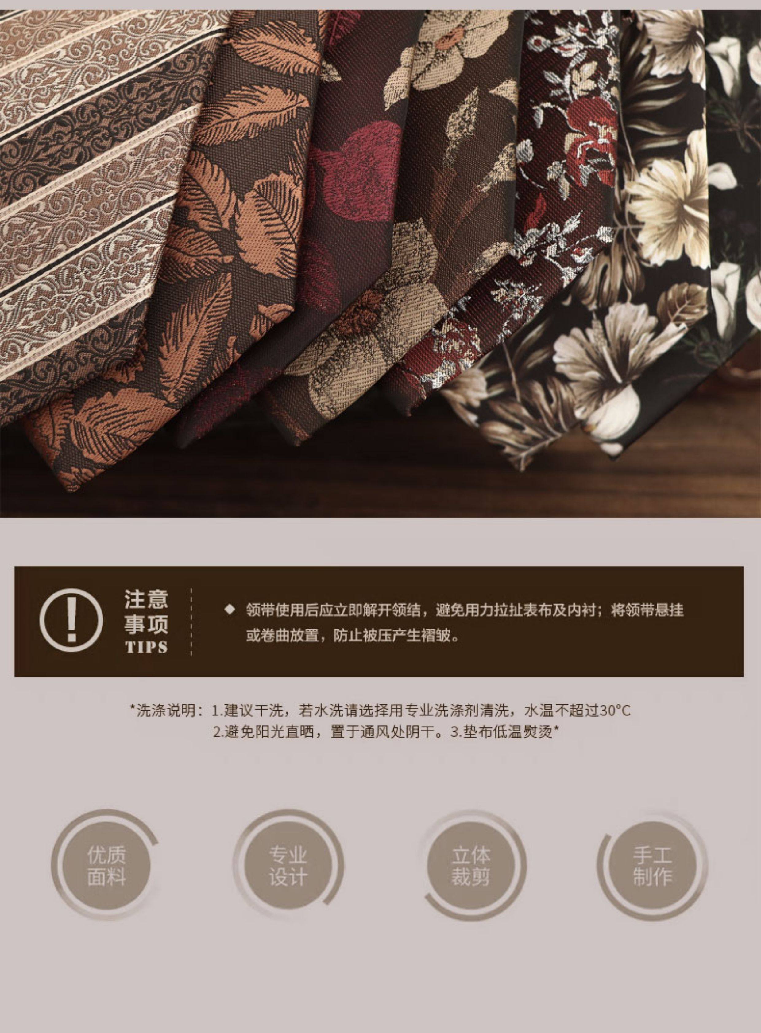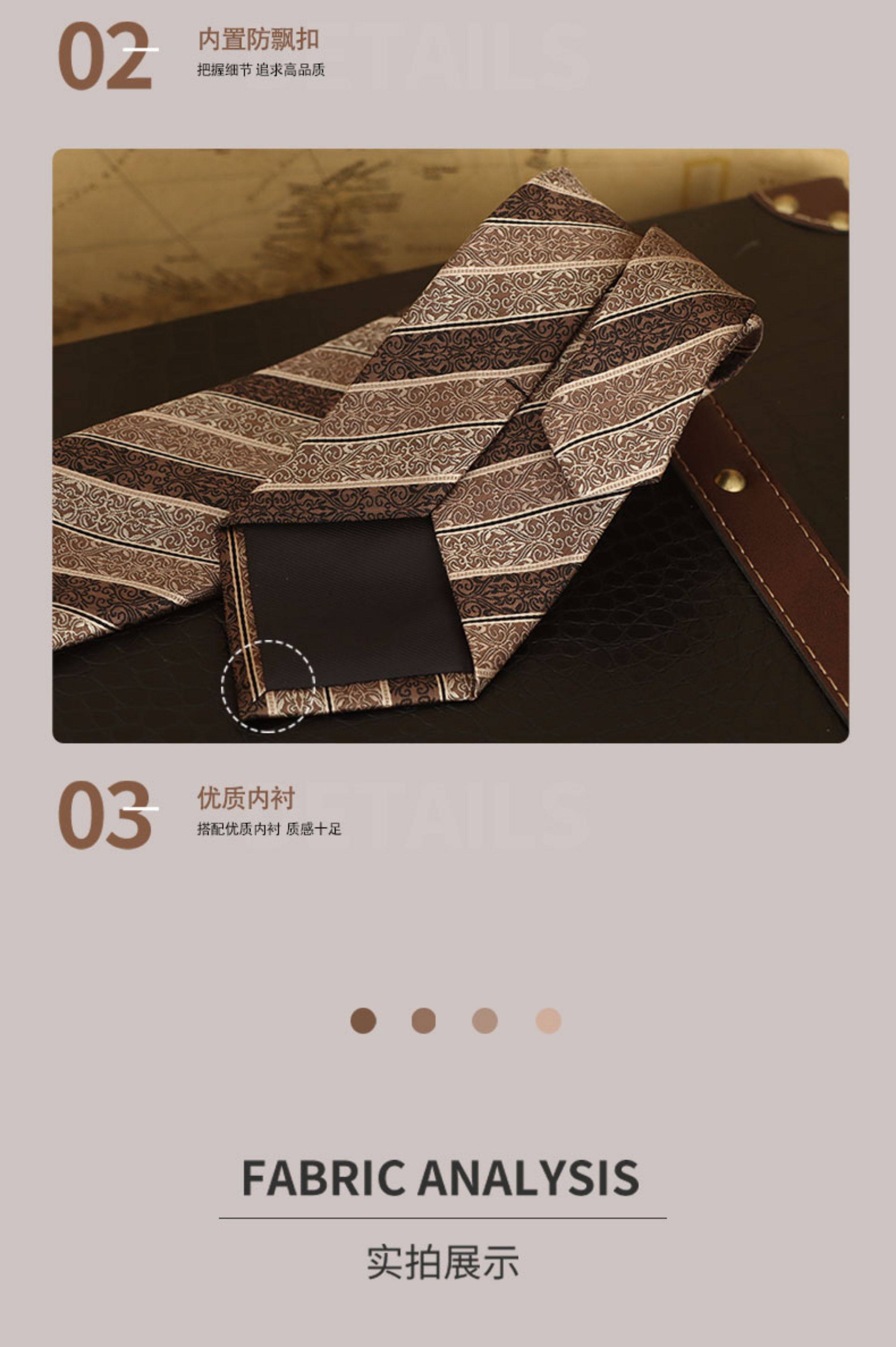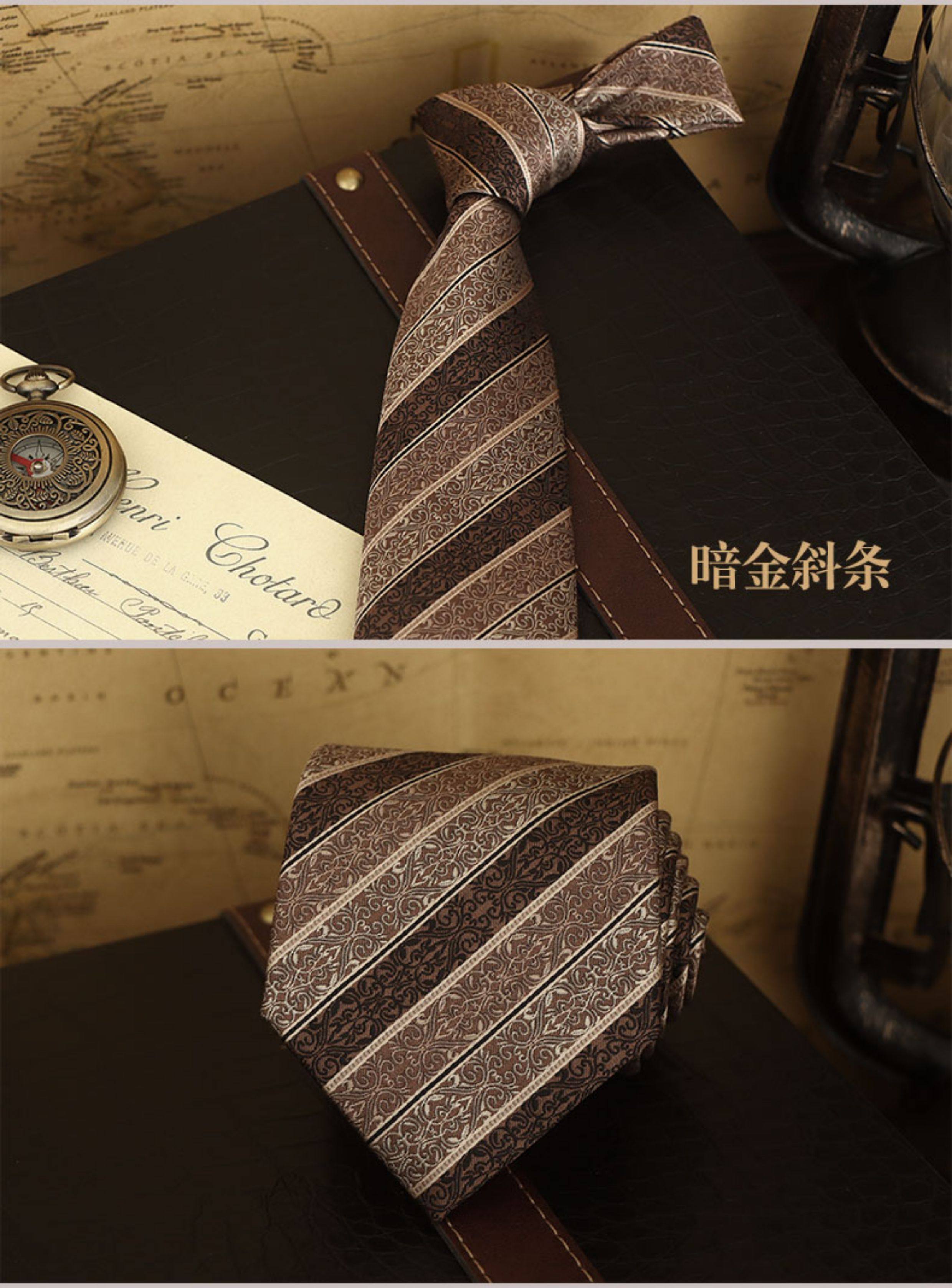 High-End Hand-Tied Twill Tie for Men, Vintage British Style, 8cm Formal Casual Dark Gold Pattern, Wedding Groom