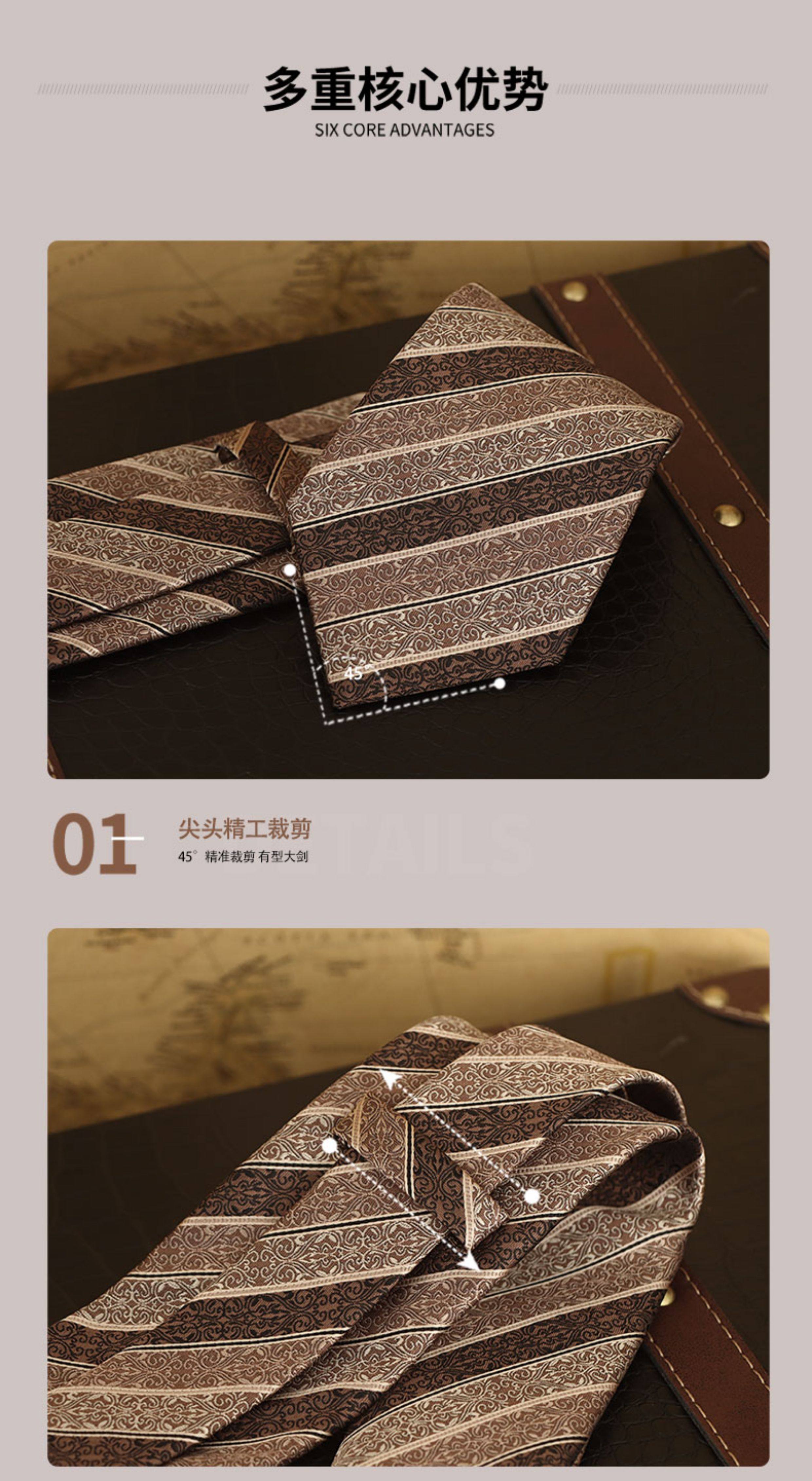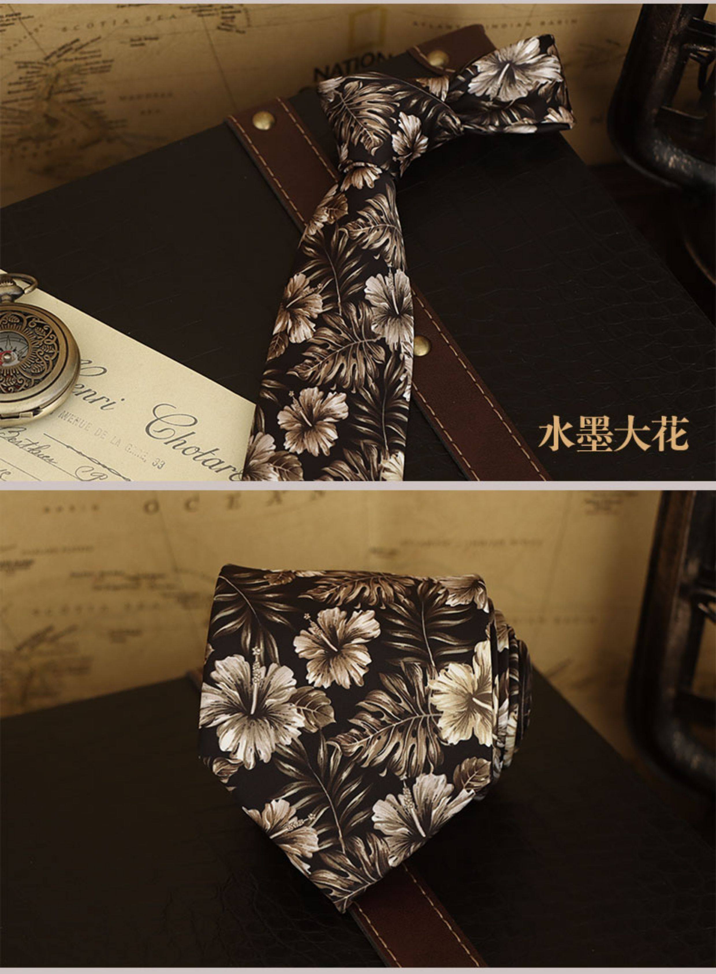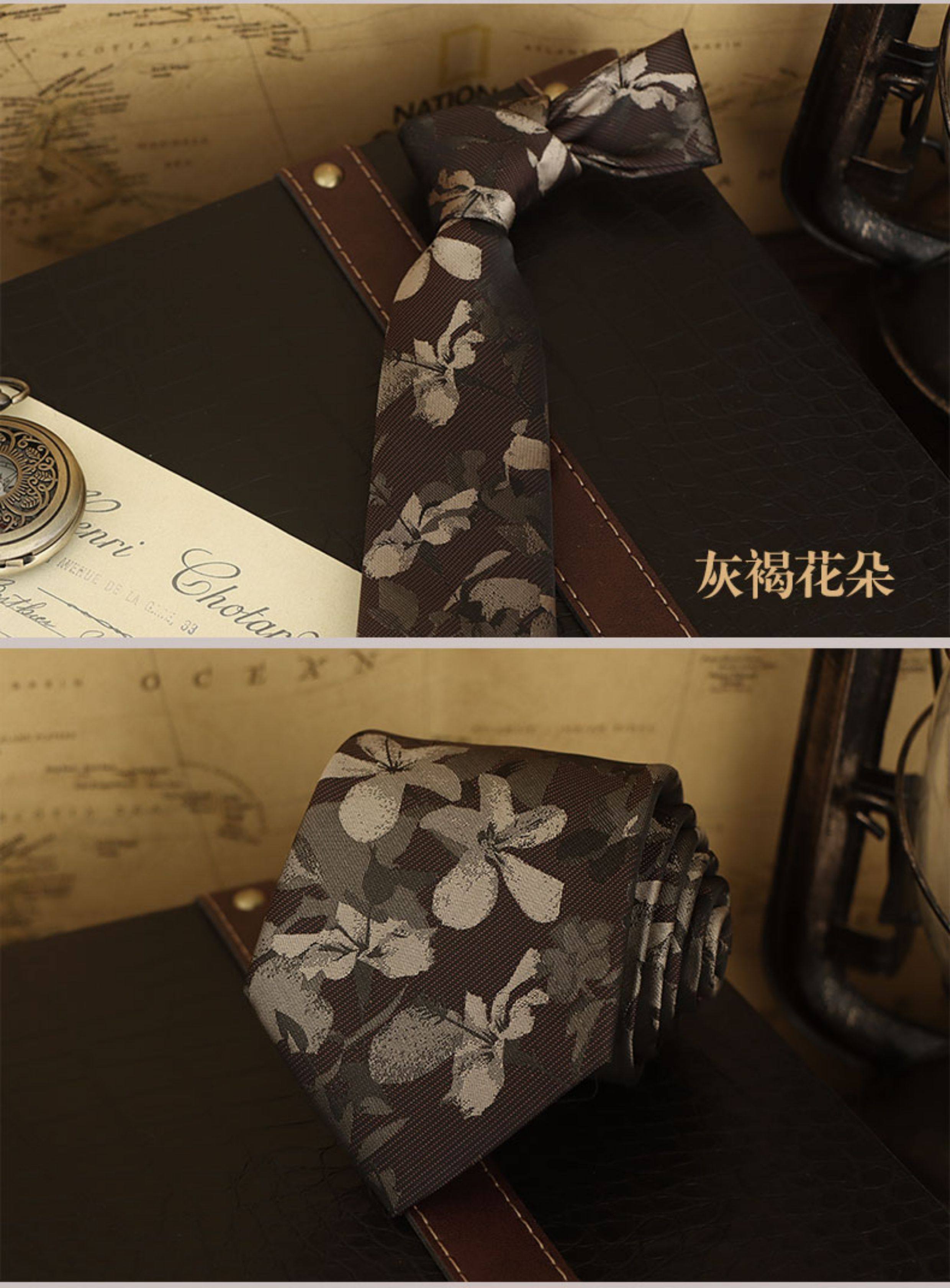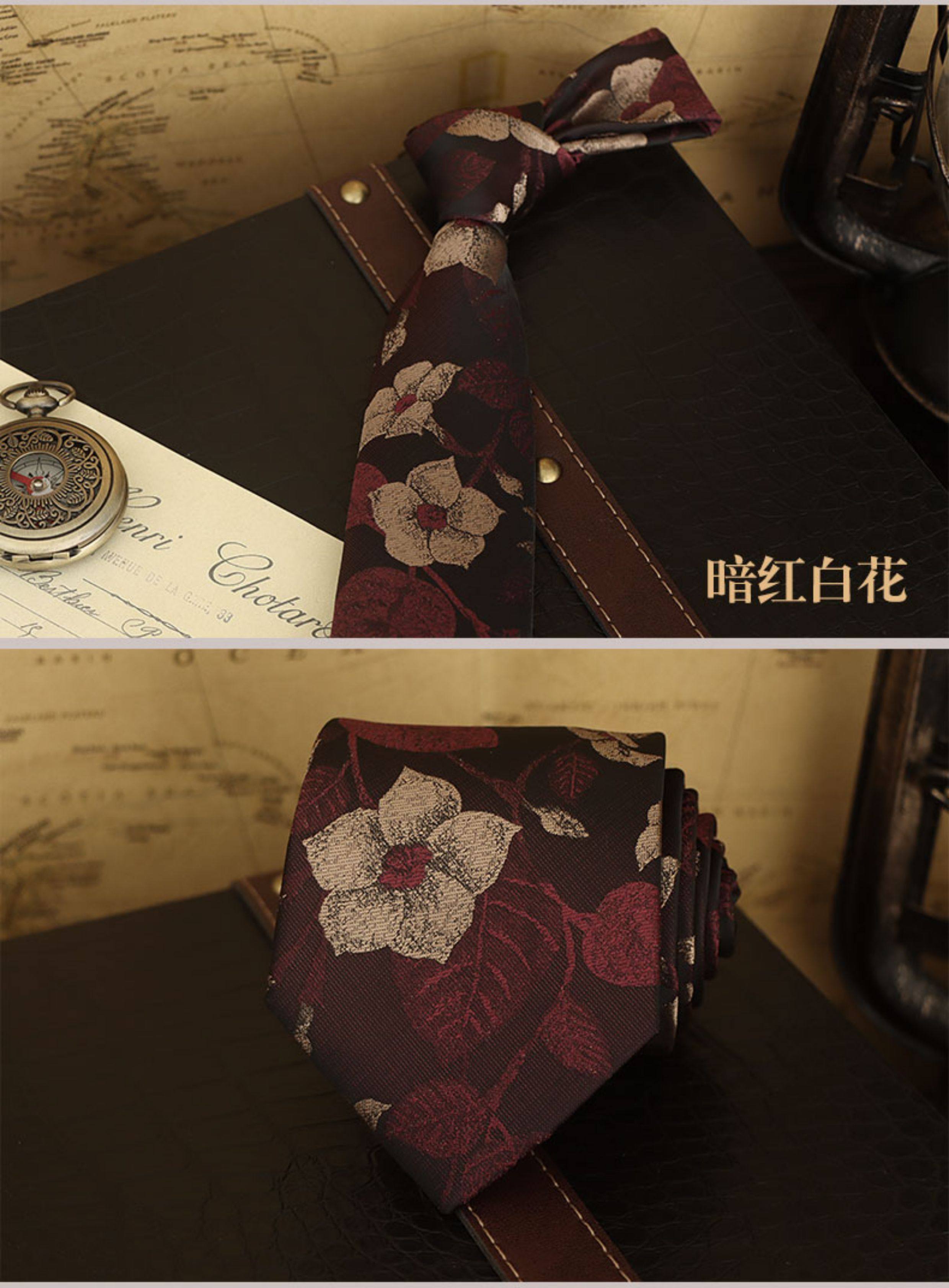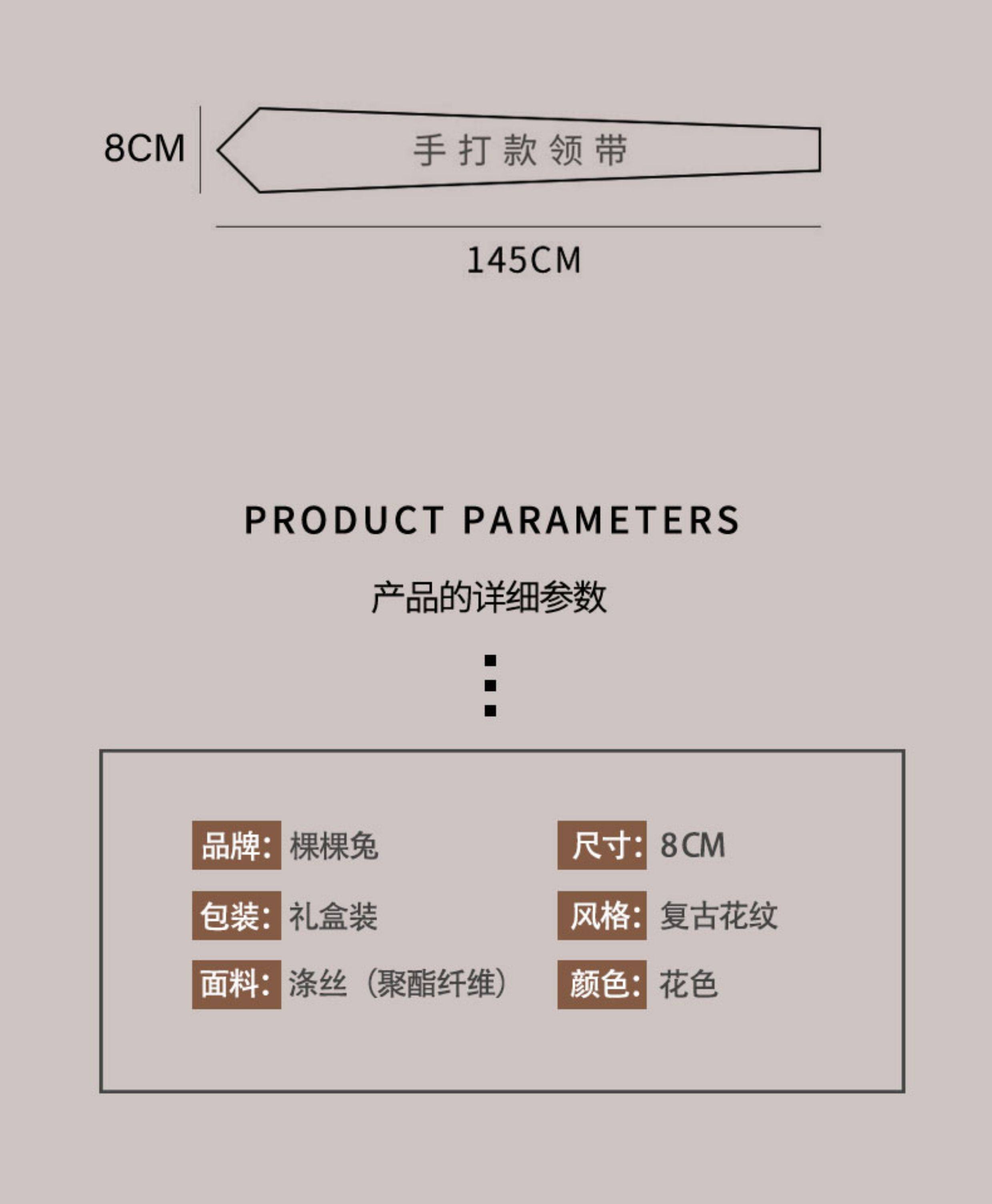High-End Hand-Tied Twill Tie for Men, Vintage British Style, 8cm Formal Casual Dark Gold Pattern, Wedding Groom