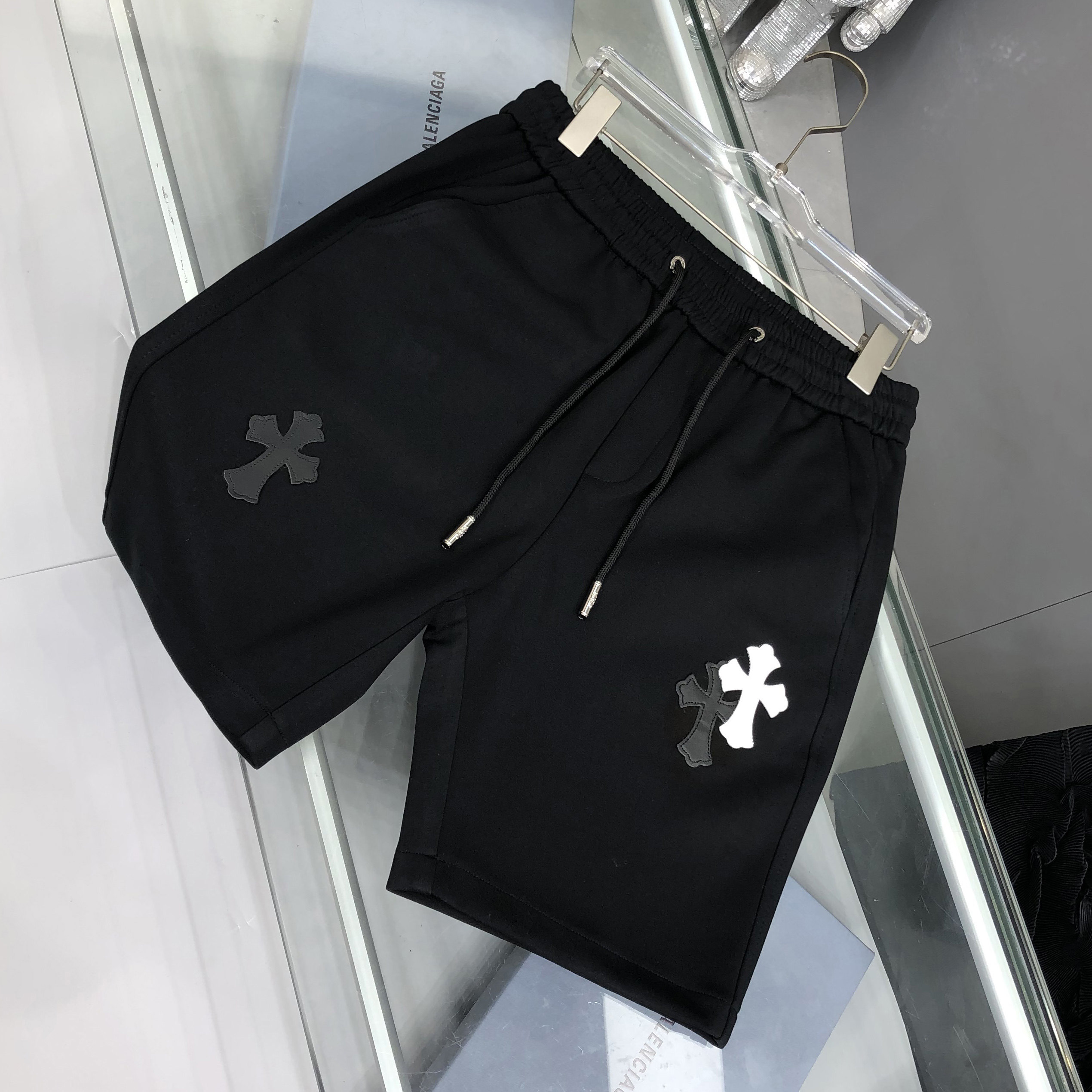 2025 Summer New High-End Cross-Stitch Embroidered Sports Casual Shorts for Men, Loose European Style Beach Mid-Length Shorts