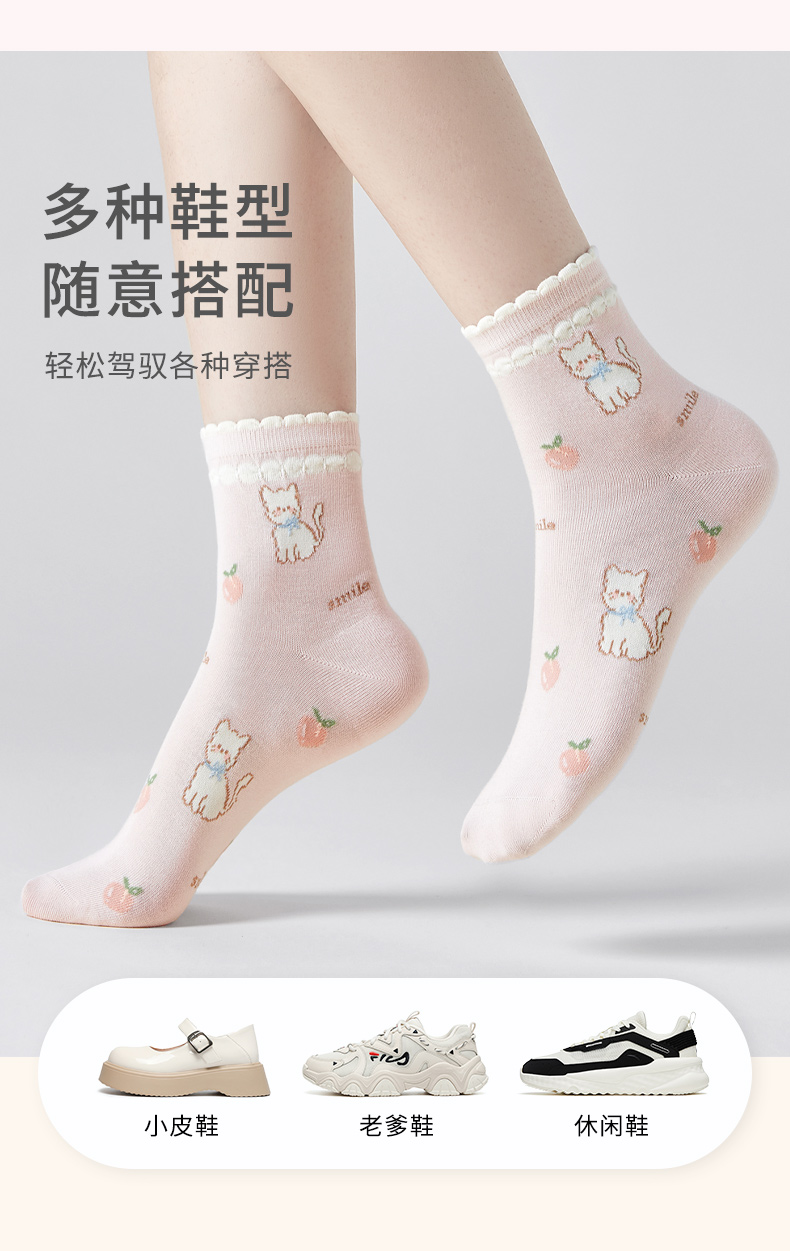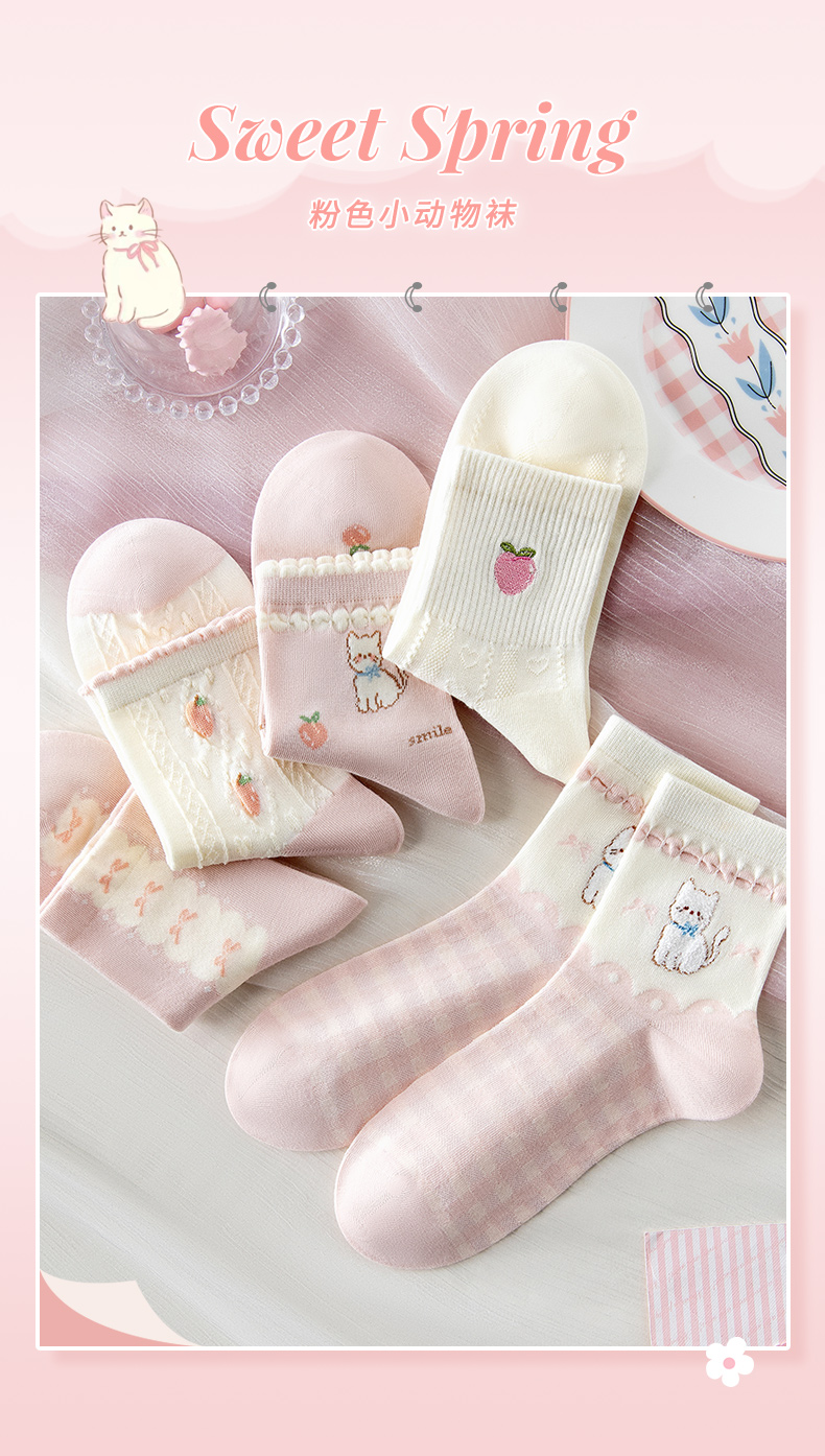 Autumn and Winter Women's Socks 2025 New Pink Cute Girl Cartoon Cotton Socks Paired with Small Leather Shoes Mid-Calf Socks Women's Socks