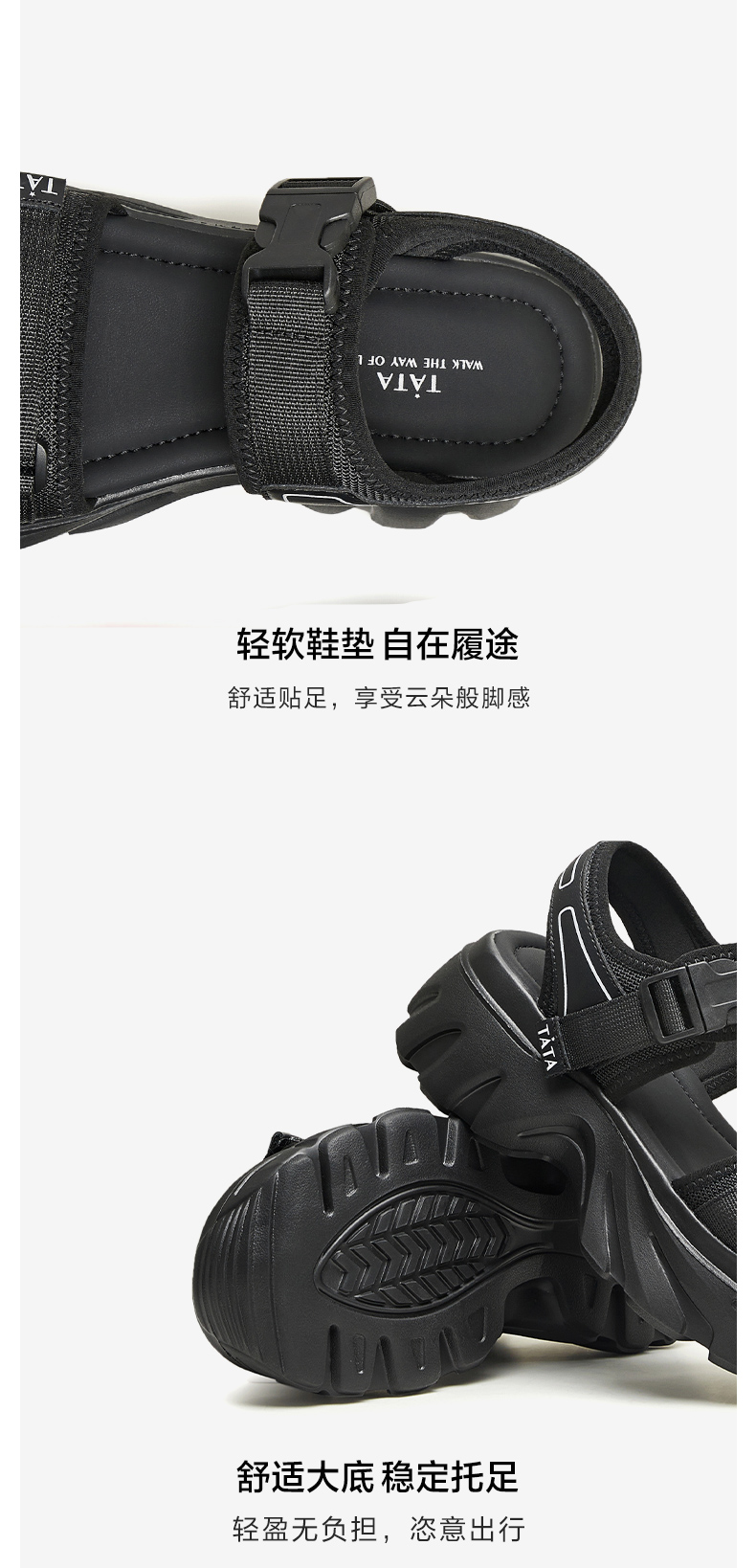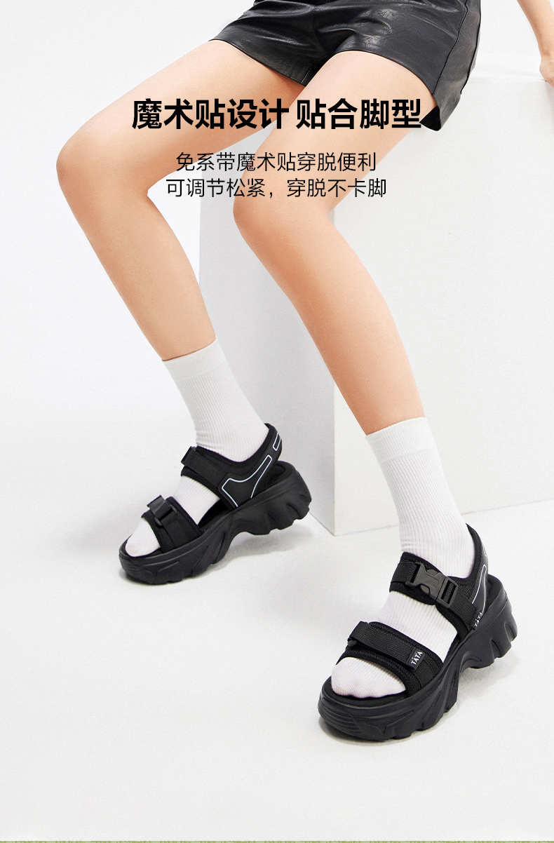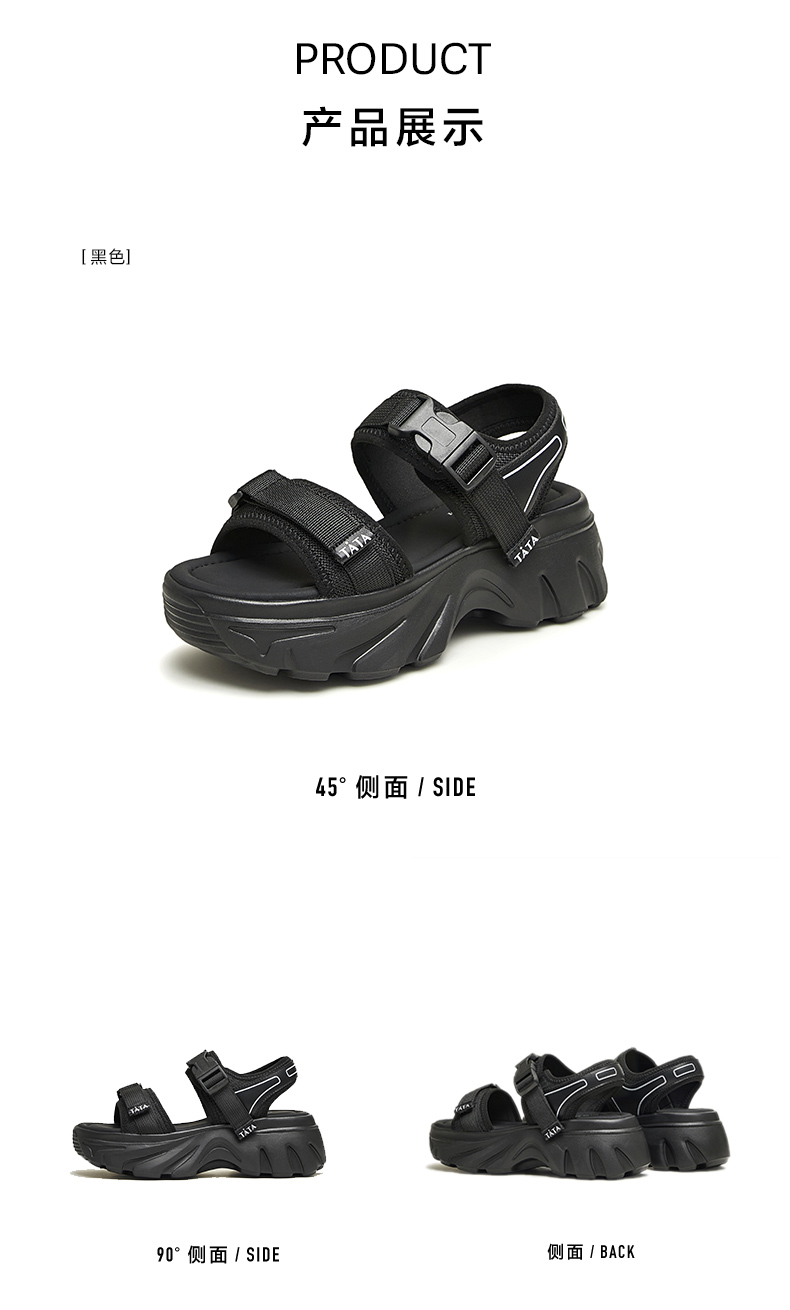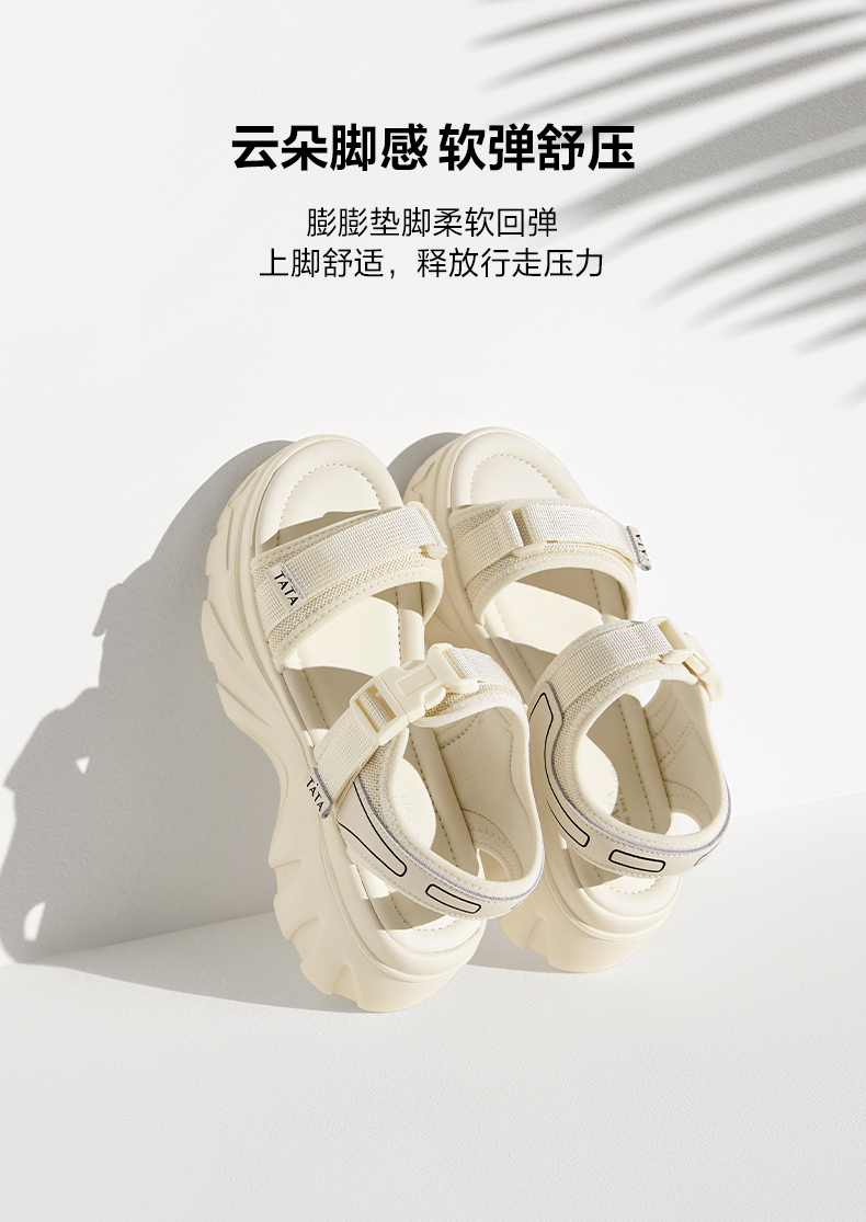 Tata Casual Thick-Soled Sandals Women's Shoes Fashionable Soft-Soled Beach Sandals 2024 Summer New Style Wl701Bl4