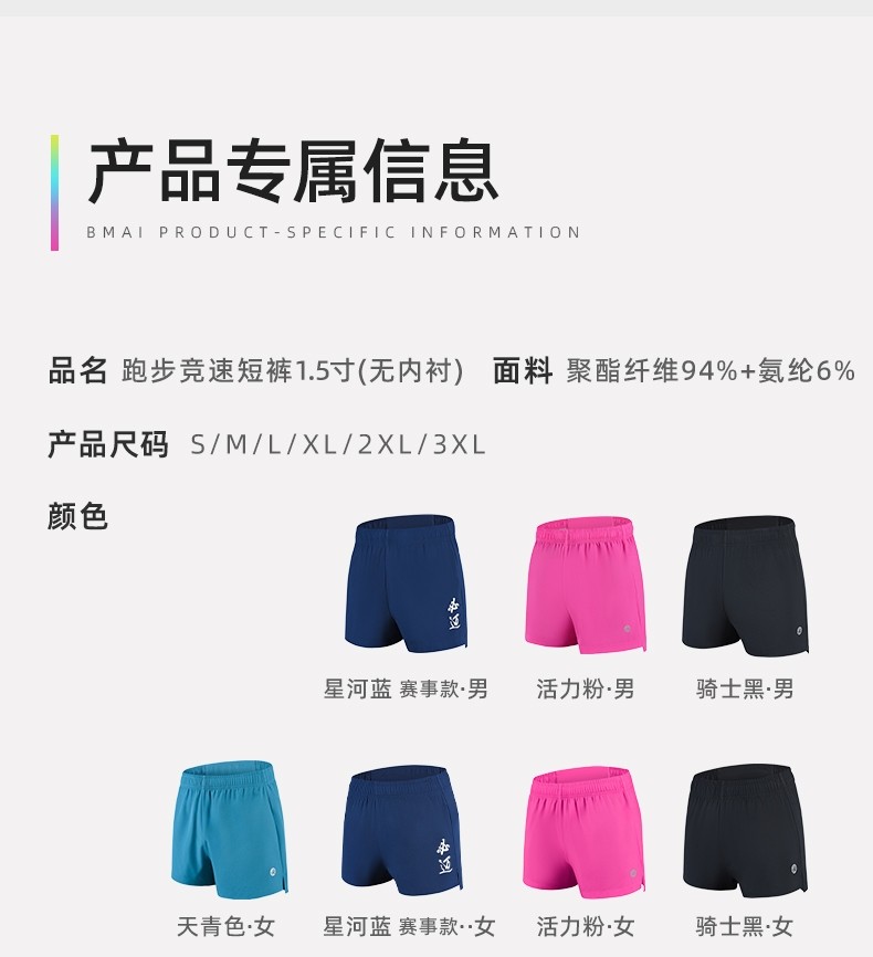 Bimax 1.5inch Quick-Drying Sports Shorts for Men and Women, Skin-Friendly, Breathable, Running, Marathon Training, Fitness Test Shorts