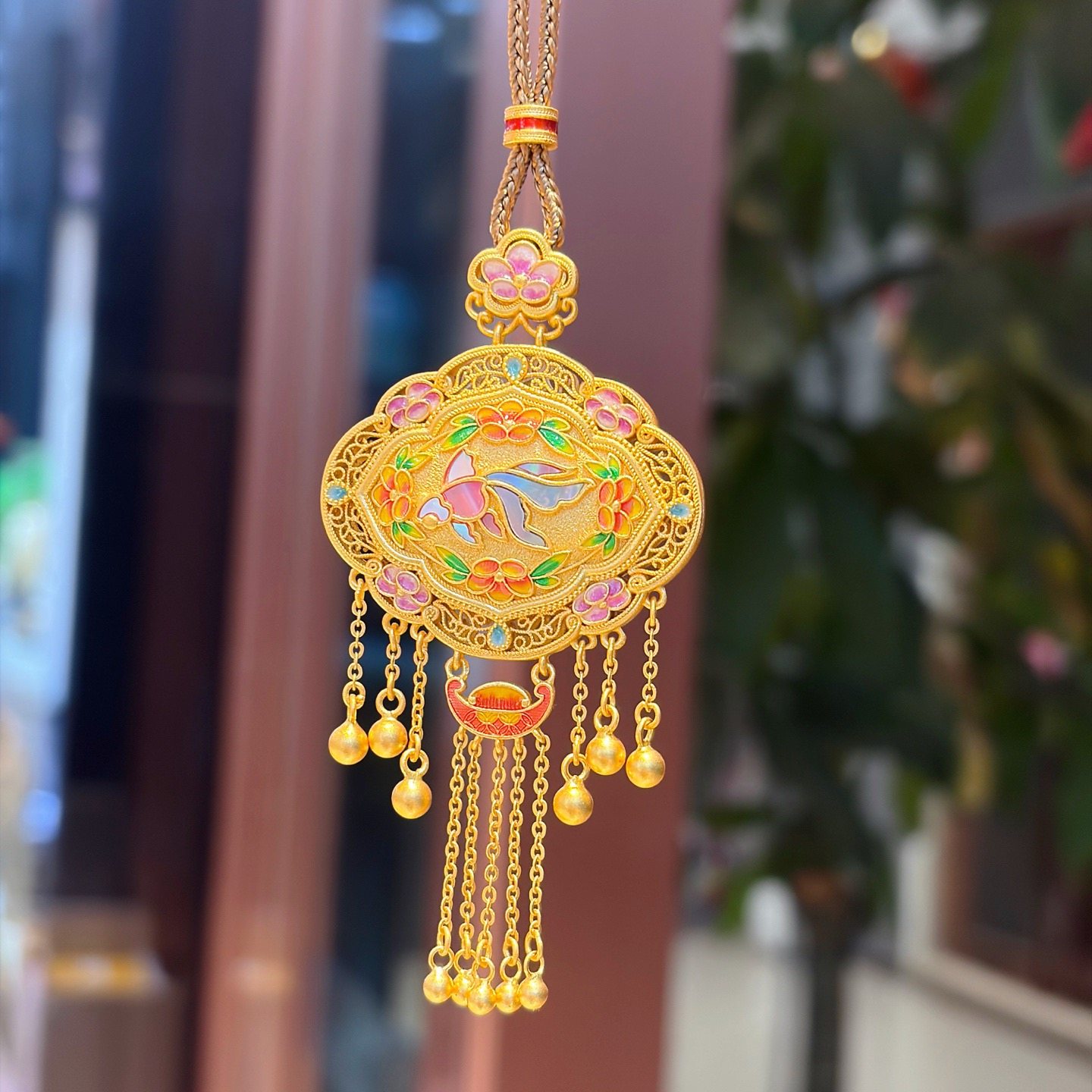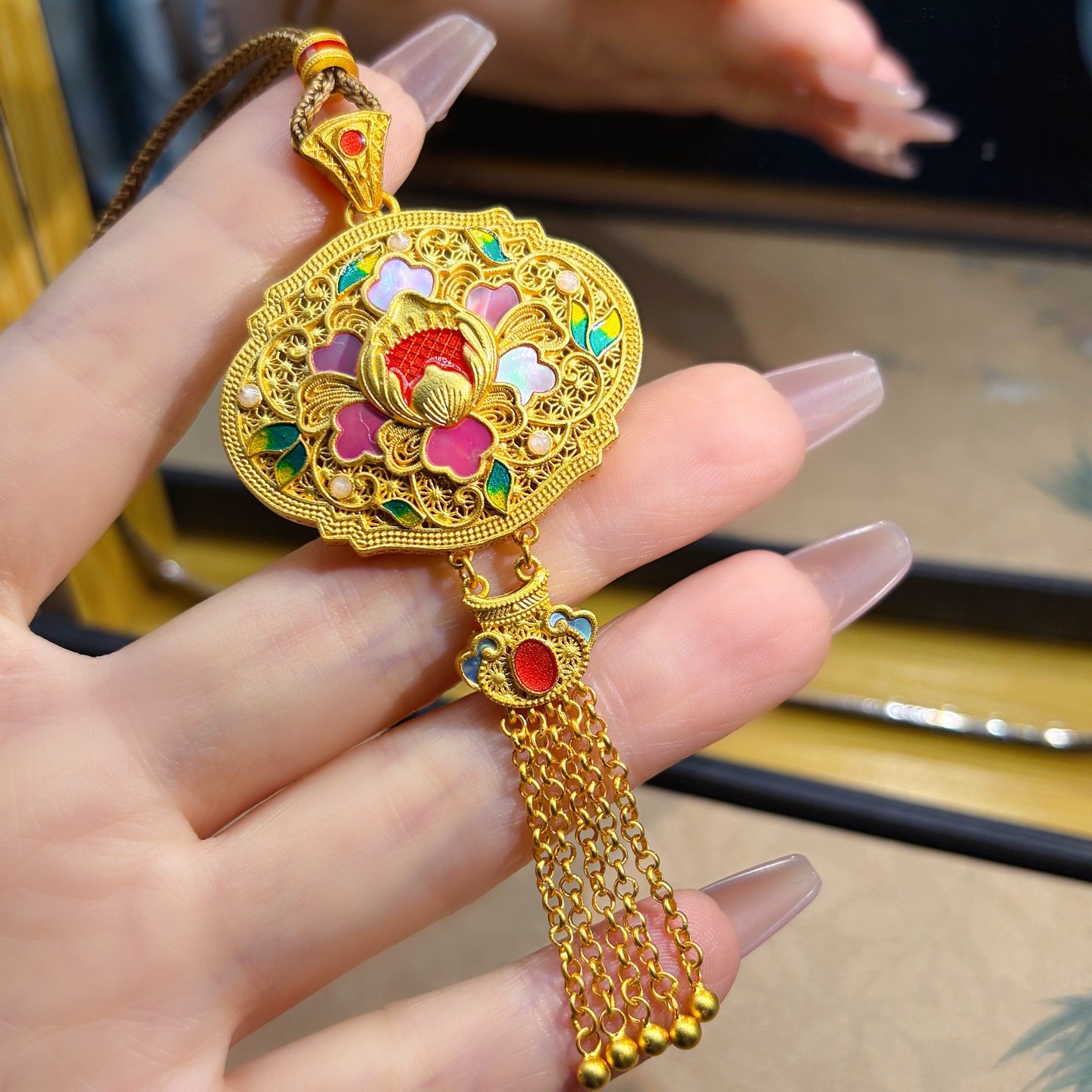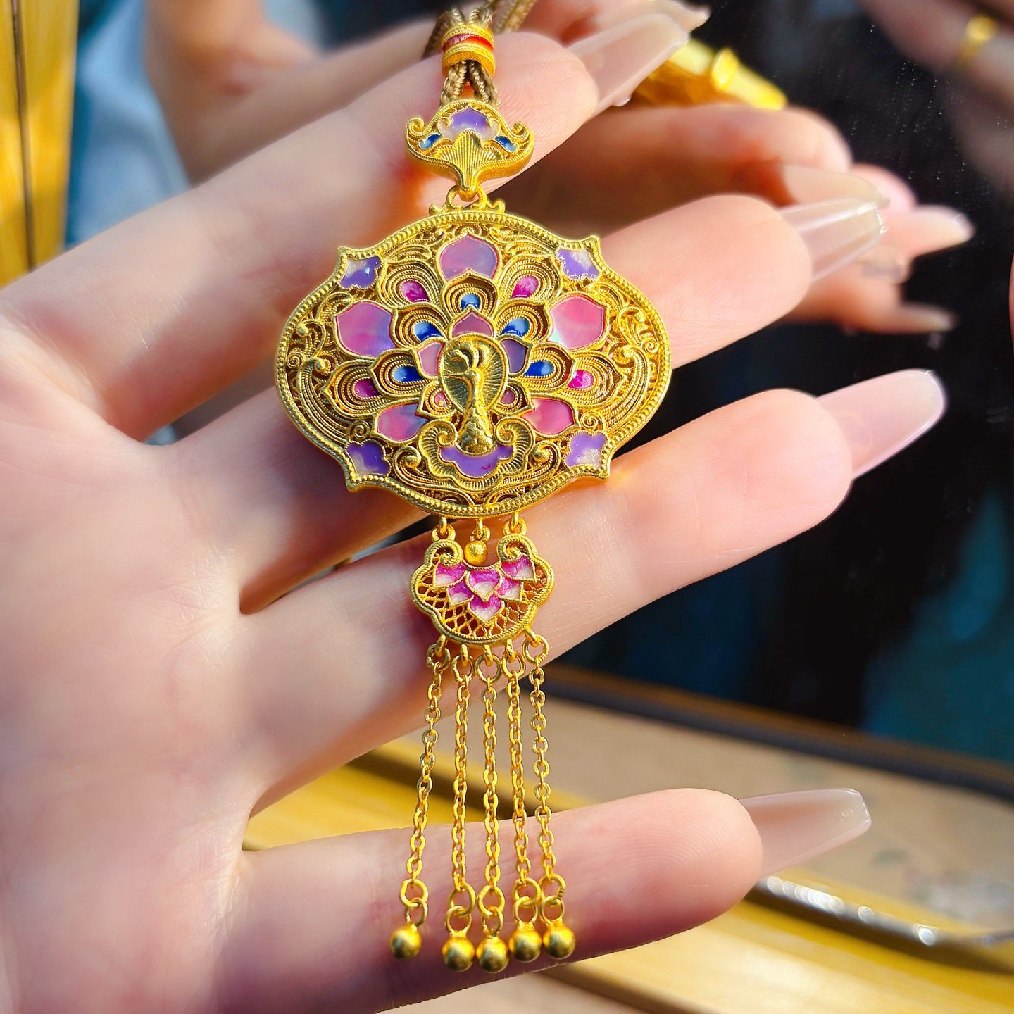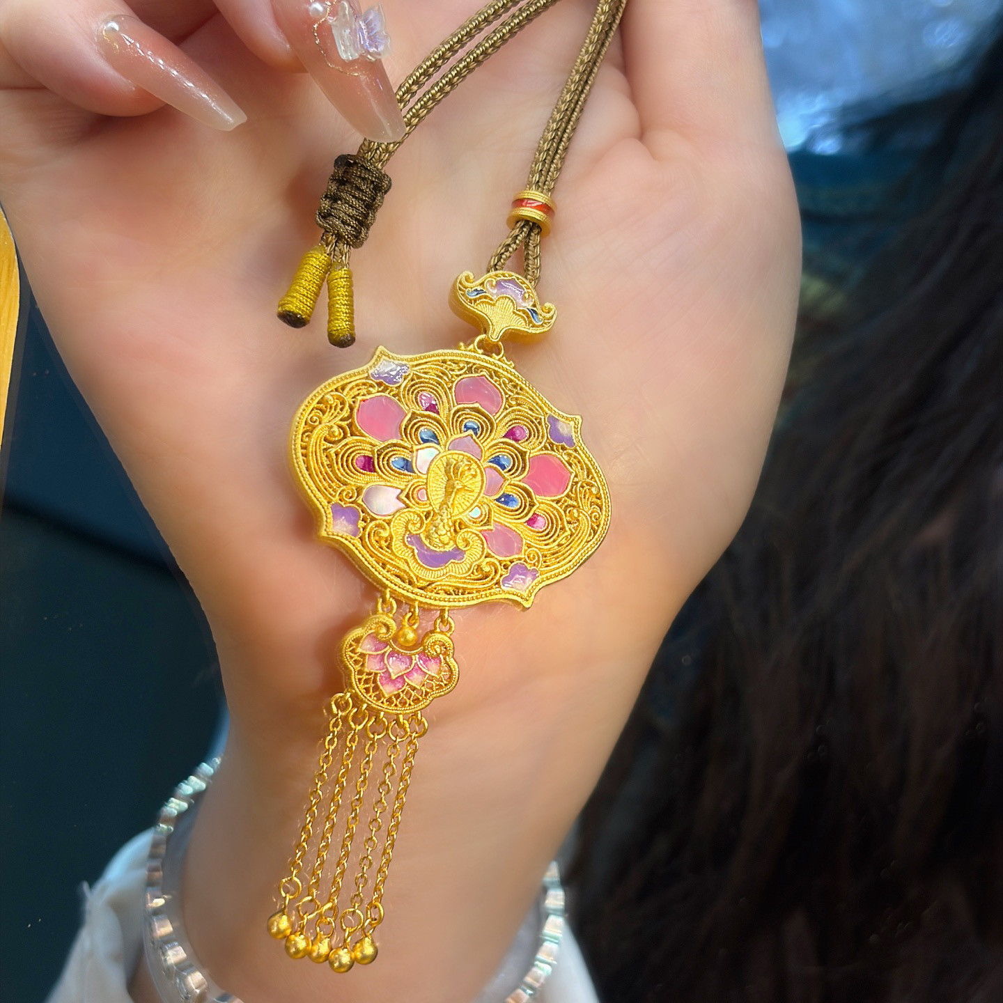 Peony Tassel Lock Bag, Pure Silver 999.9, Purple Wax Electroplated Gold, Mother-Of-Pearl Carp Tassel Chain, Chinese Style, New Chinese Fashion