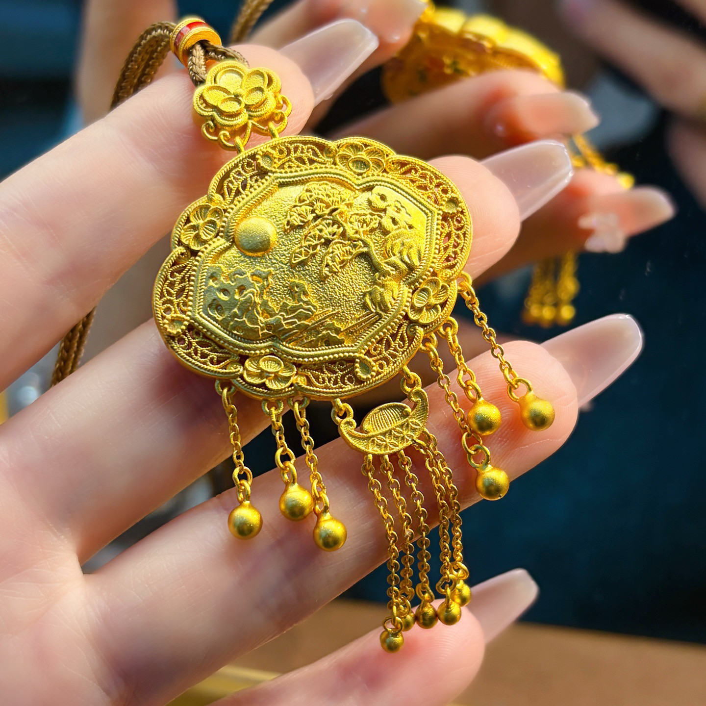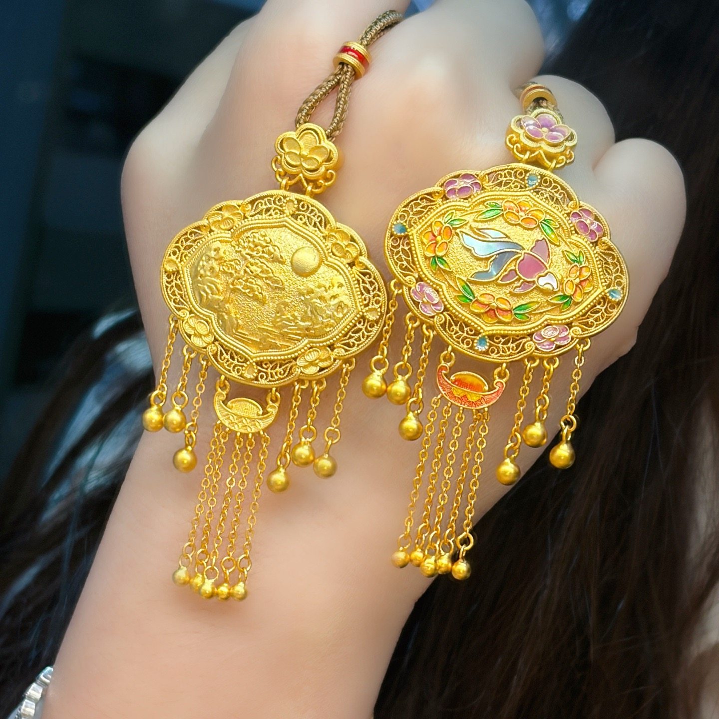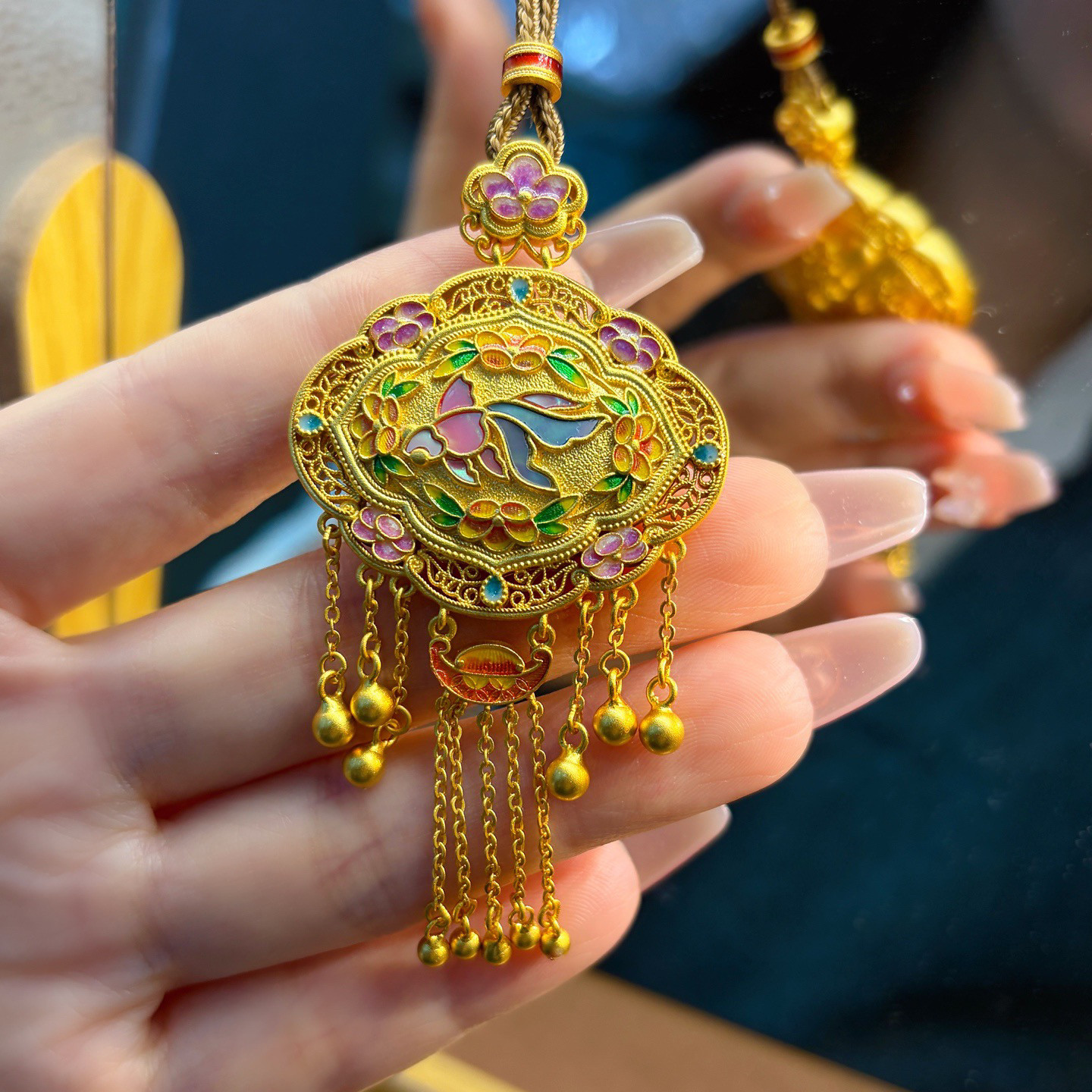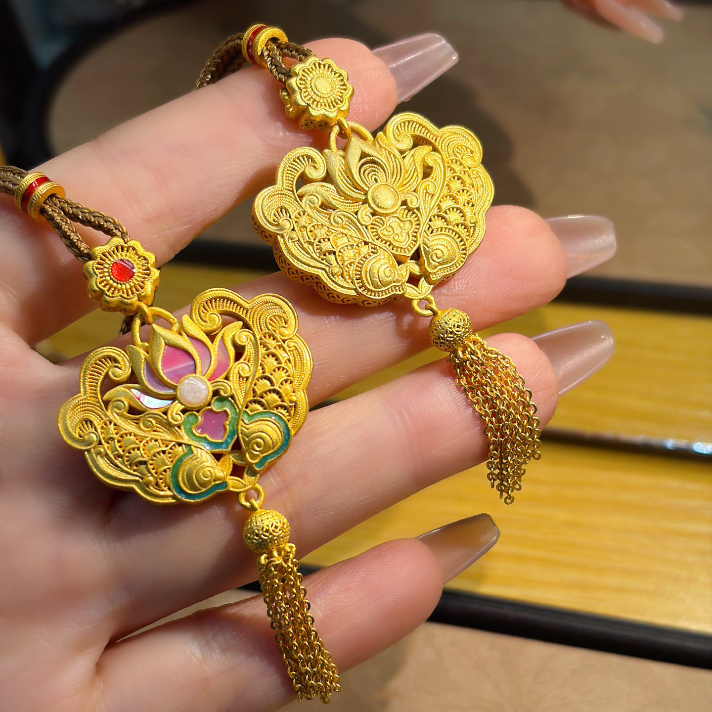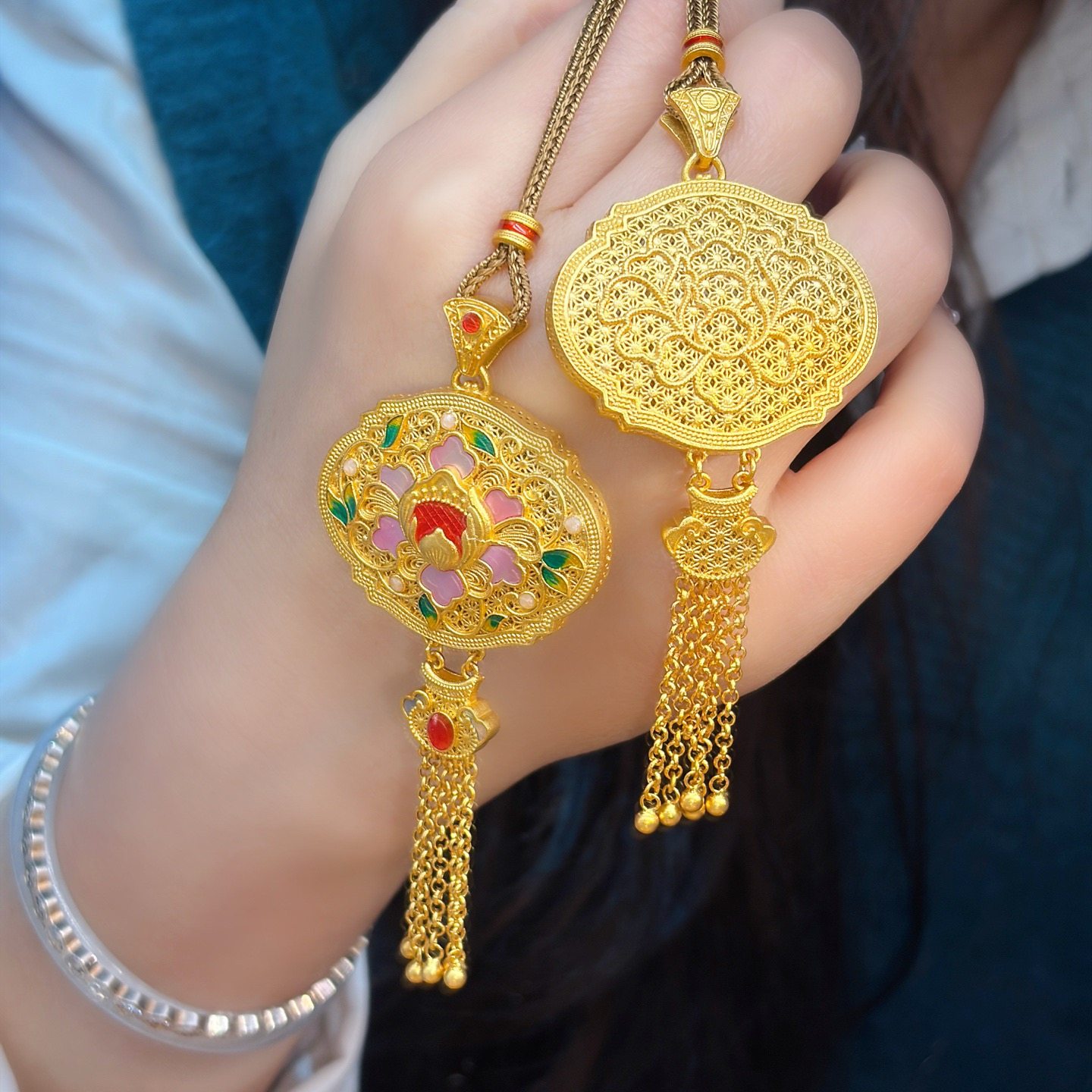 Peony Tassel Lock Bag, Pure Silver 999.9, Purple Wax Electroplated Gold, Mother-Of-Pearl Carp Tassel Chain, Chinese Style, New Chinese Fashion