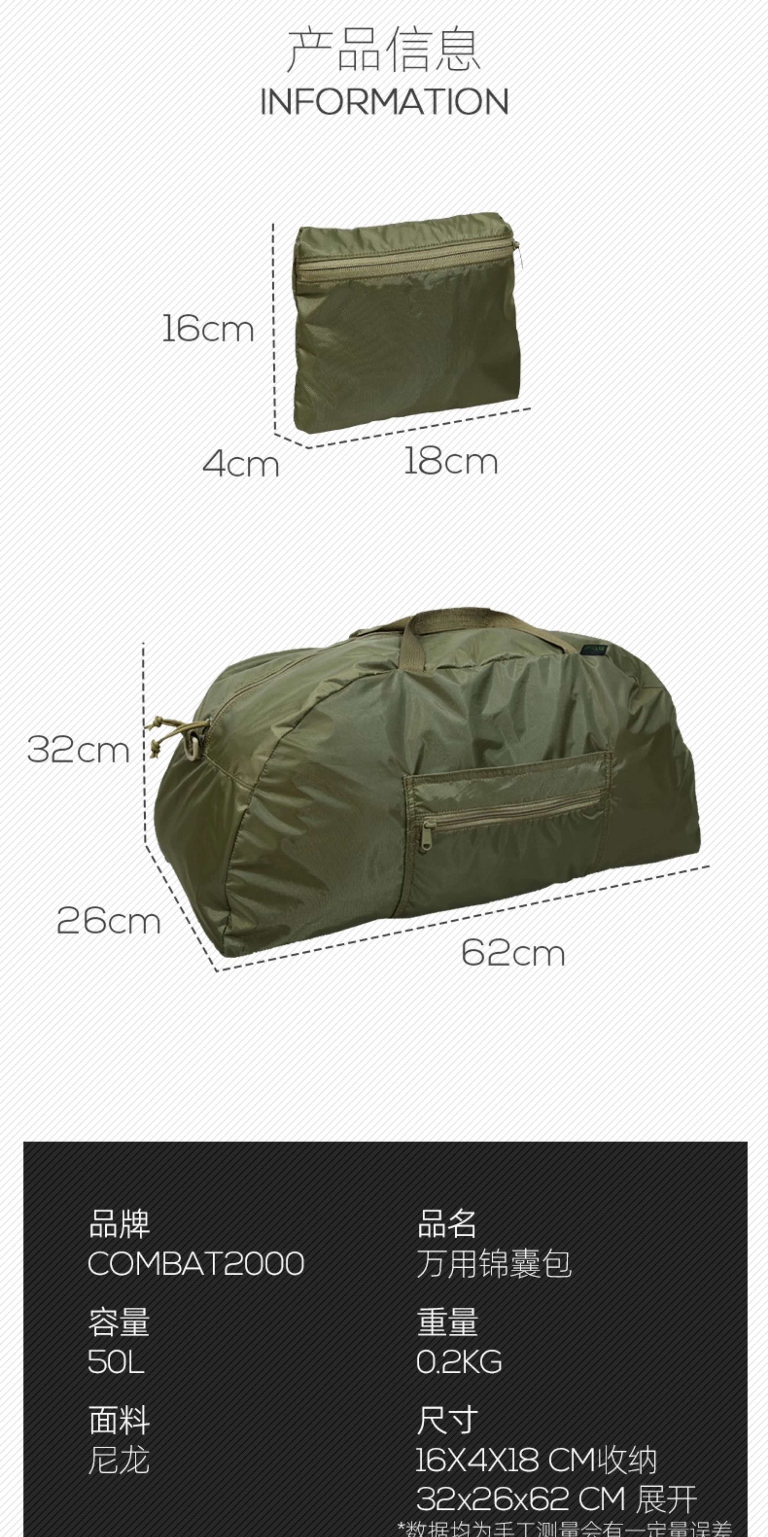 Combat2000 Shoulder Bag Tactical Handbag Multi-Purpose Travel Bag 50L Outdoor Foldable Travel Storage Bag