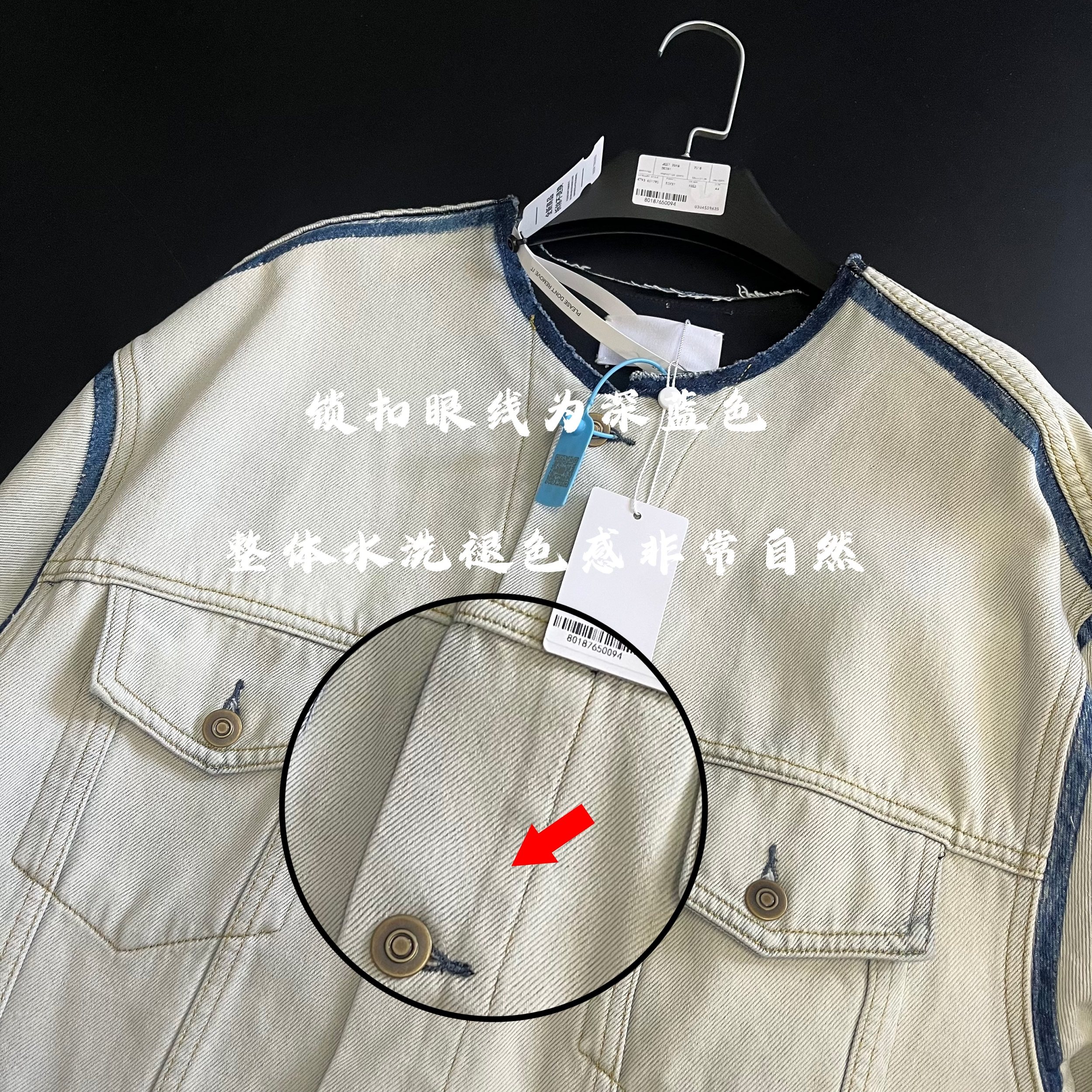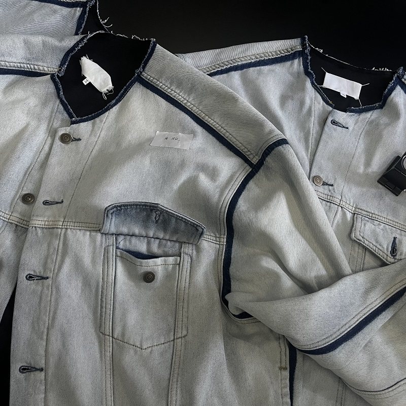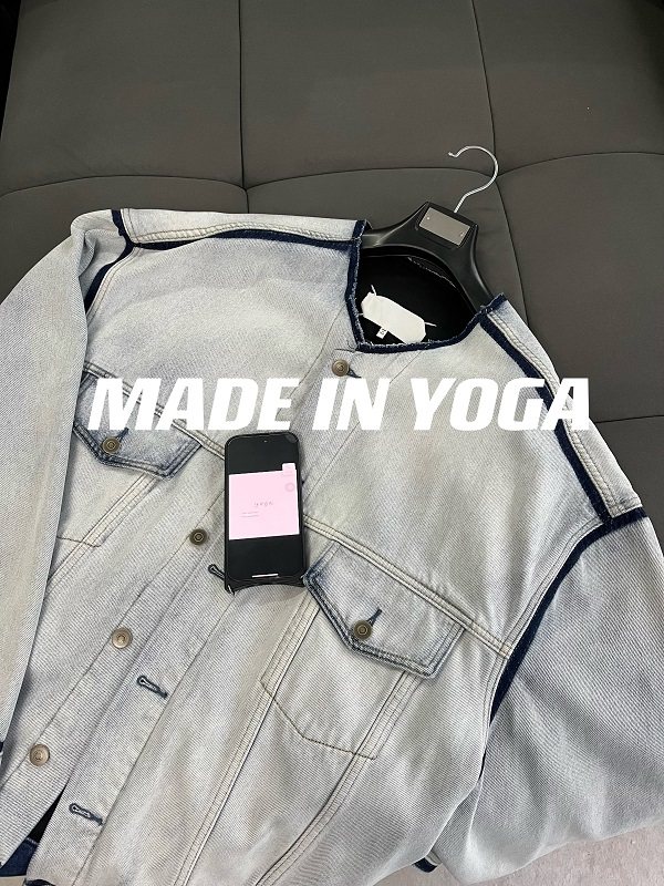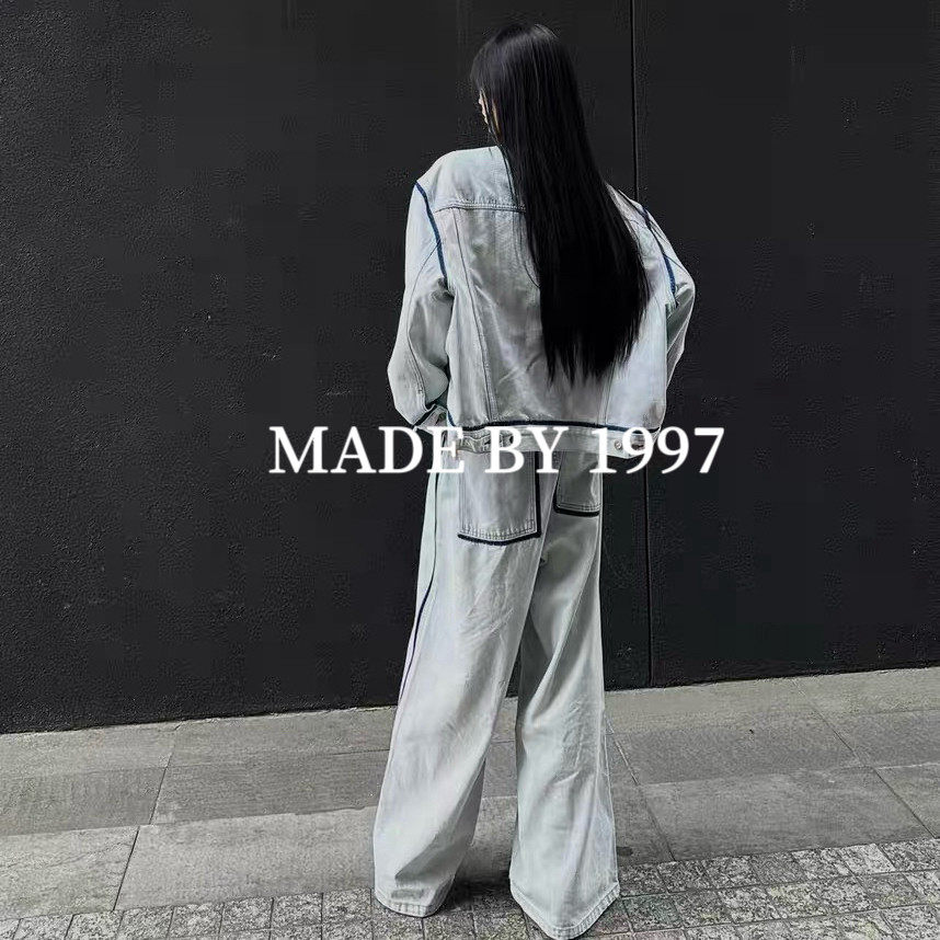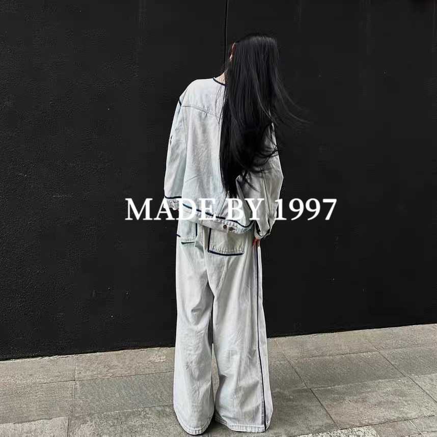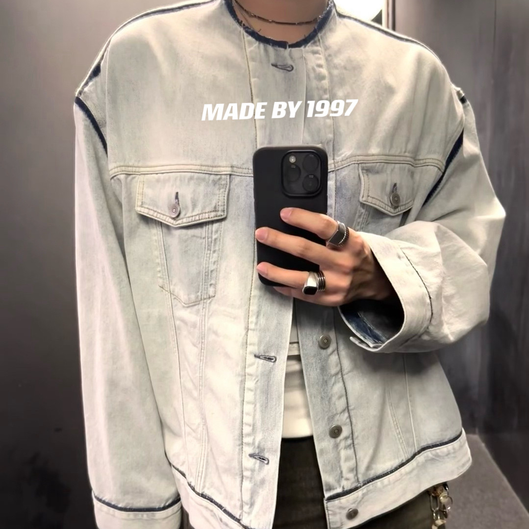 Mala Style Washed Independent Art Four-Corner Line Collarless Denim Jacket High Intelligence Versatile Deconstructed Silhouette