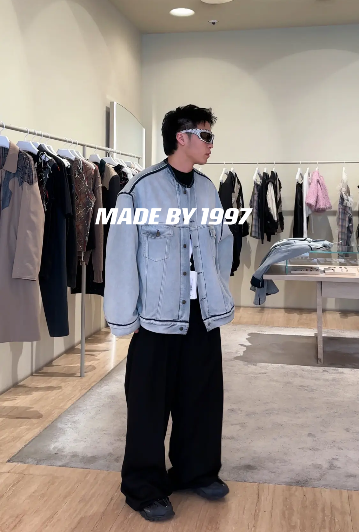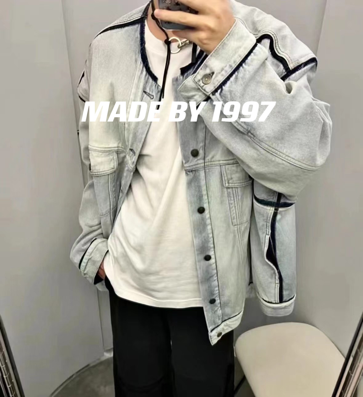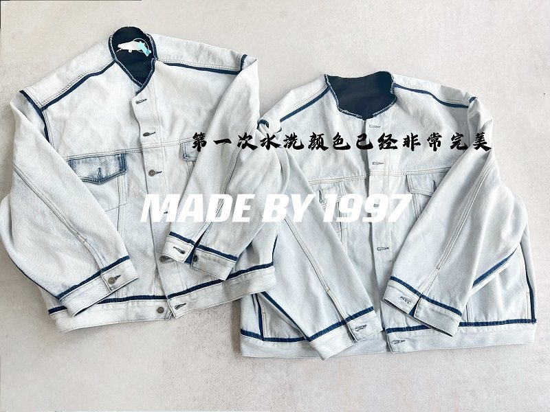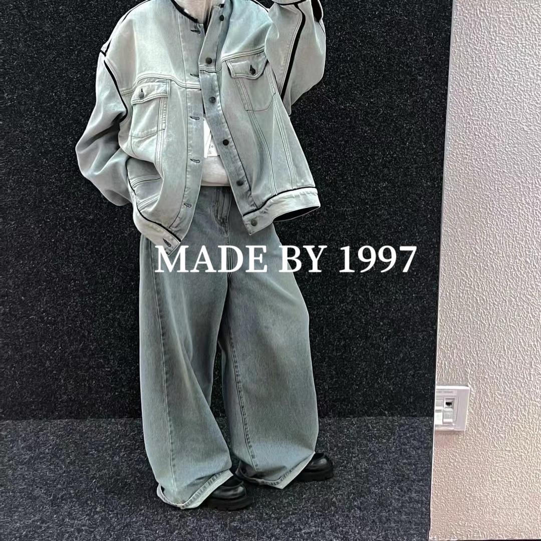 Mala Style Washed Independent Art Four-Corner Line Collarless Denim Jacket High Intelligence Versatile Deconstructed Silhouette