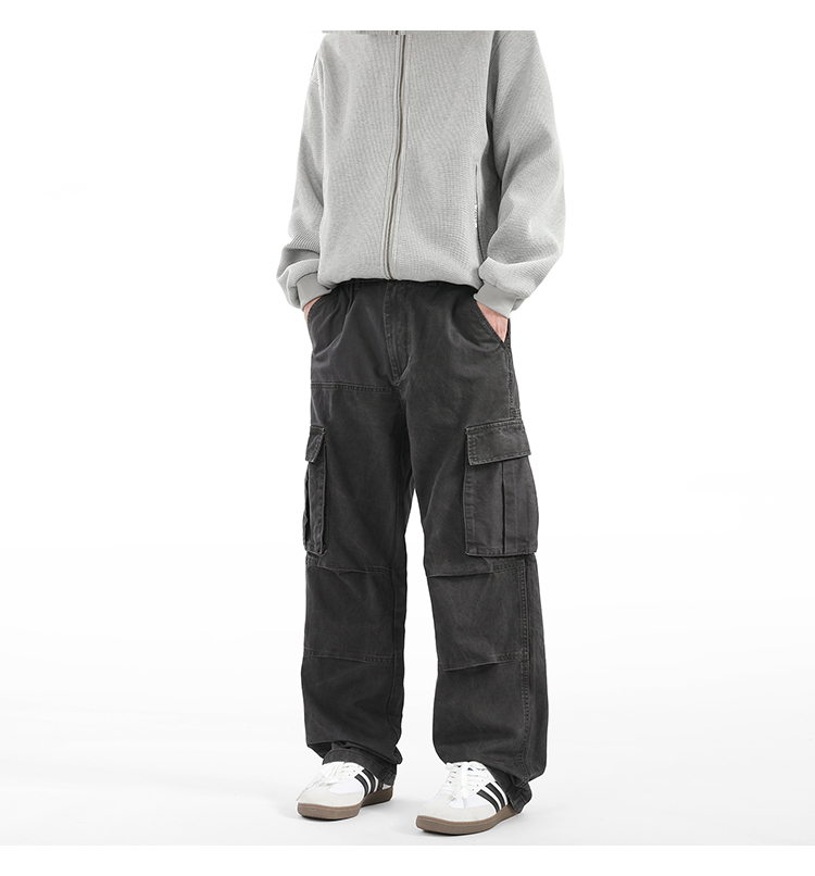 Raven Oasis American Retro High Street Multi-Pocket Cargo Pants Unisex Loose Cleanfit Casual Pants