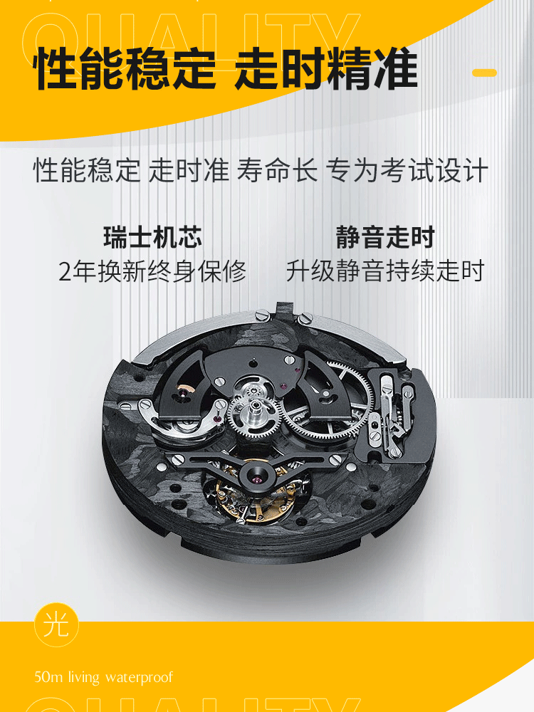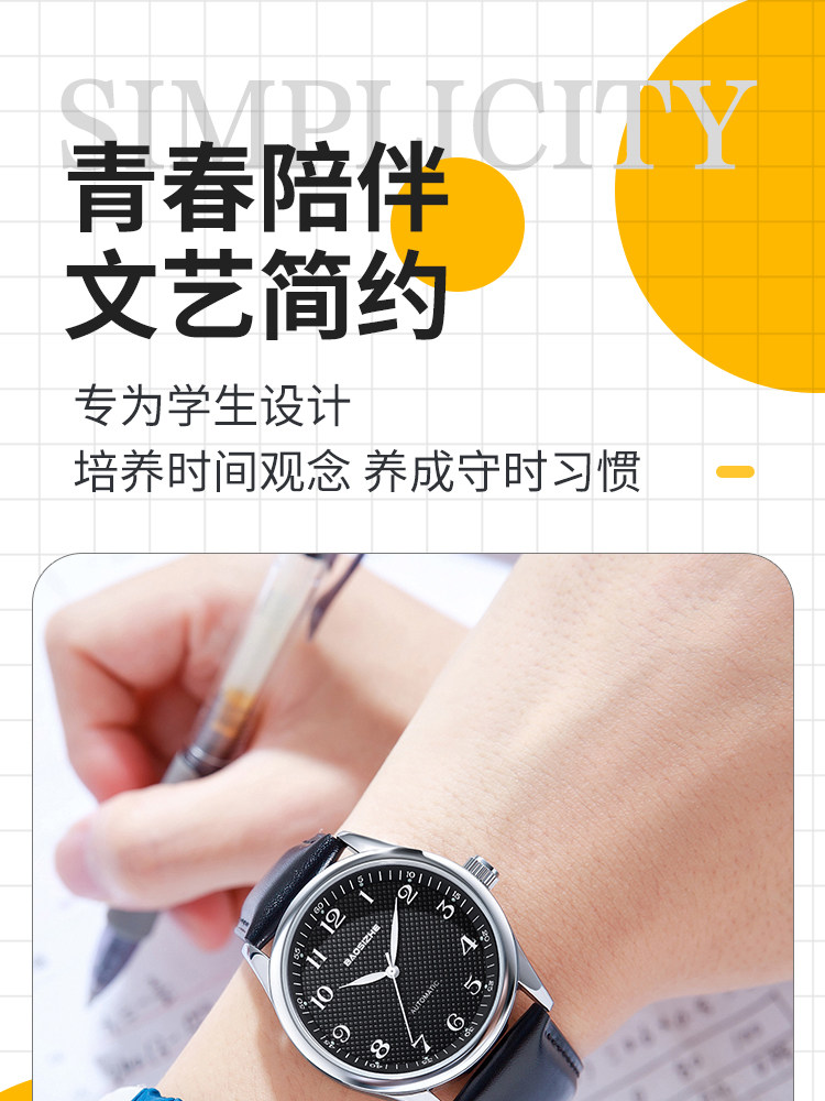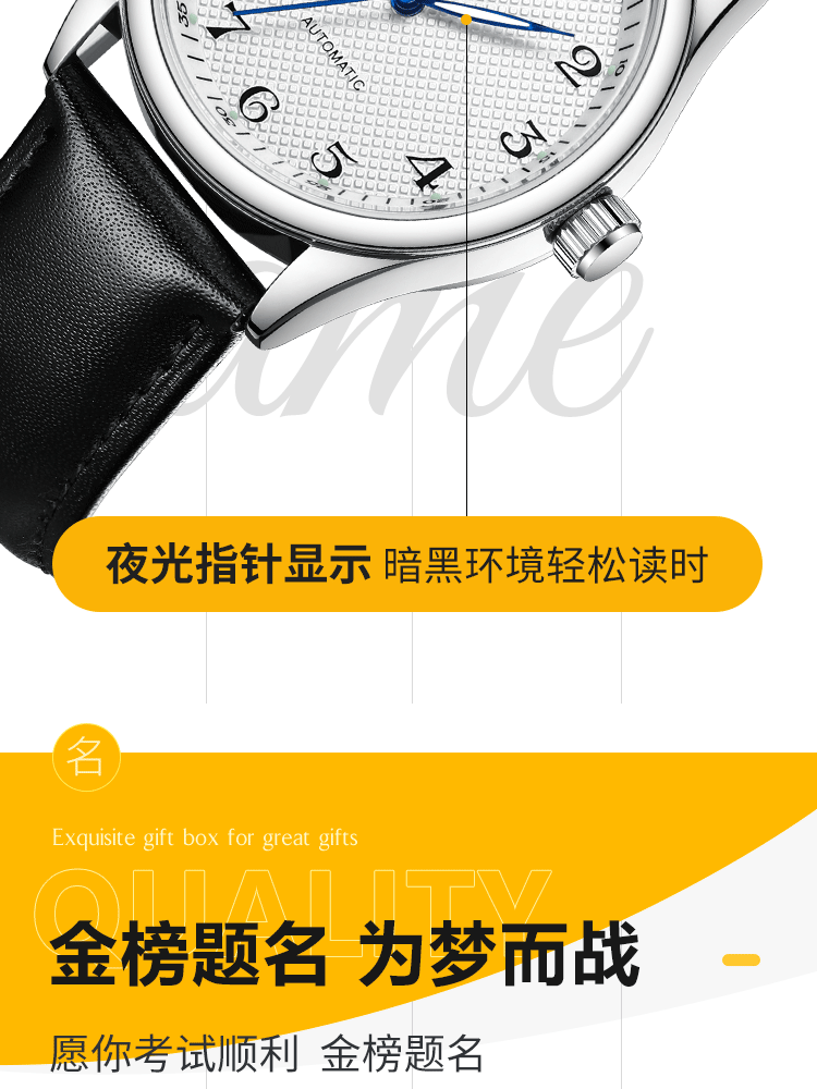 Silent Mechanical Watch for Civil Service Exams, Men's and Women's Models, Fully Automatic Winding, Suitable for National Exams and Junior High School Students
