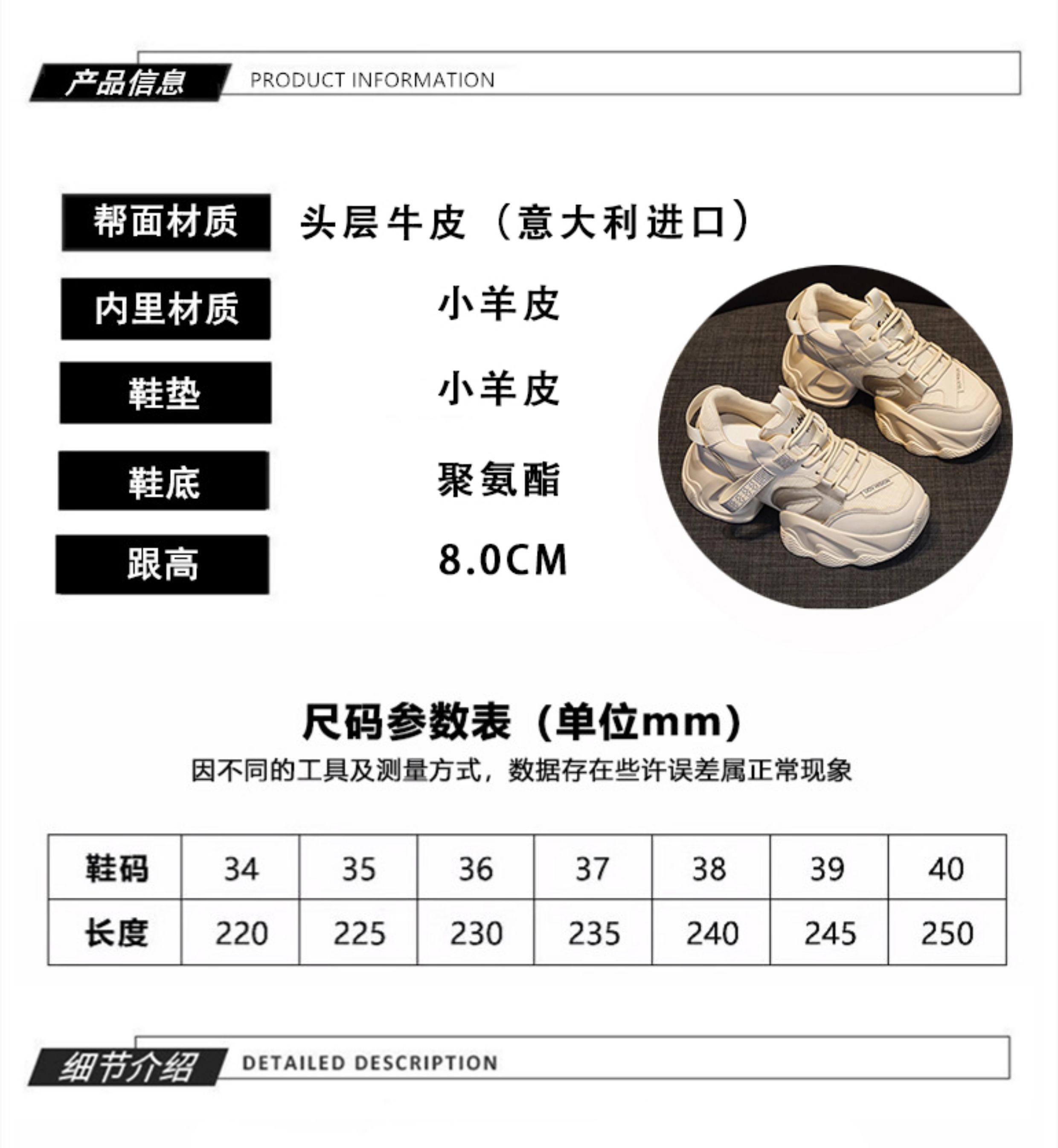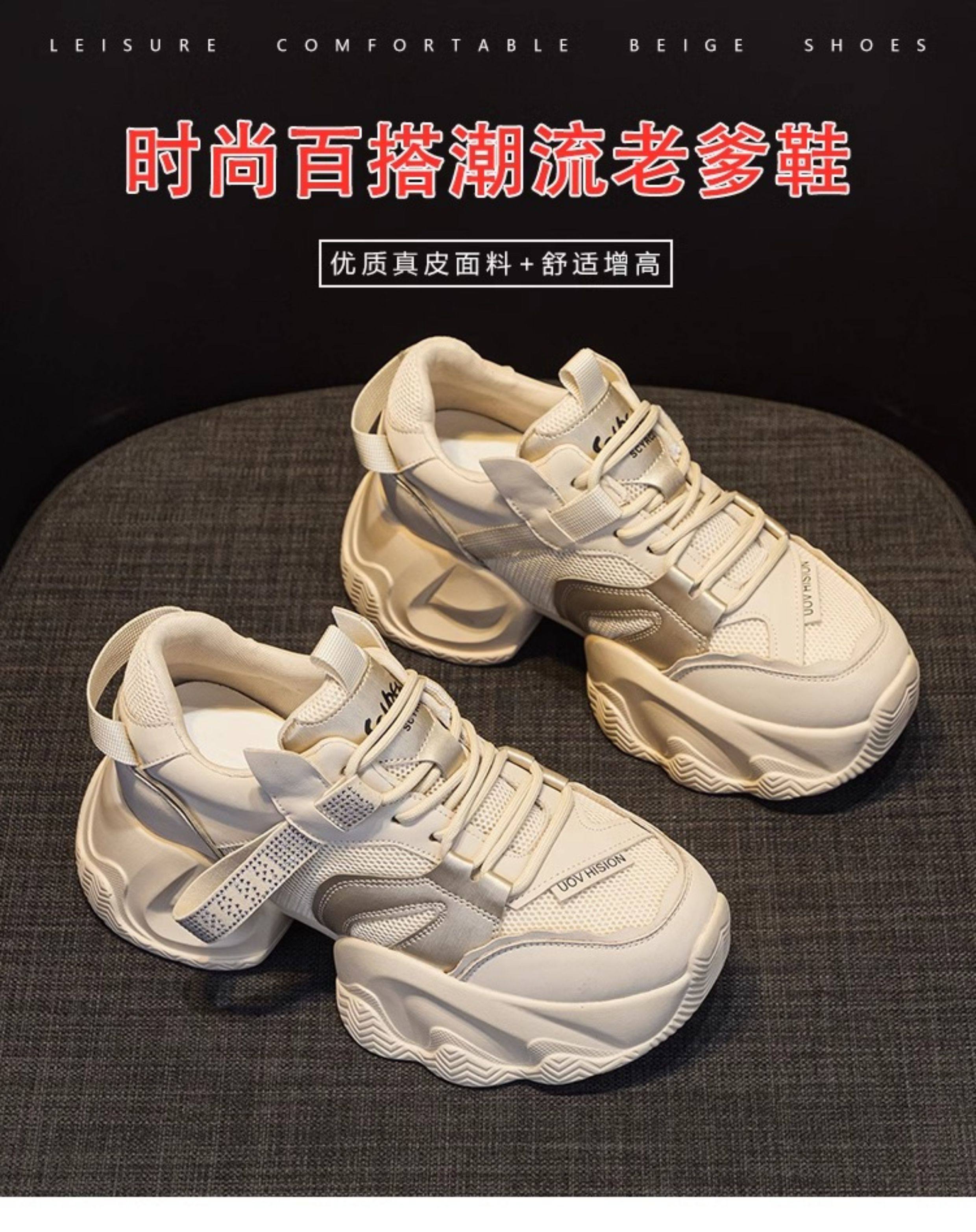 Hong Kong Genuine Leather Thick-Soled Dad Shoes for Women 2025 New Spring and Autumn Height-Increasing Women's Shoes Versatile Spring Casual Sneakers