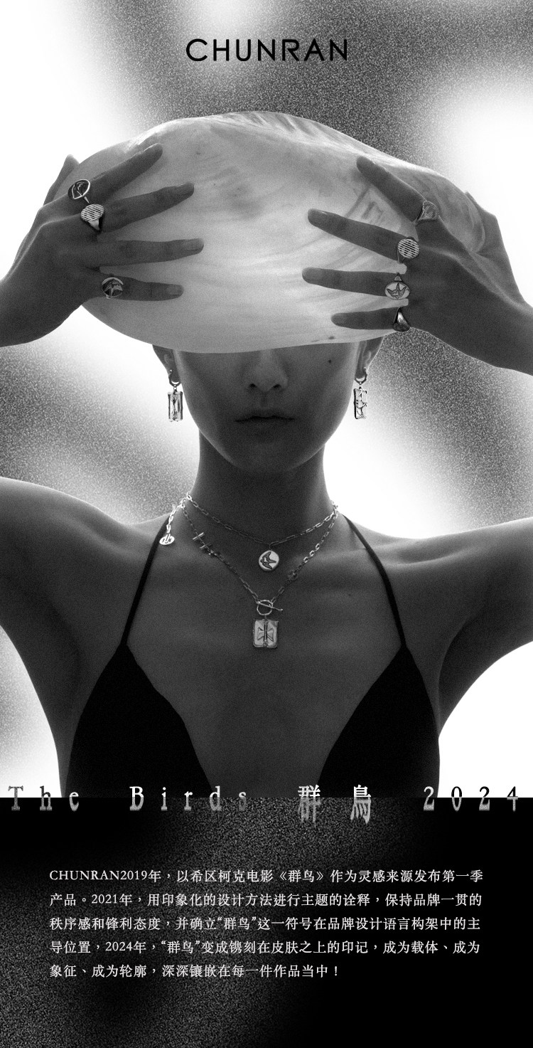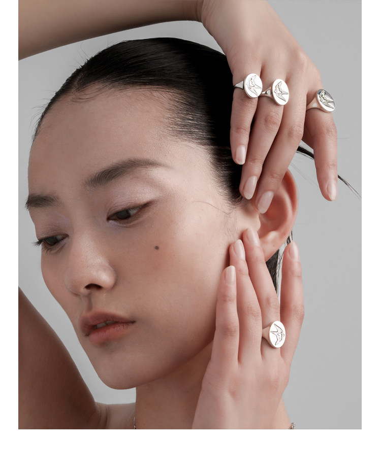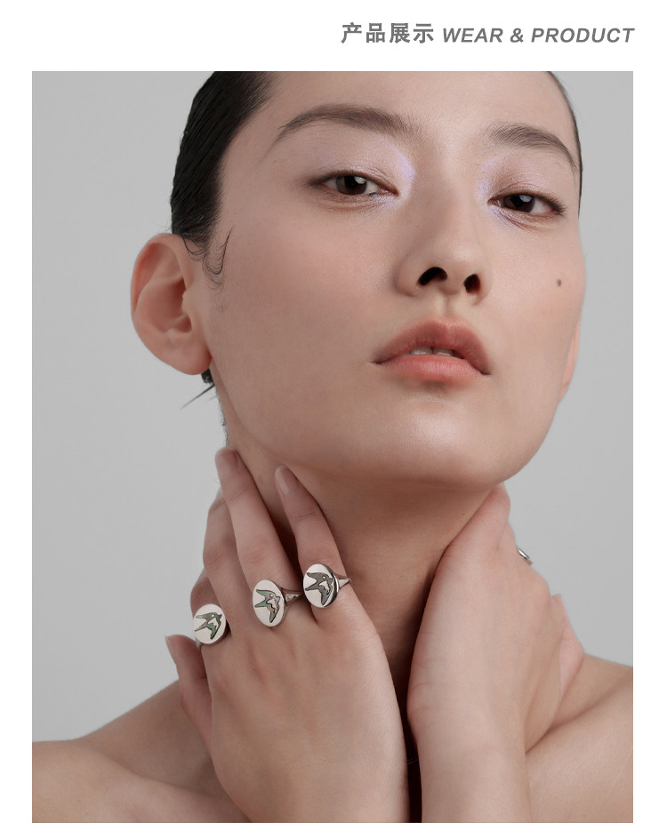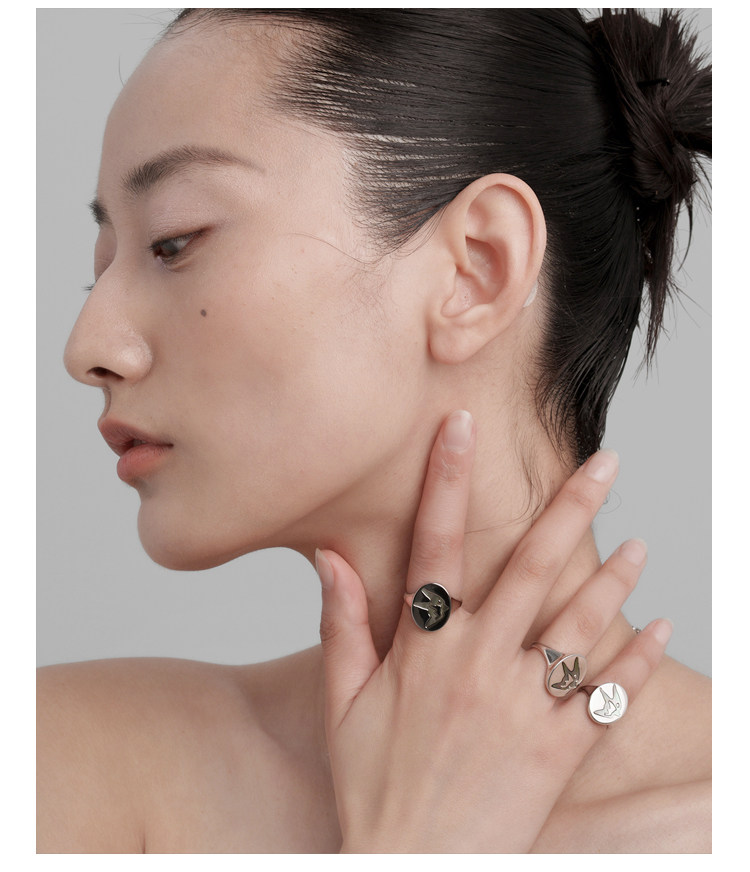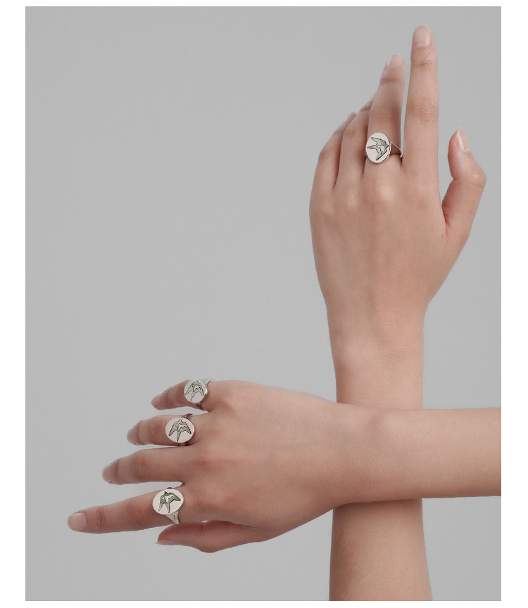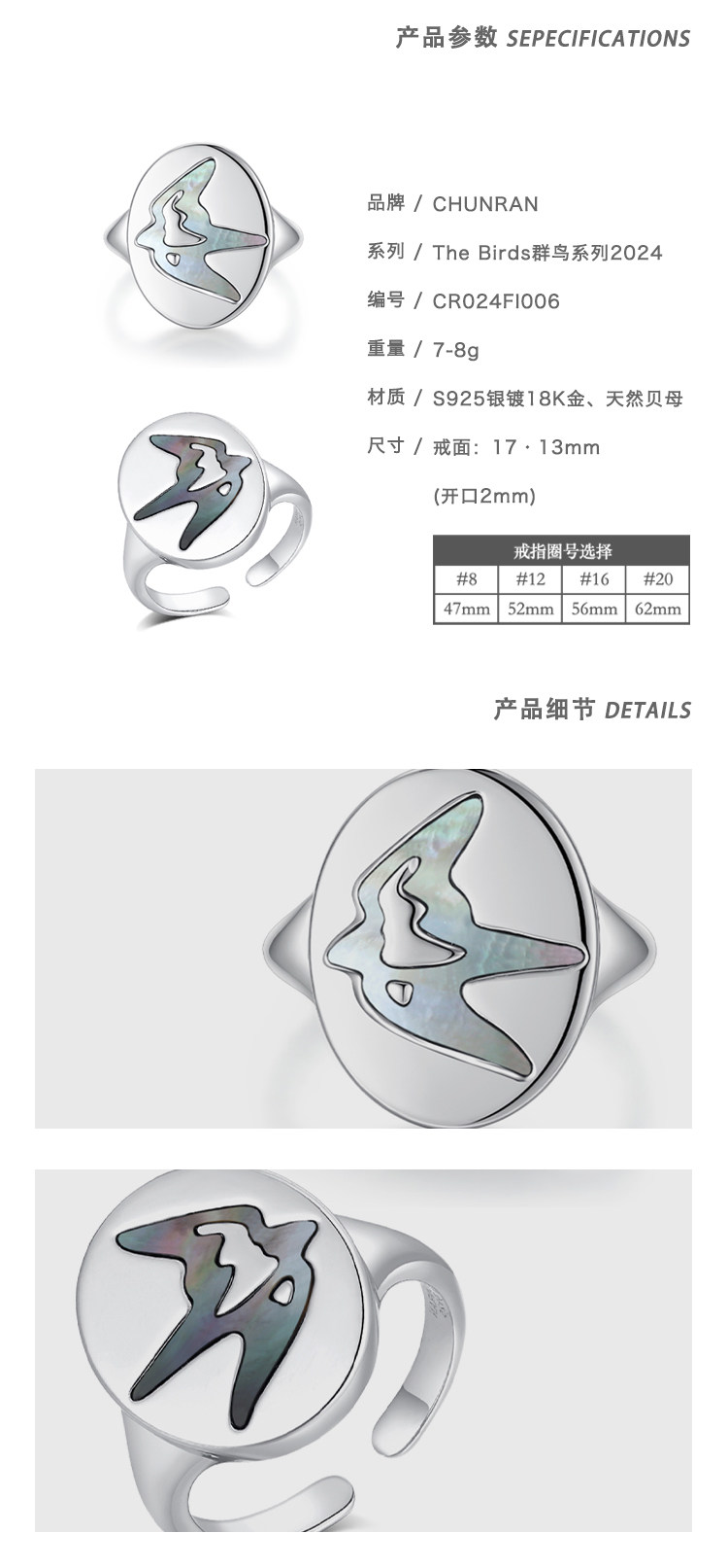 Chunran S925 Silver Bird Cluster Black Mother-Of-Pearl Seal Open Ring
