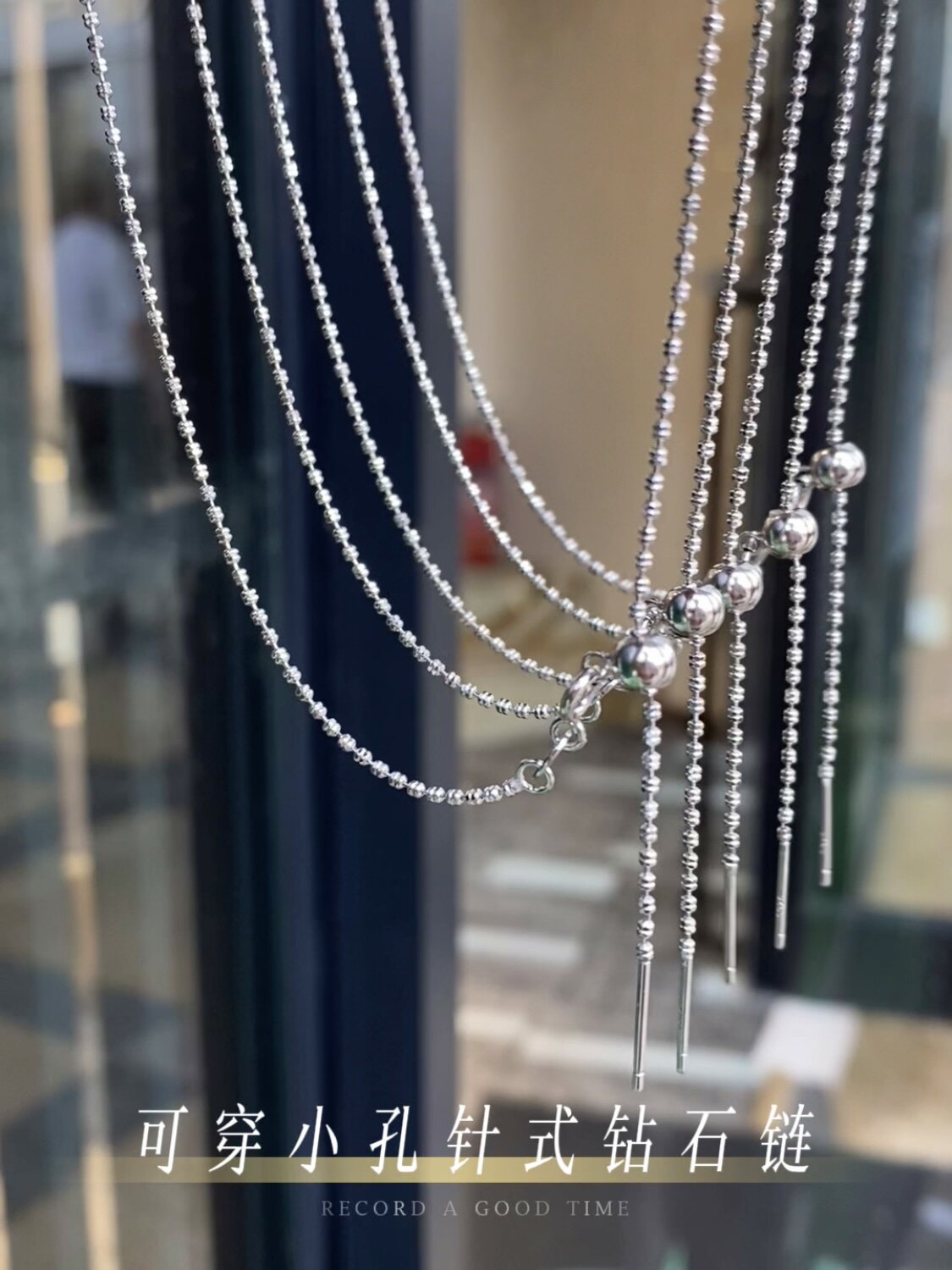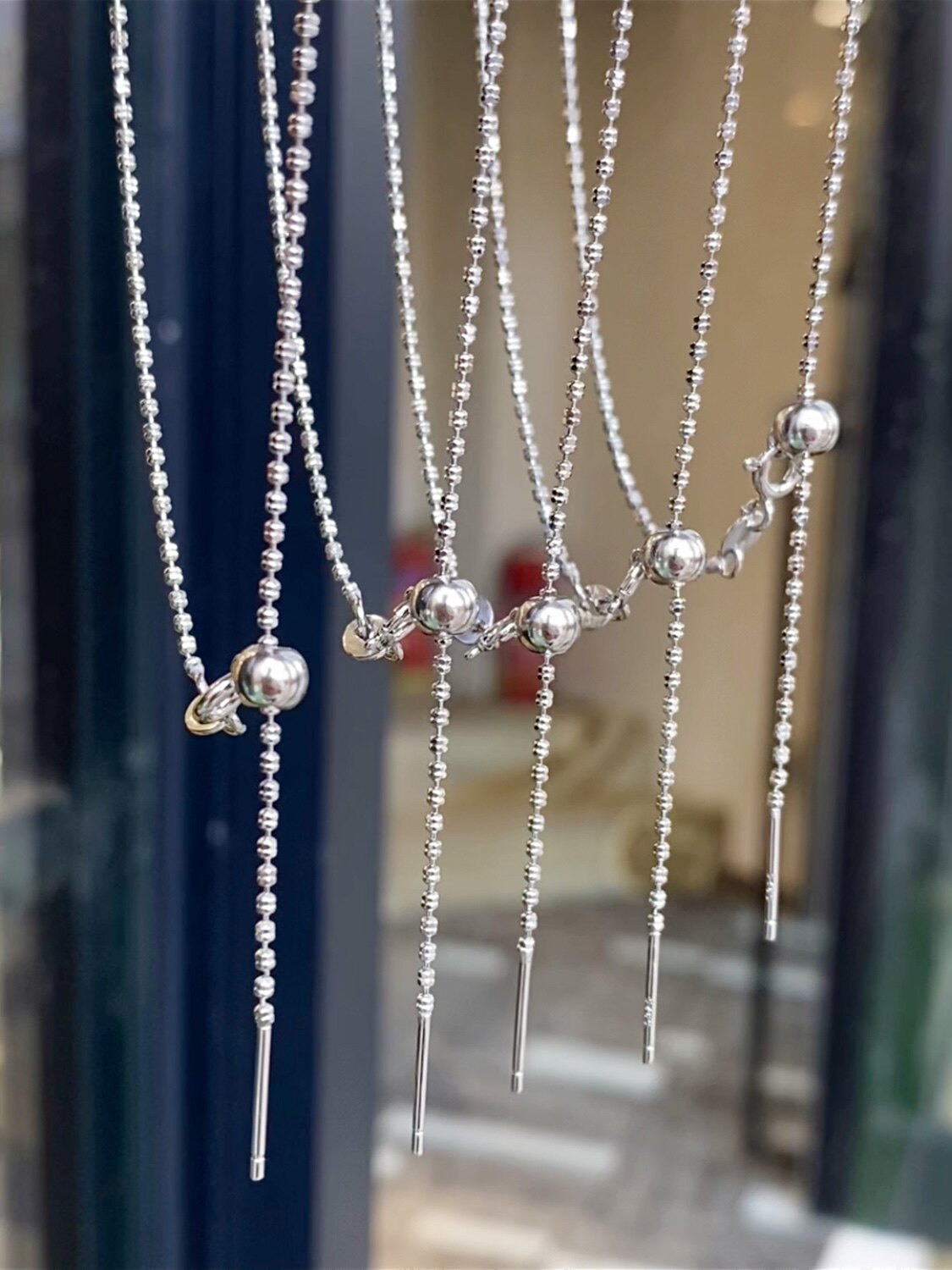 Double Flash Bead Sterling Silver Necklace for Women, Pin-Type Universal Chain, Round Bead Chain, Italian Sparkling Diamond Chain, Clavicle Chain, Plain Chain