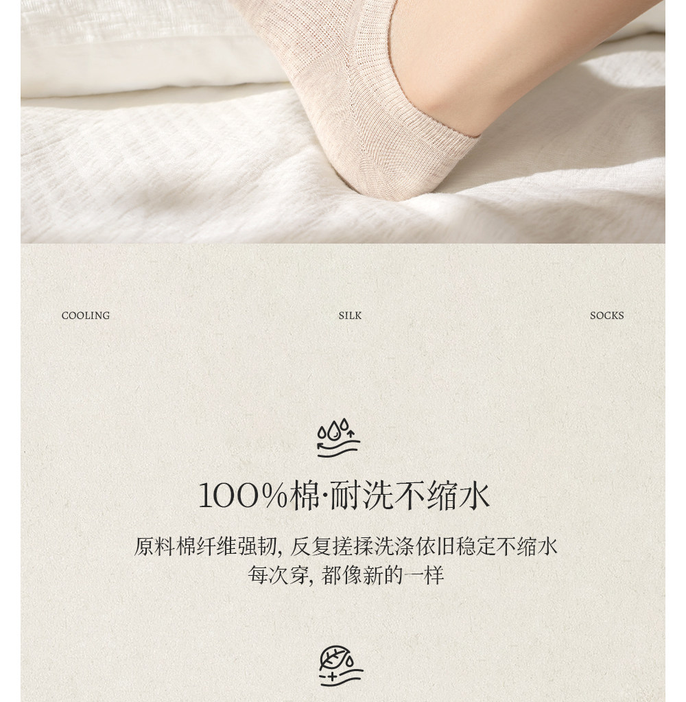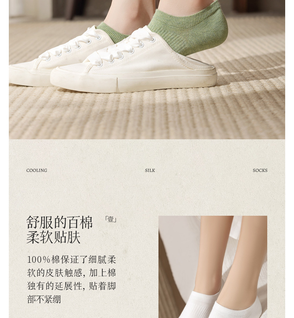 100% Cotton Socks for Women, Pure Cotton Spring and Summer No-Show Socks, Sweat-Absorbent, Non-Slip, No-Show, All-Cotton, Invisible Mesh Thin Short Socks