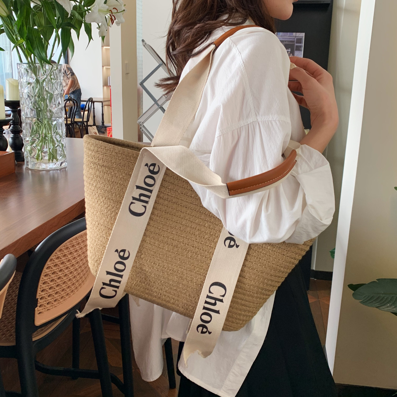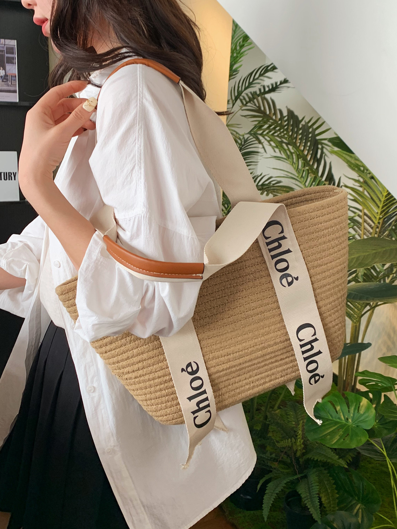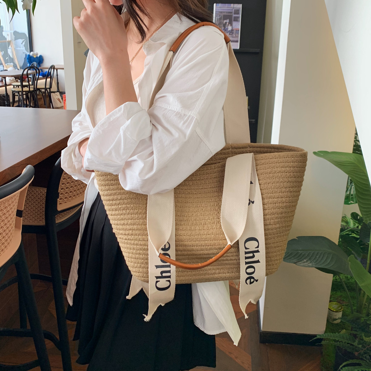 Straw Bag for Women 2024 New Style Seaside Vacation Beach Bag Large Capacity Tote Bag Letter Webbing Shoulder Handbag