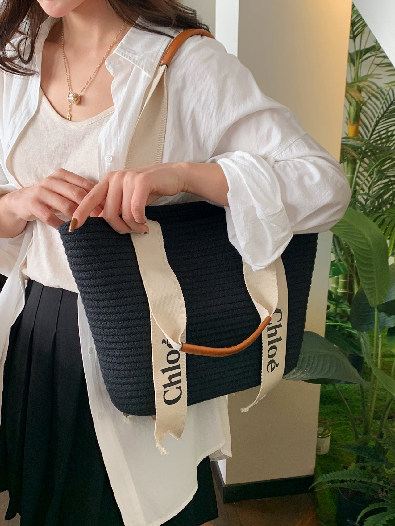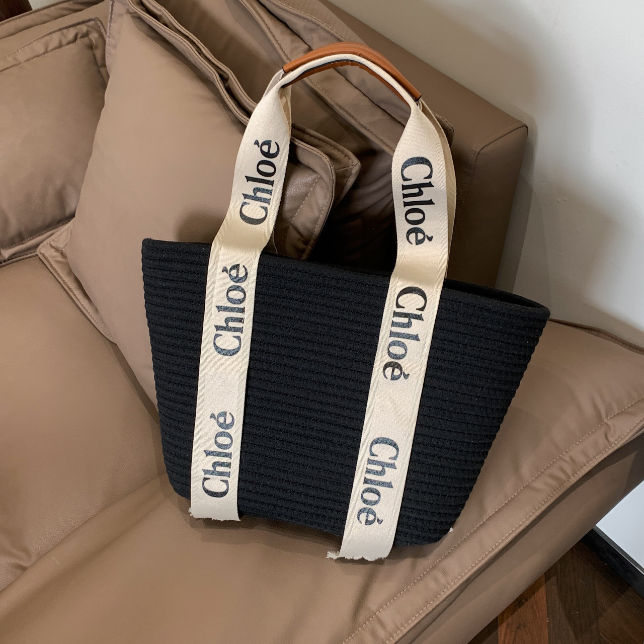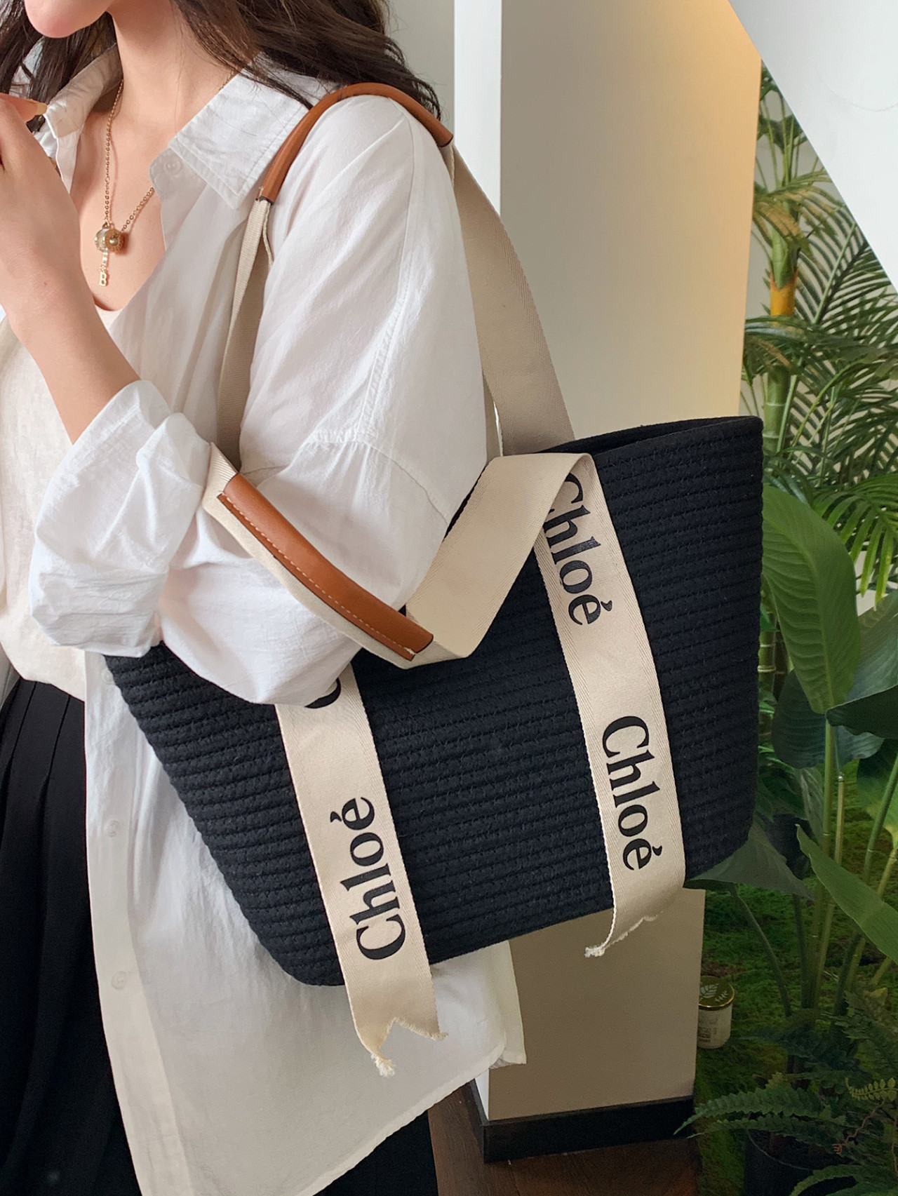 Straw Bag for Women 2024 New Style Seaside Vacation Beach Bag Large Capacity Tote Bag Letter Webbing Shoulder Handbag