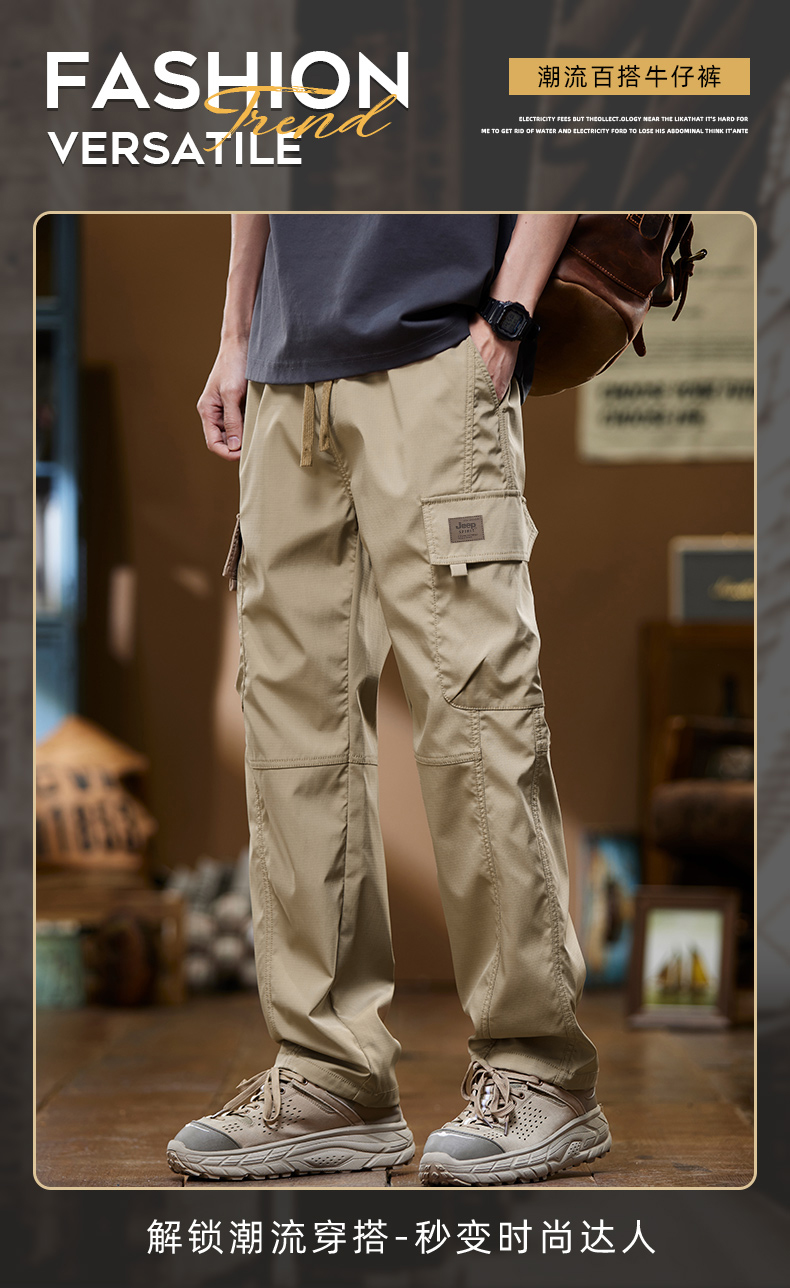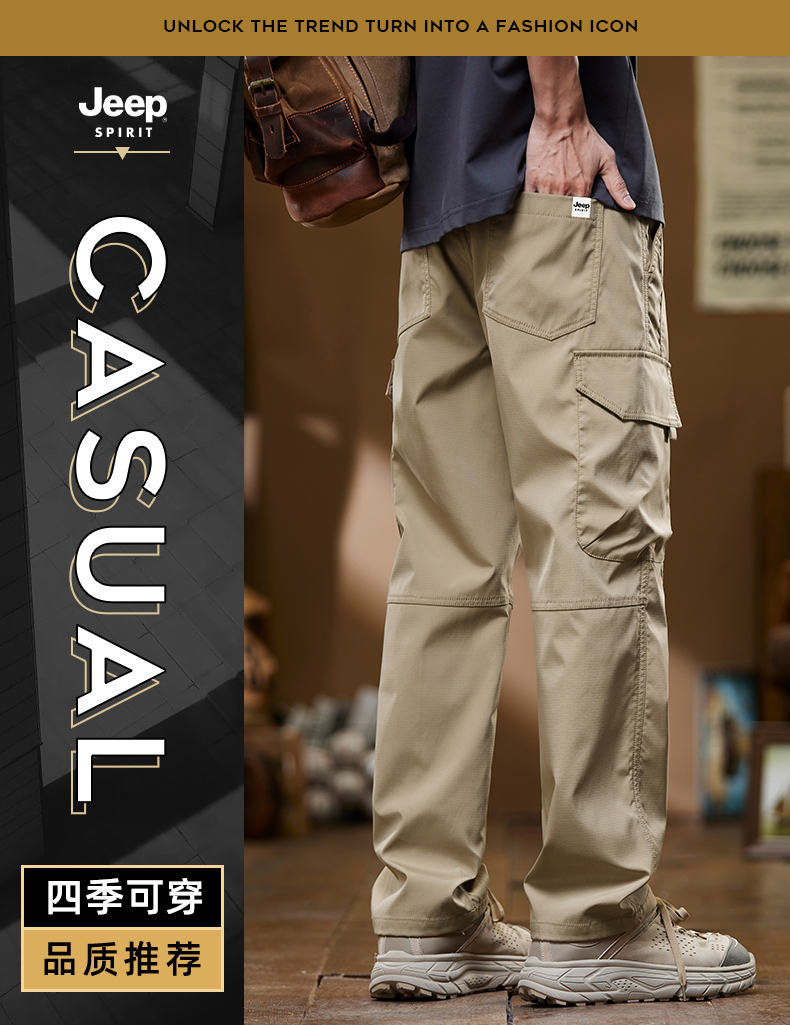 Jeep Work Pants Men's Trousers Casual Pants Autumn and Winter New Men's Straight-Leg Fleece-Lined Pants Thickened Men's Clothing
