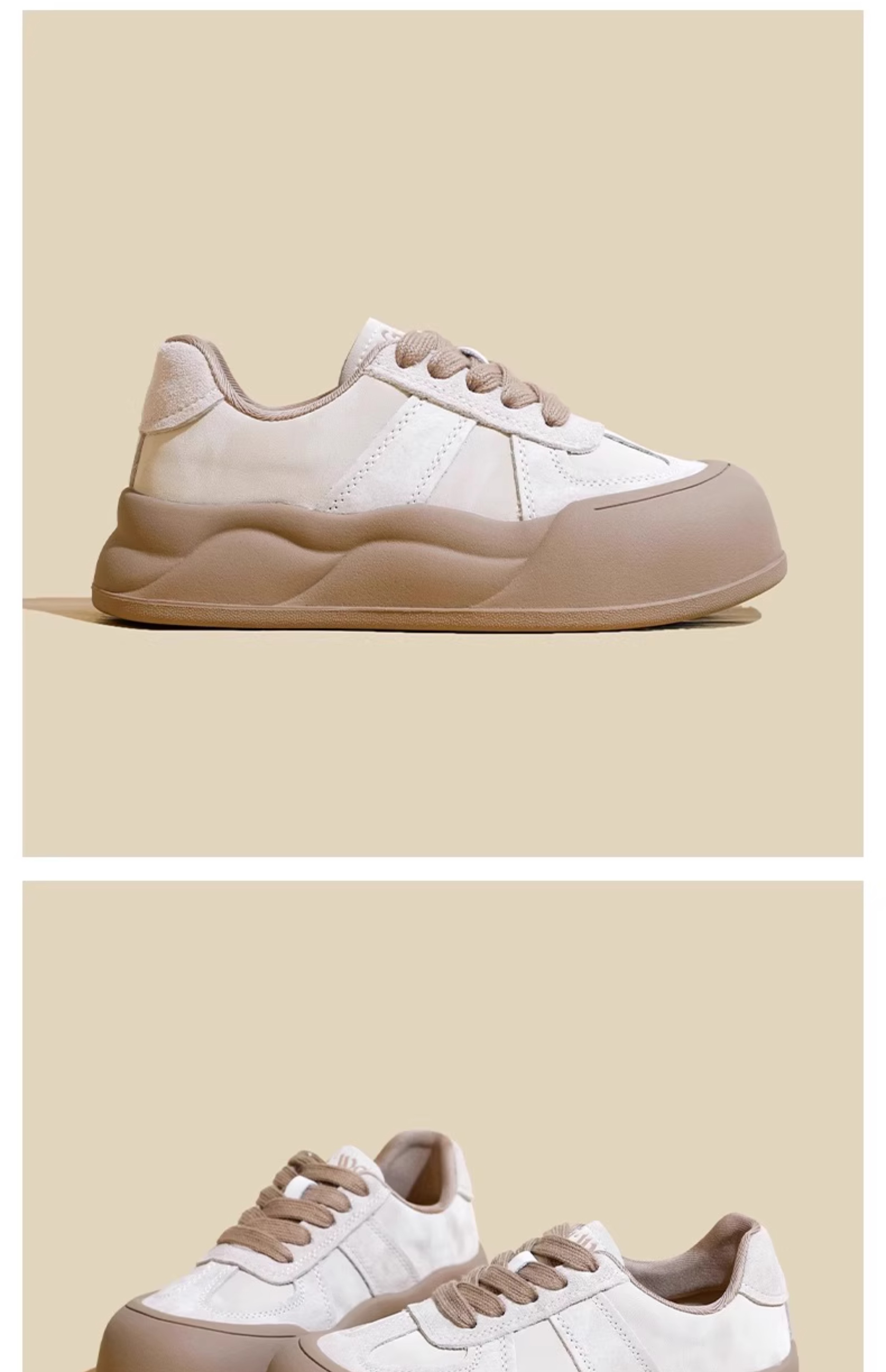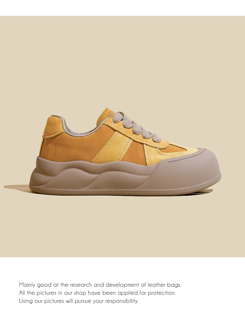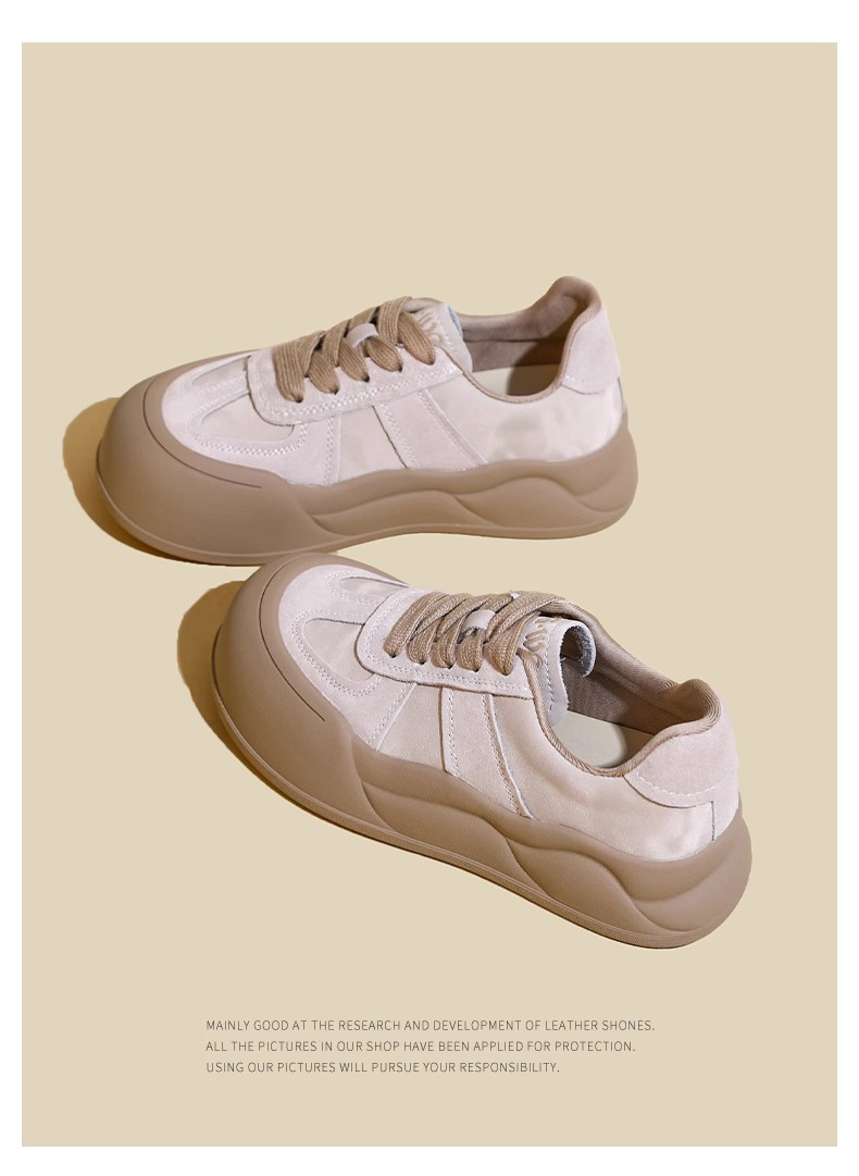Hong Kong Big Toe Bread Shoes Women's 2025 Spring and Autumn Easiest for Match Genuine Leather Platform Thick-Soled White Shoes Increased Casual Sneakers