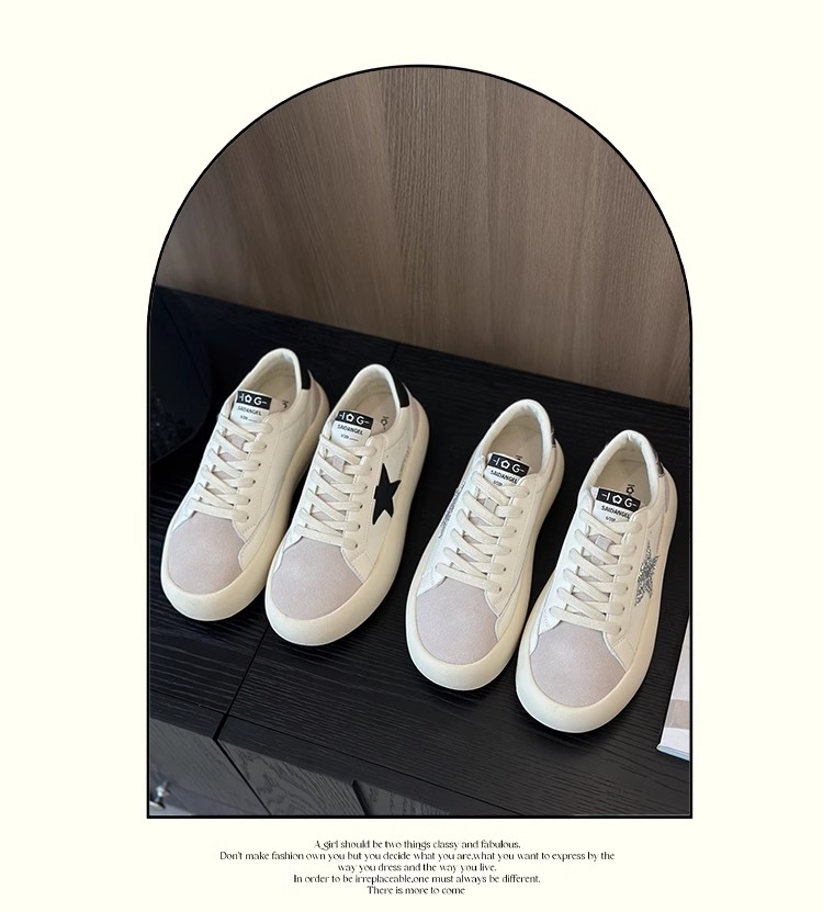 Hong Kong Thick-Soled Genuine Leather Star Shoes for Women 2025 New Versatile Height-Increasing Lace-Up Casual Sports Sneakers White Shoes