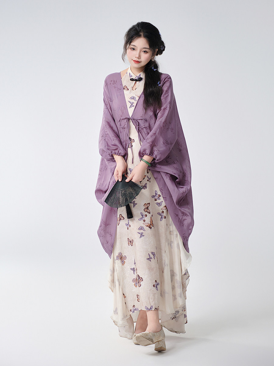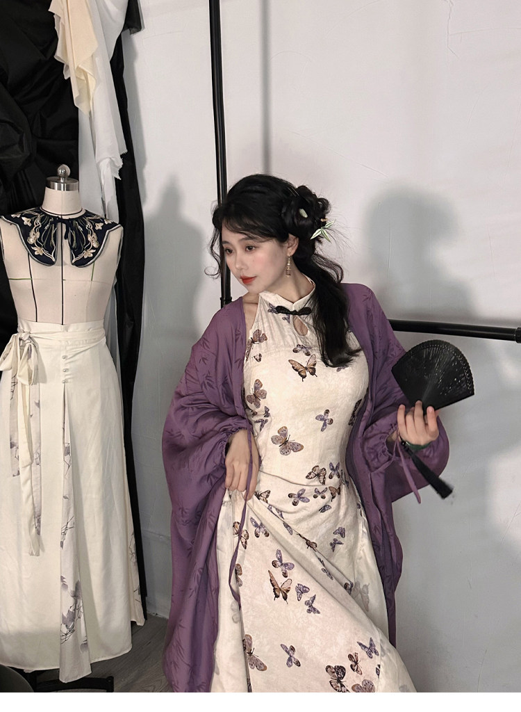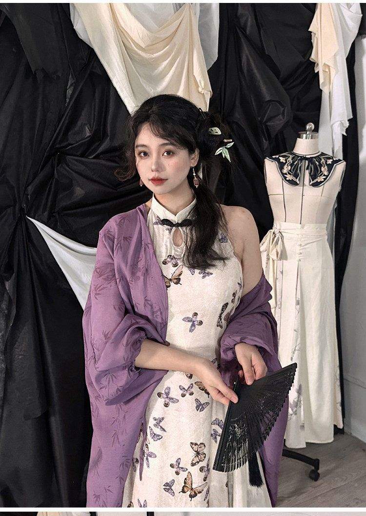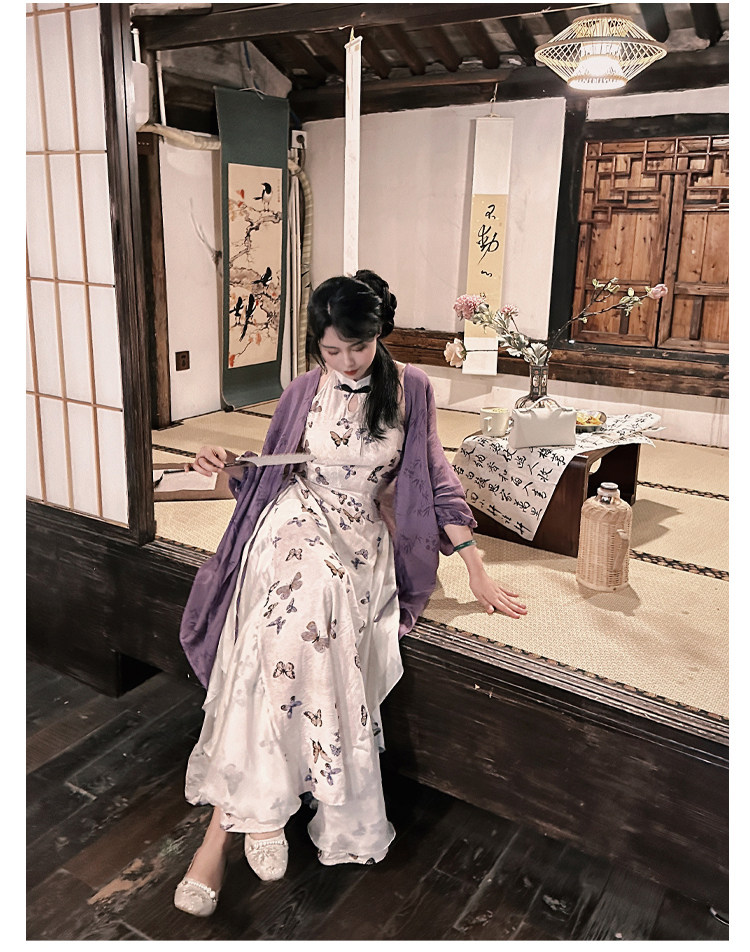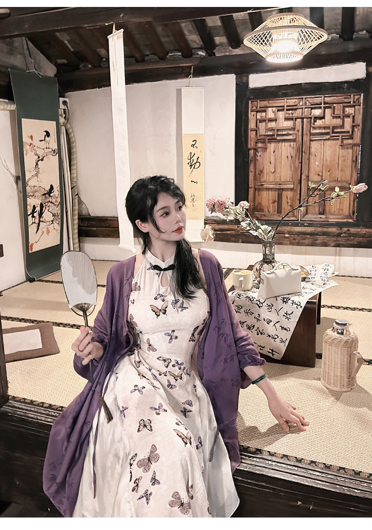 Yubai New Chinese Style Dream Butterfly National Style Improved Version Butterfly Fairy Waist-Cinching Cheongsam Purple Strap Dress for Women Spring/Summer