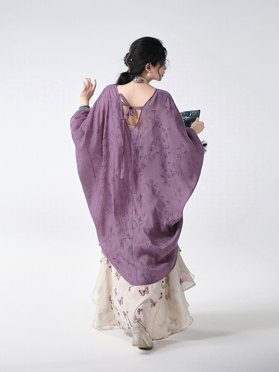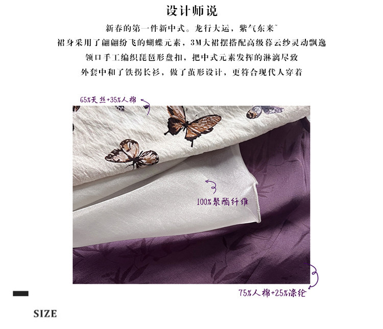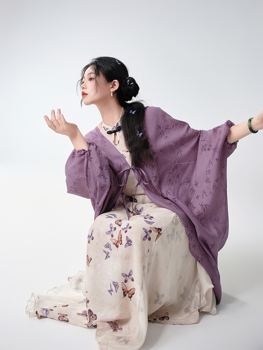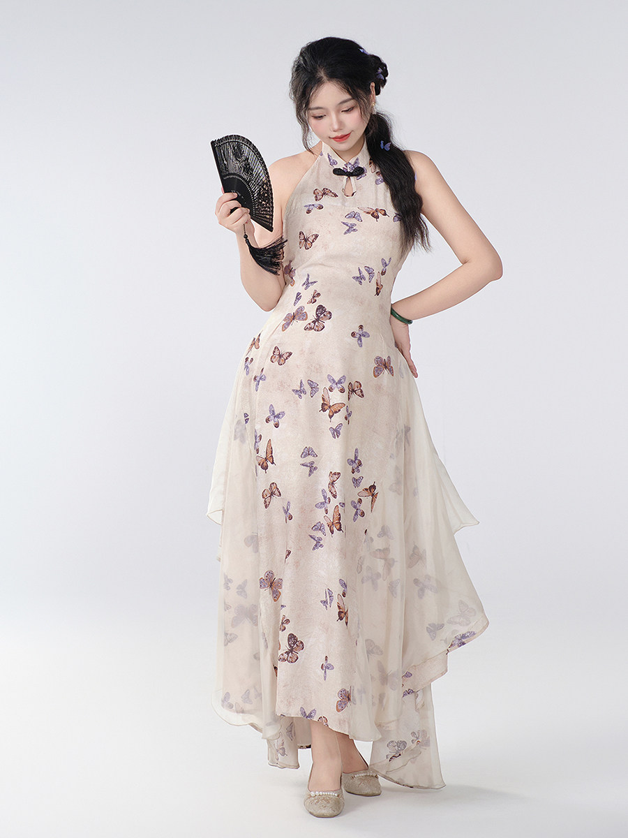 Yubai New Chinese Style Dream Butterfly National Style Improved Version Butterfly Fairy Waist-Cinching Cheongsam Purple Strap Dress for Women Spring/Summer