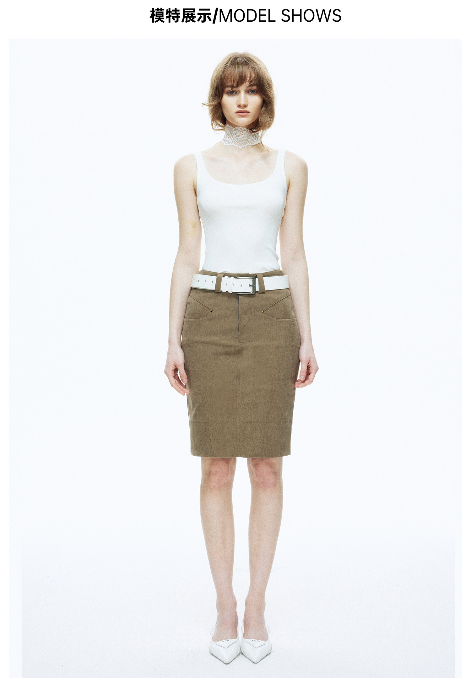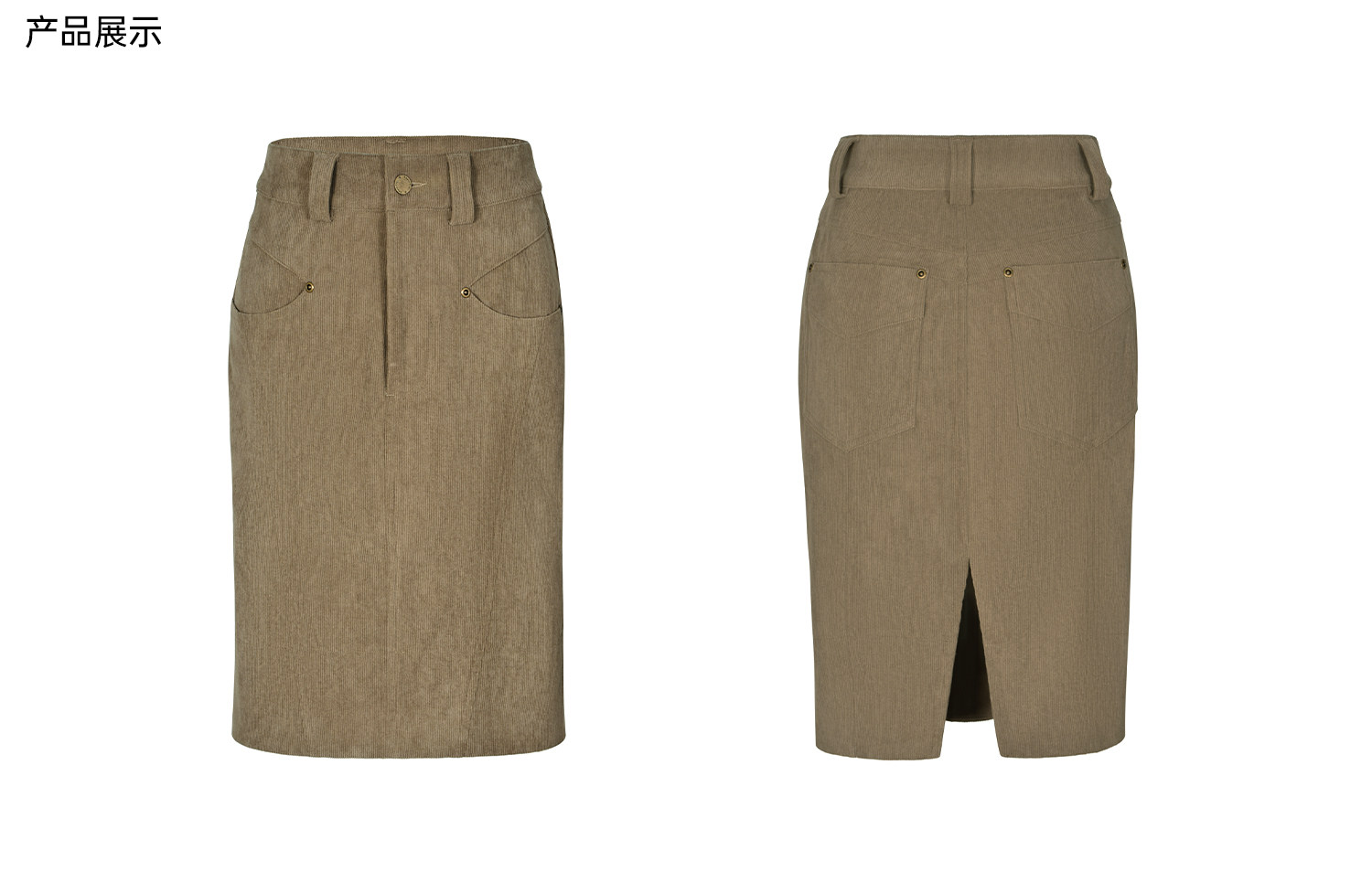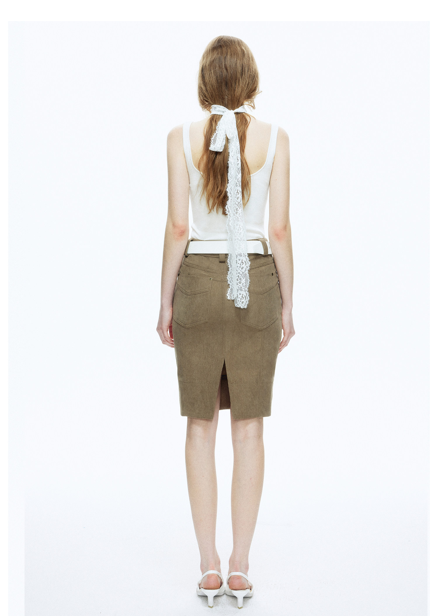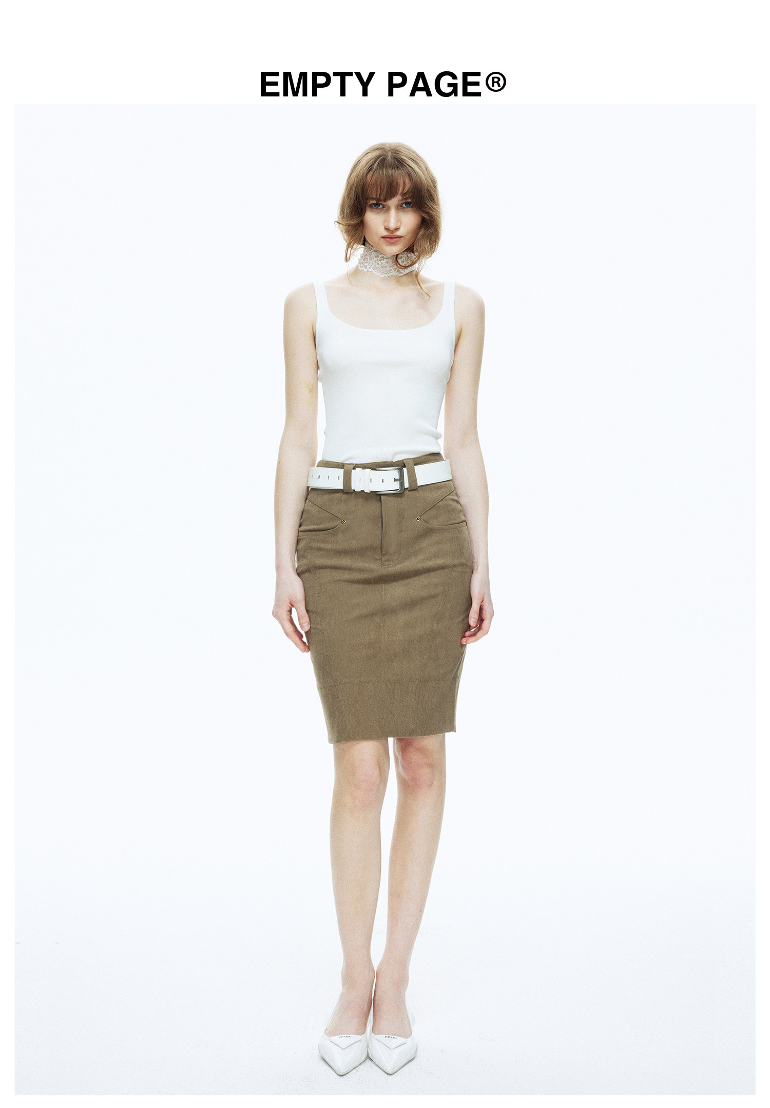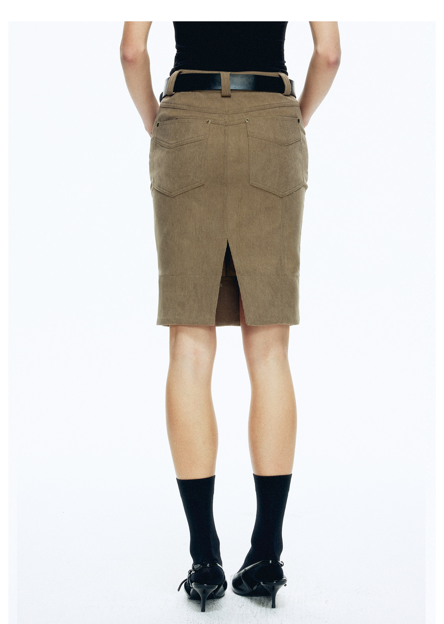 Empty Page Khaki Corduroy Skirt Metal Rivet Pencil Skirt