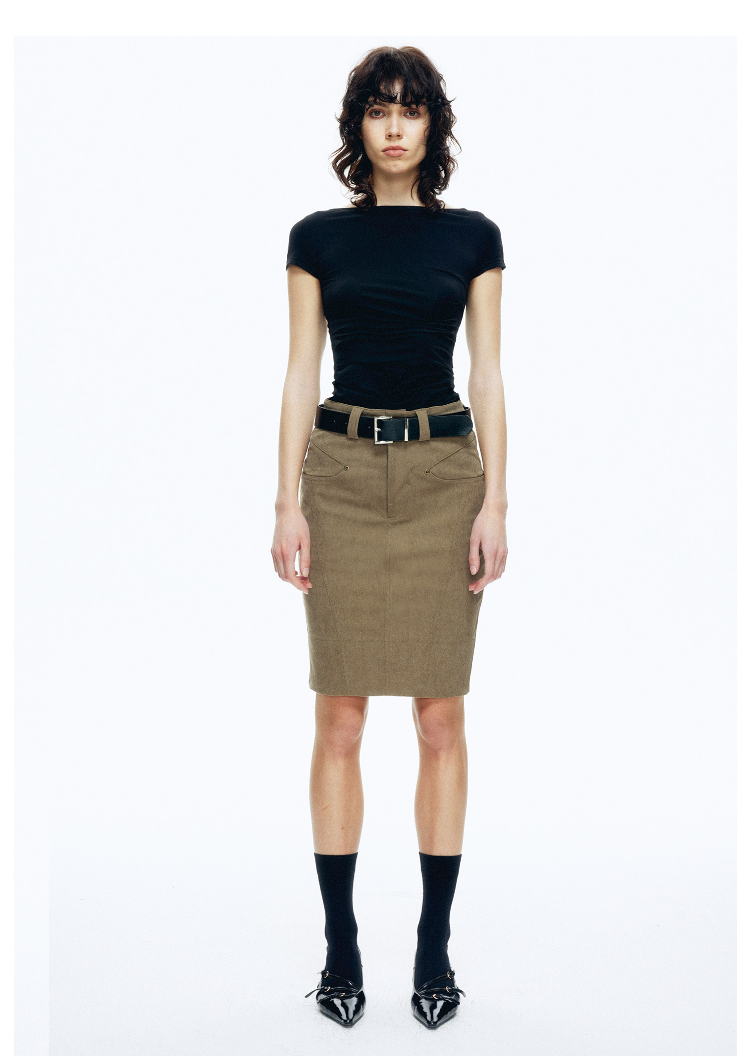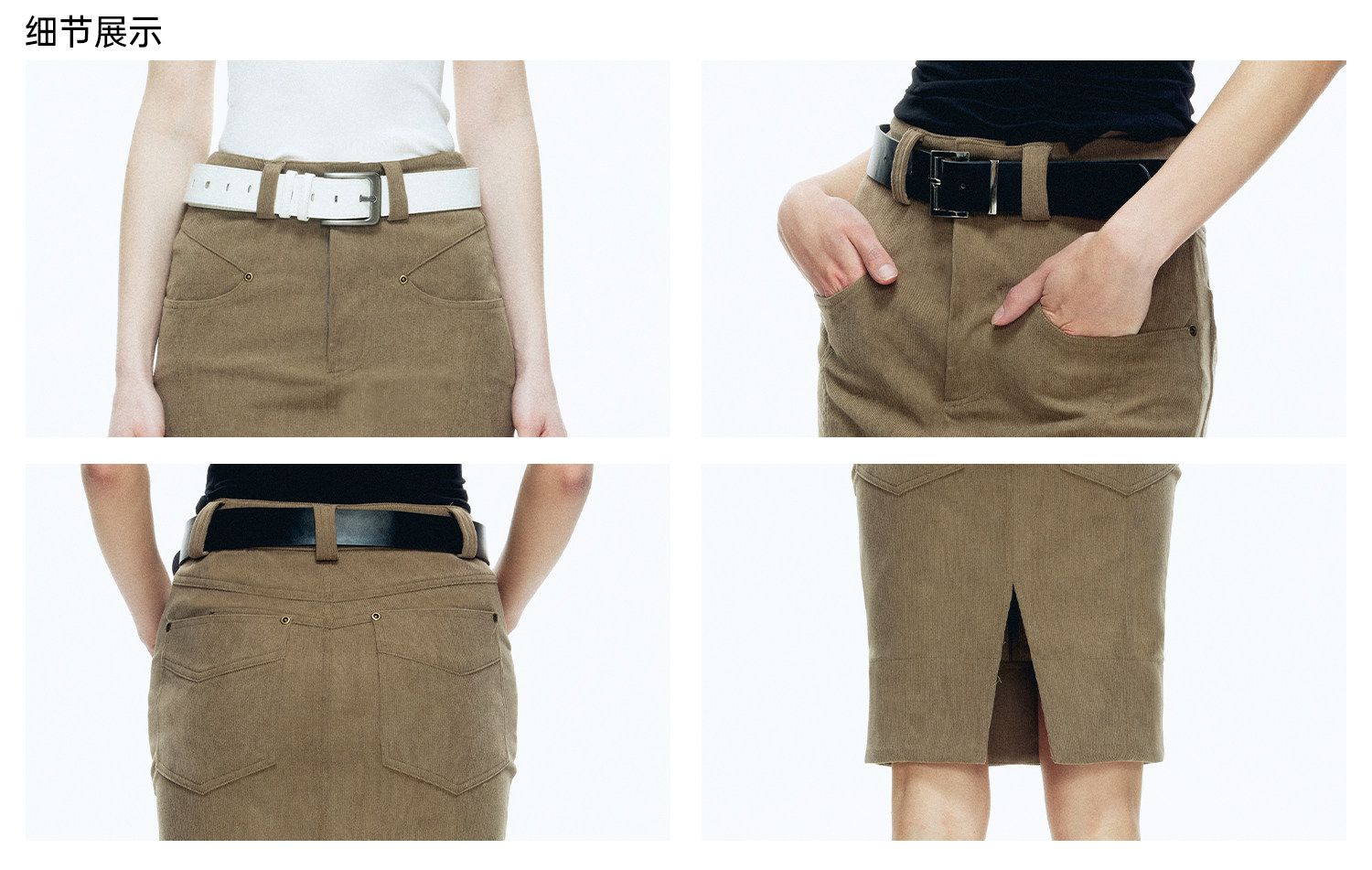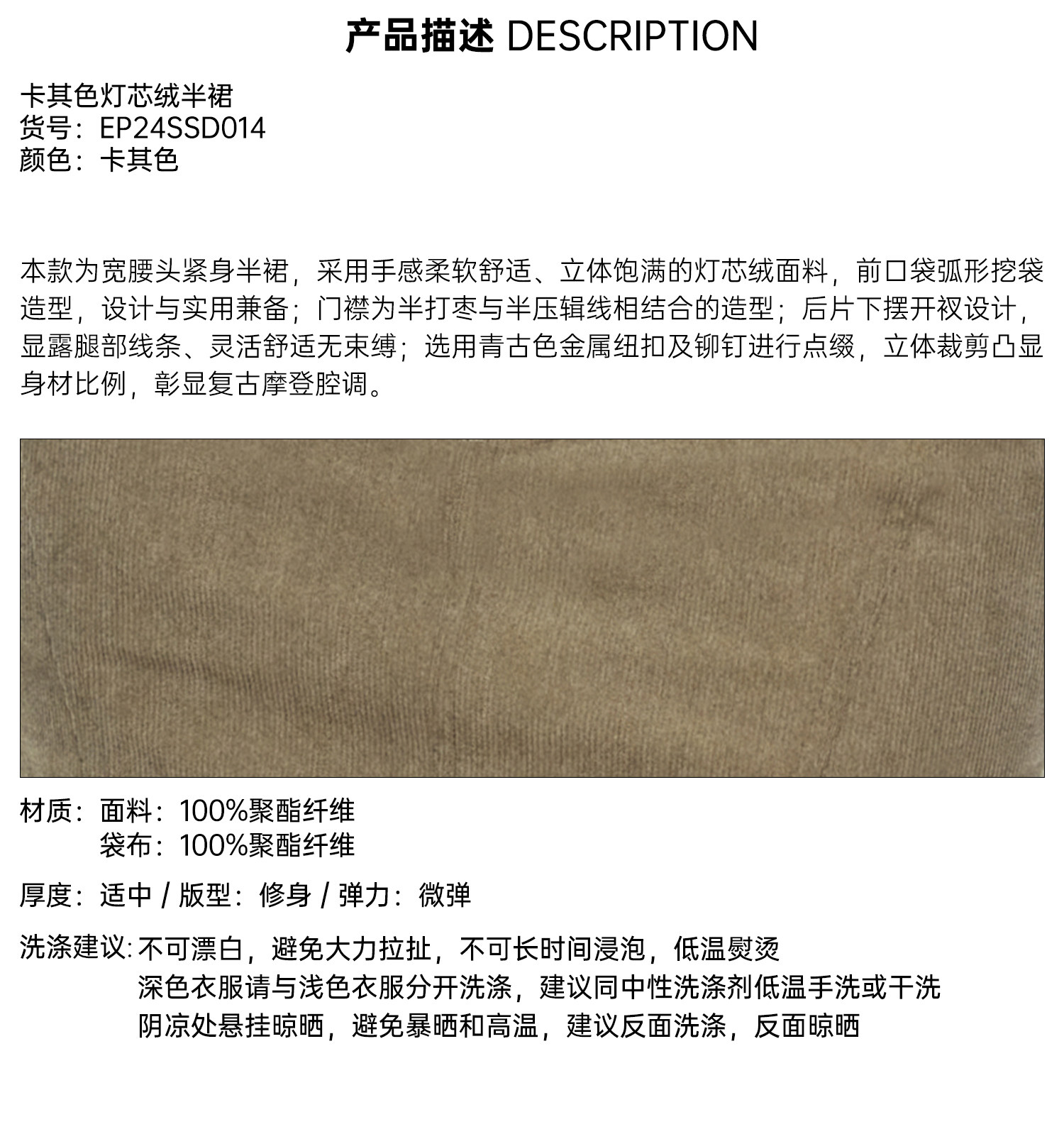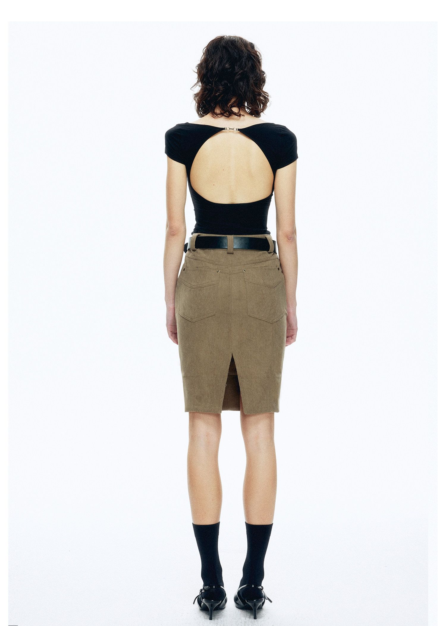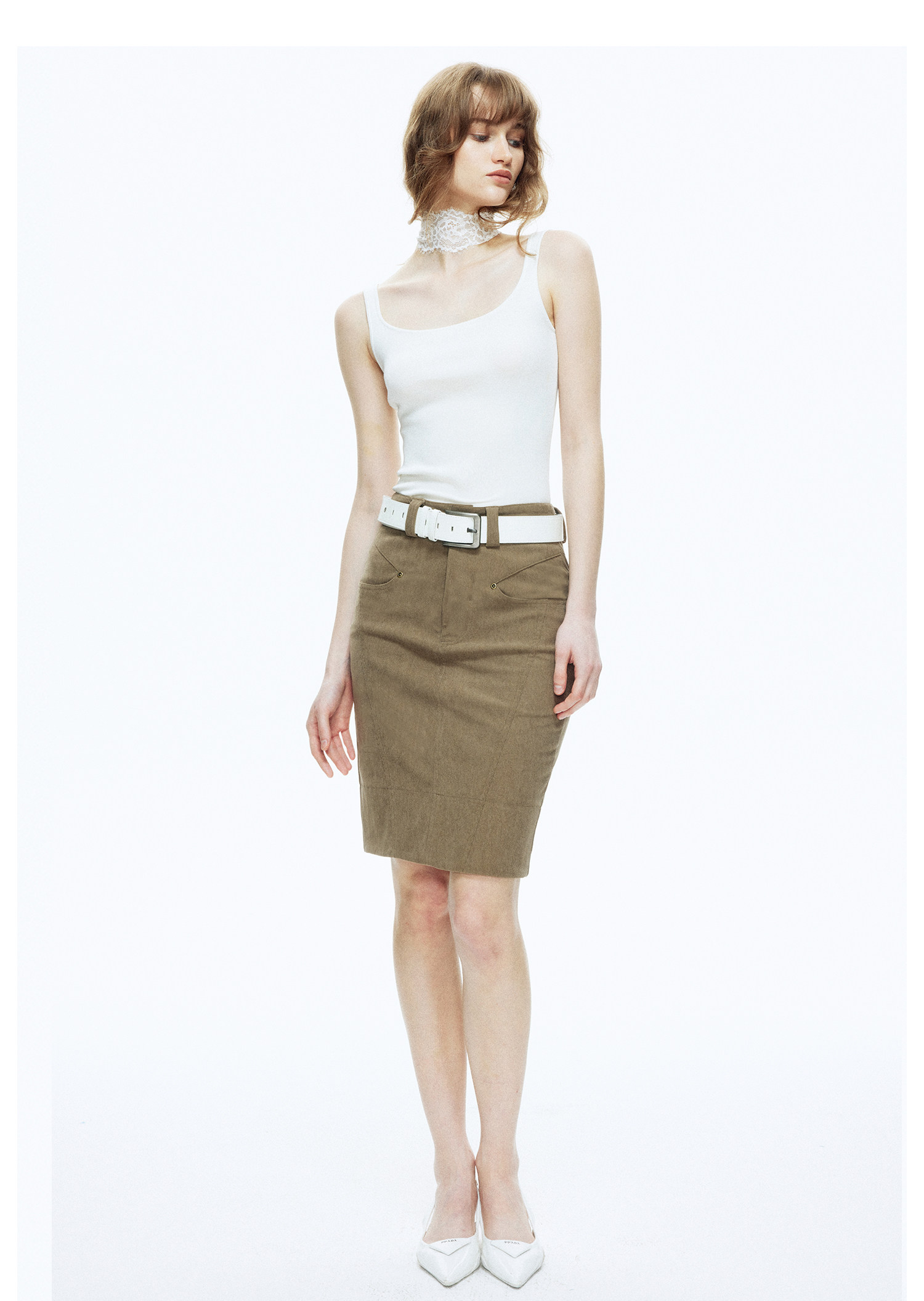Empty Page Khaki Corduroy Skirt Metal Rivet Pencil Skirt