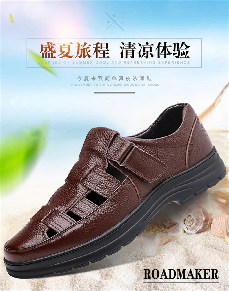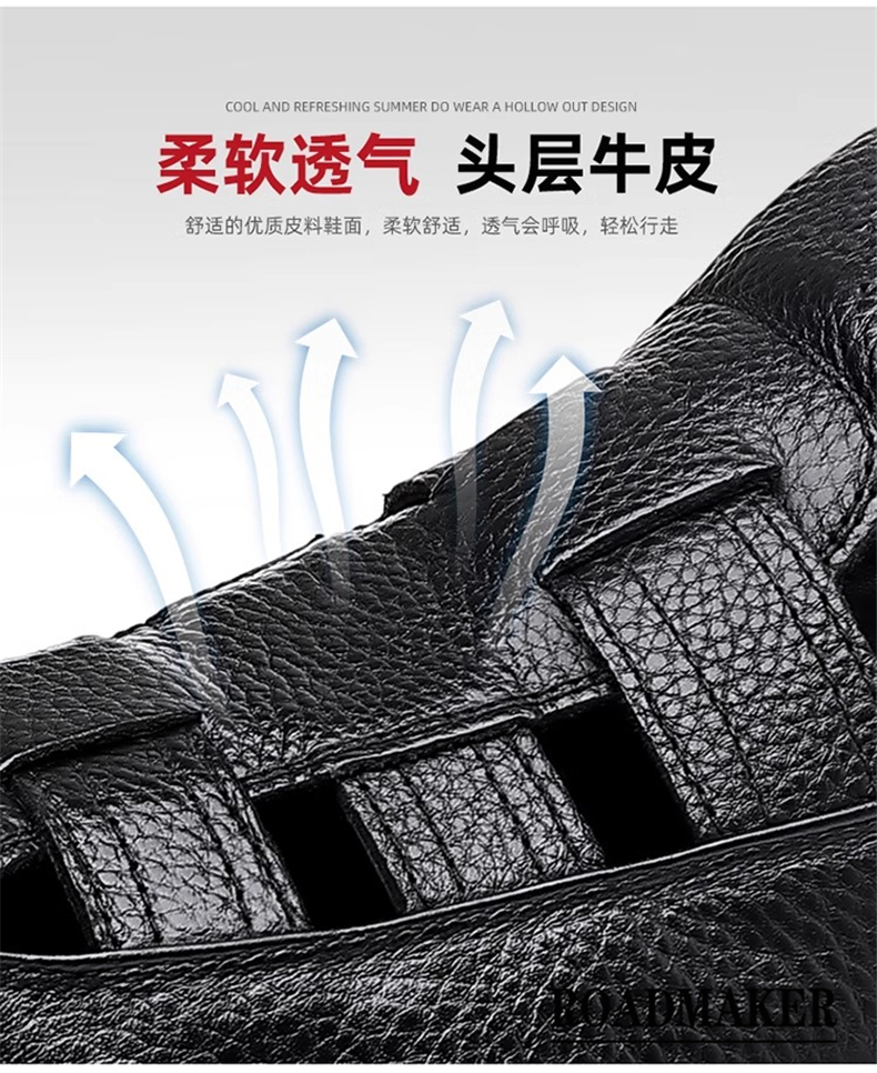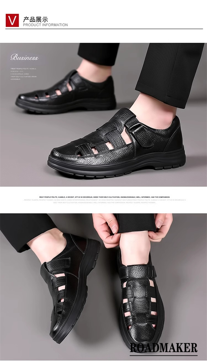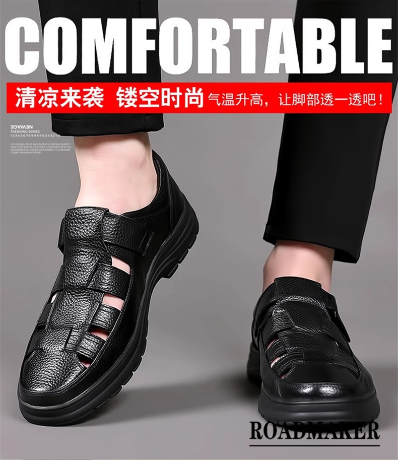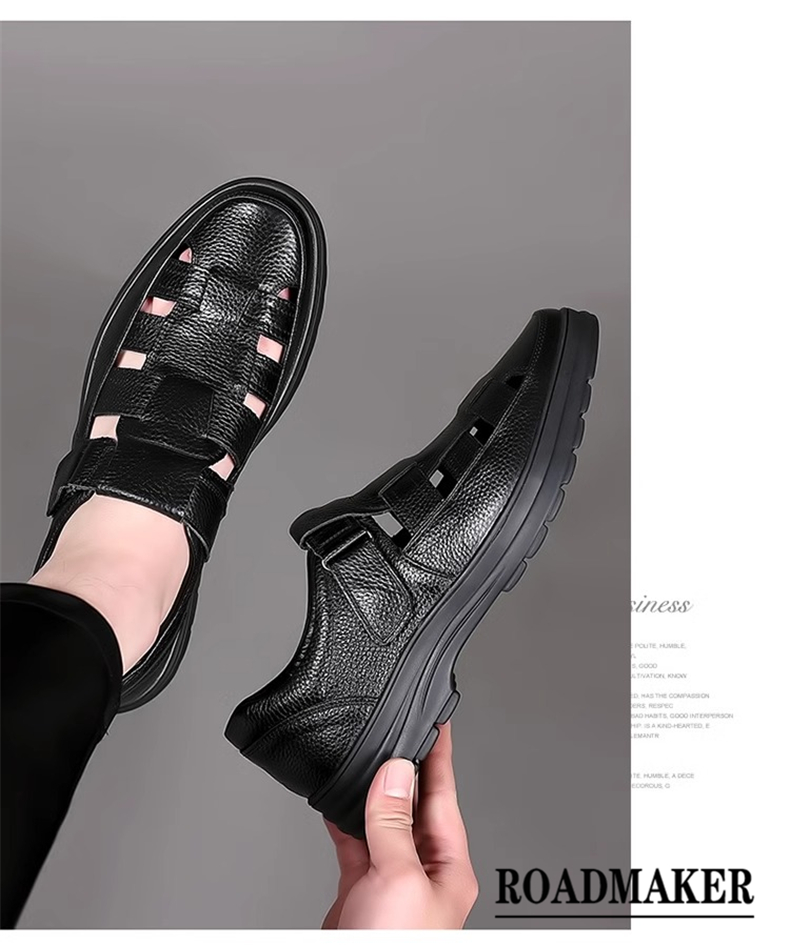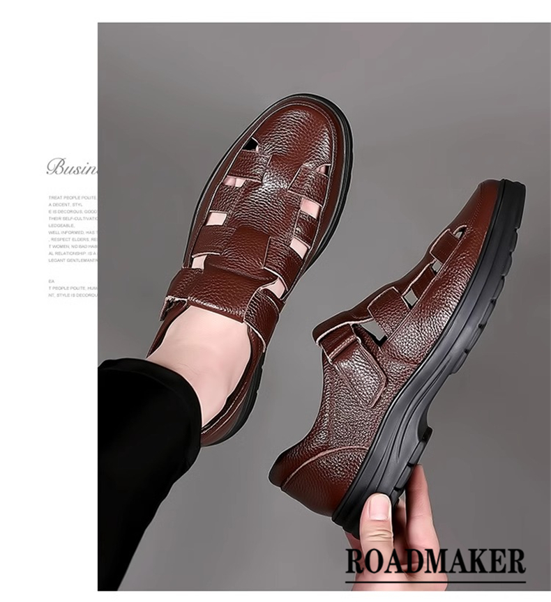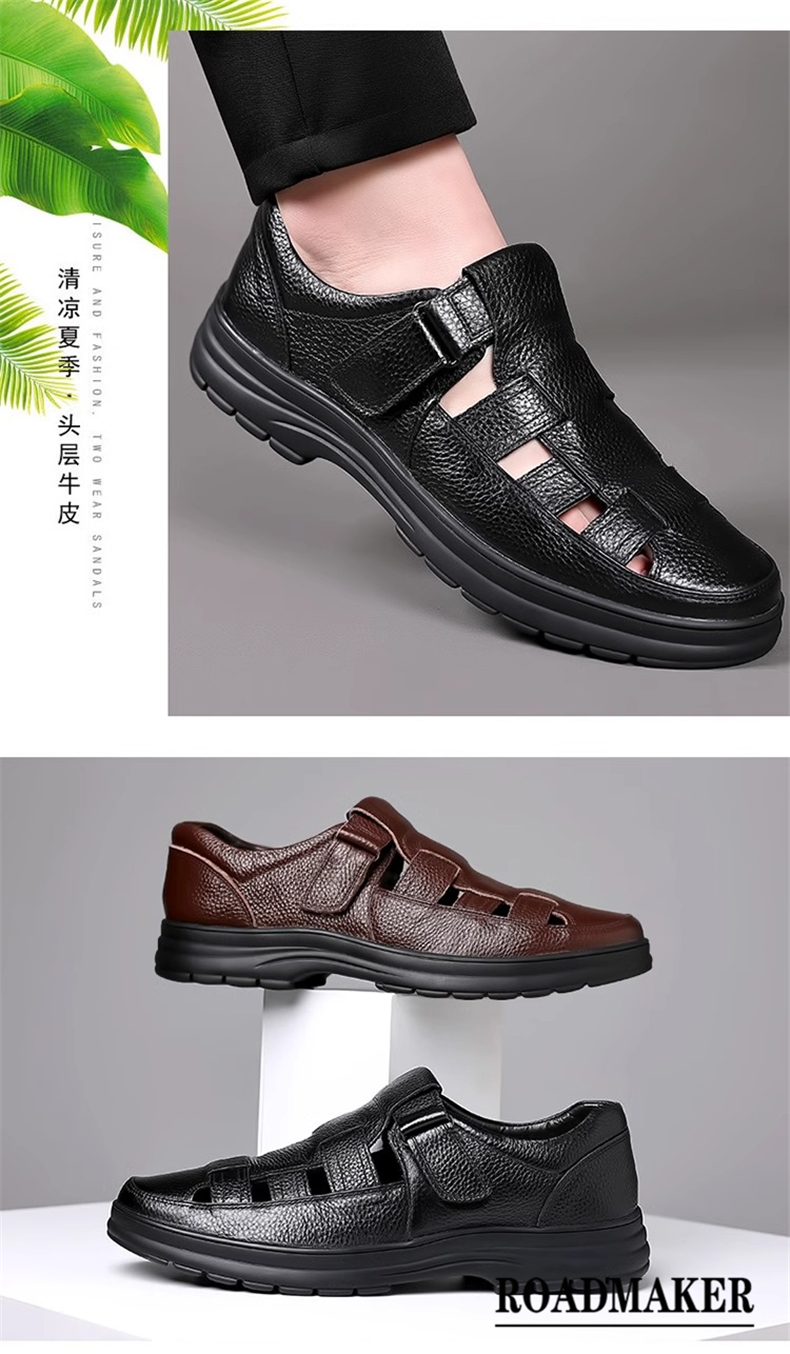 Rodmeike Sandals Men's Genuine Leather Breathable Sports and Casual Hollow Crocs Summer Non-Slip Soft Soled Beach Shoes