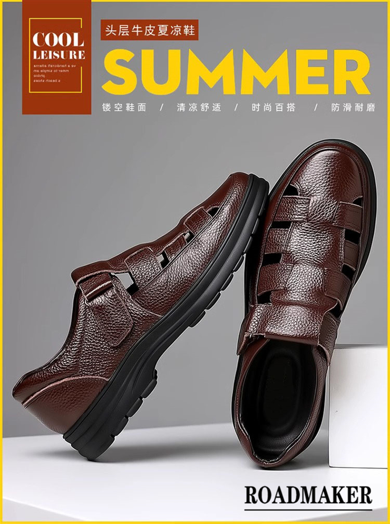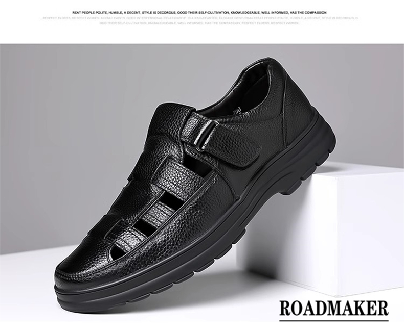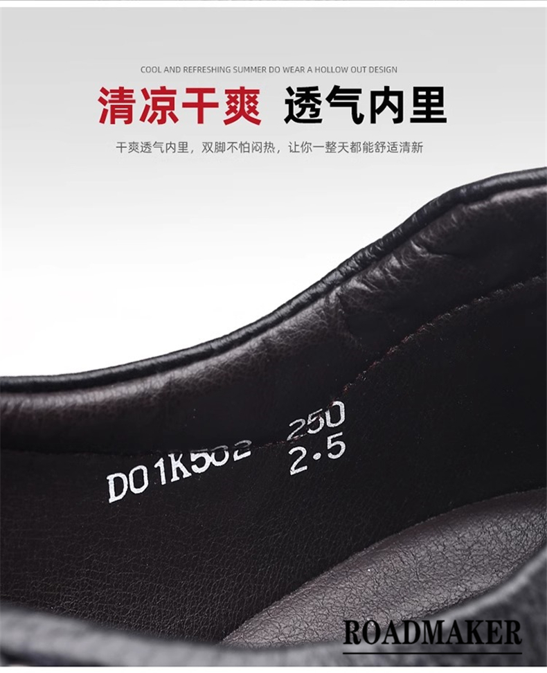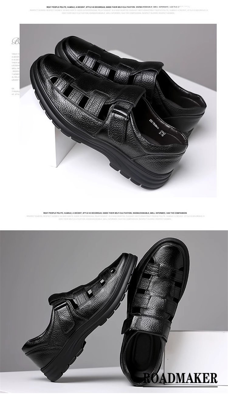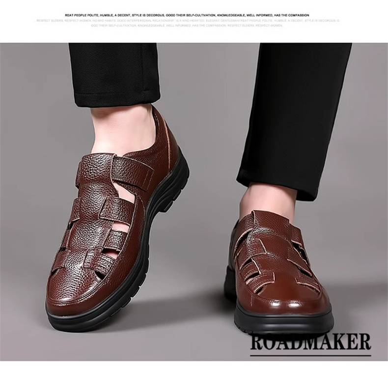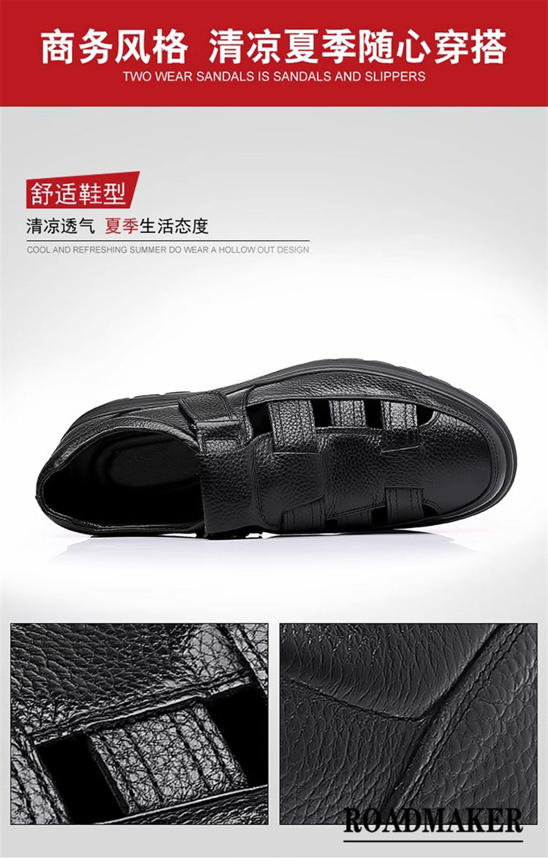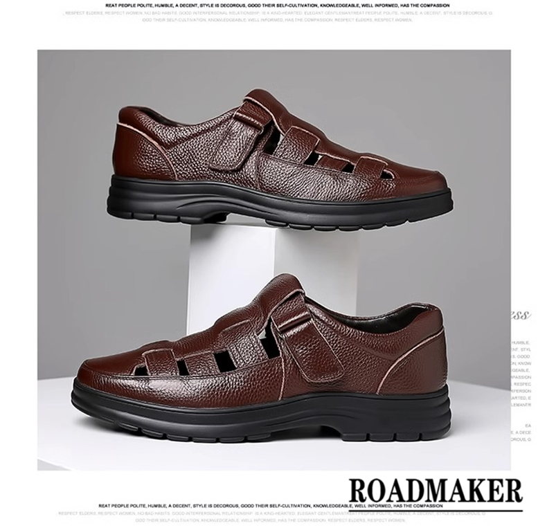 Rodmeike Sandals Men's Genuine Leather Breathable Sports and Casual Hollow Crocs Summer Non-Slip Soft Soled Beach Shoes