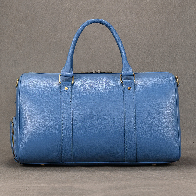 Genuine Leather Travel Bag Red Blue Women's Cowhide Gym Bag Men's Large Capacity Lychee Pattern Luggage Bag with Shoe Compartment
