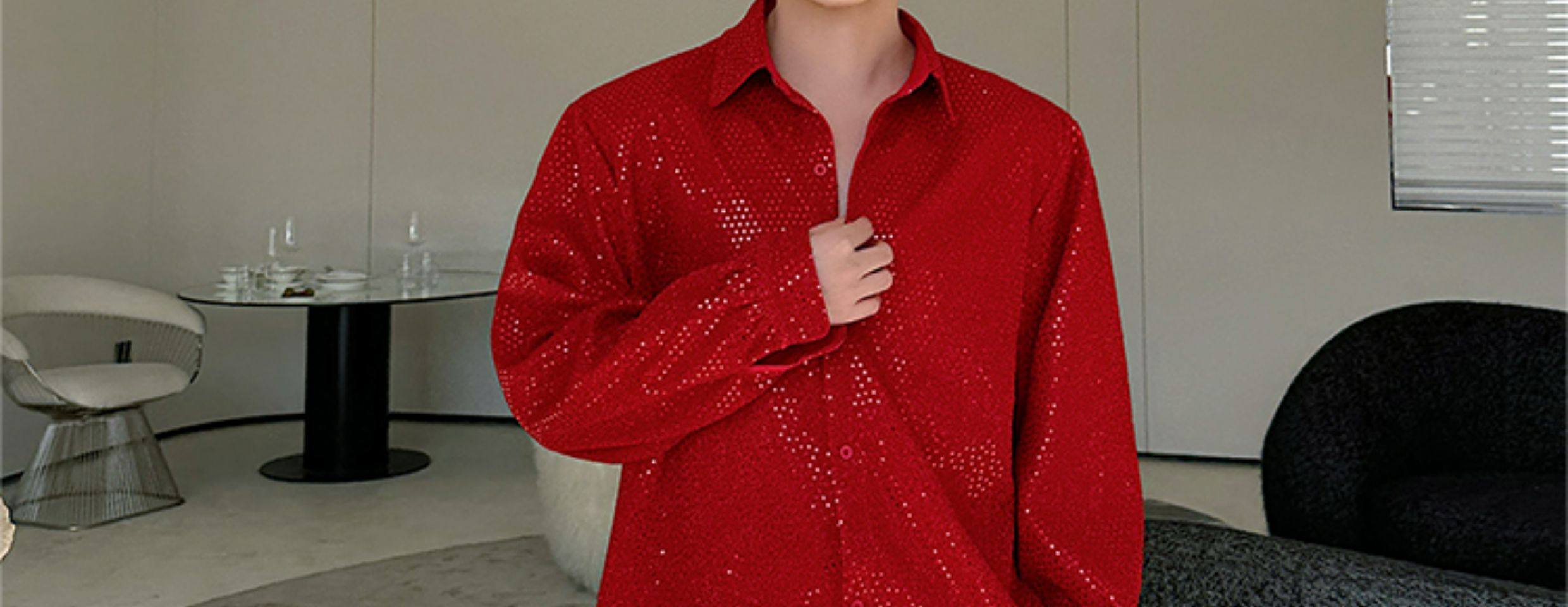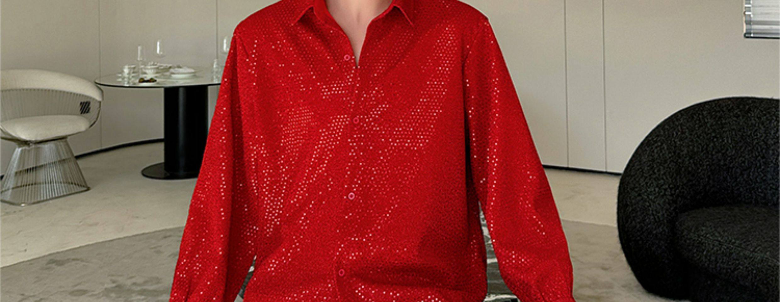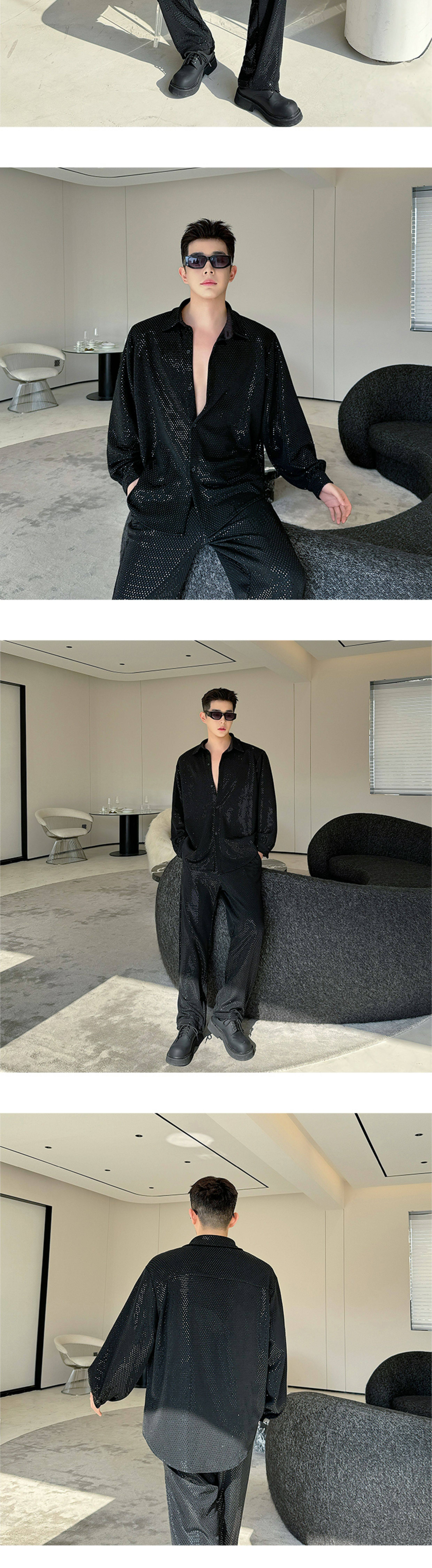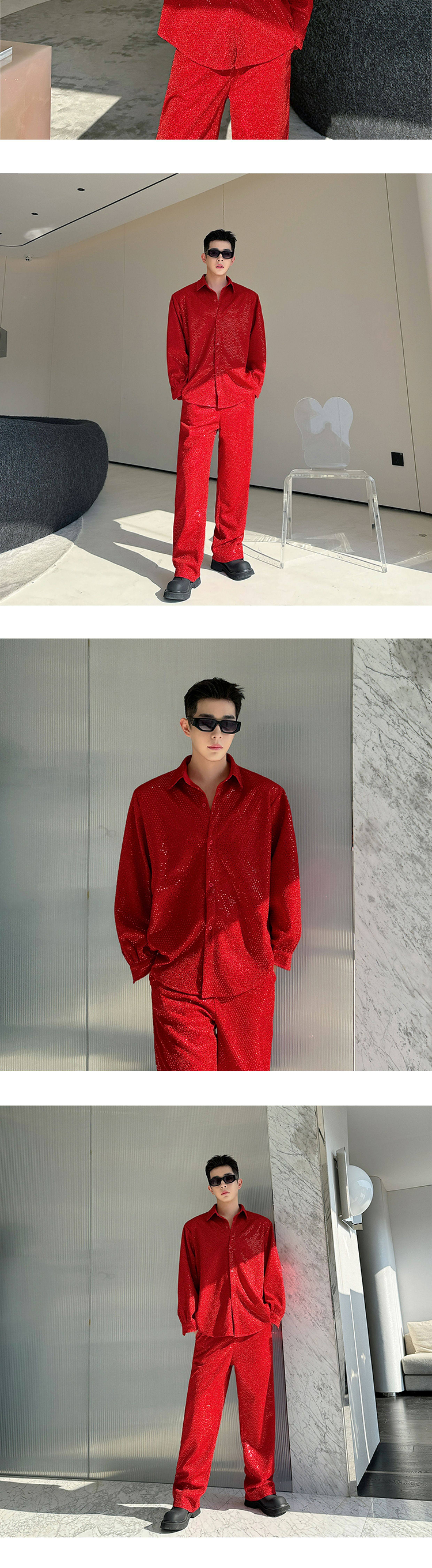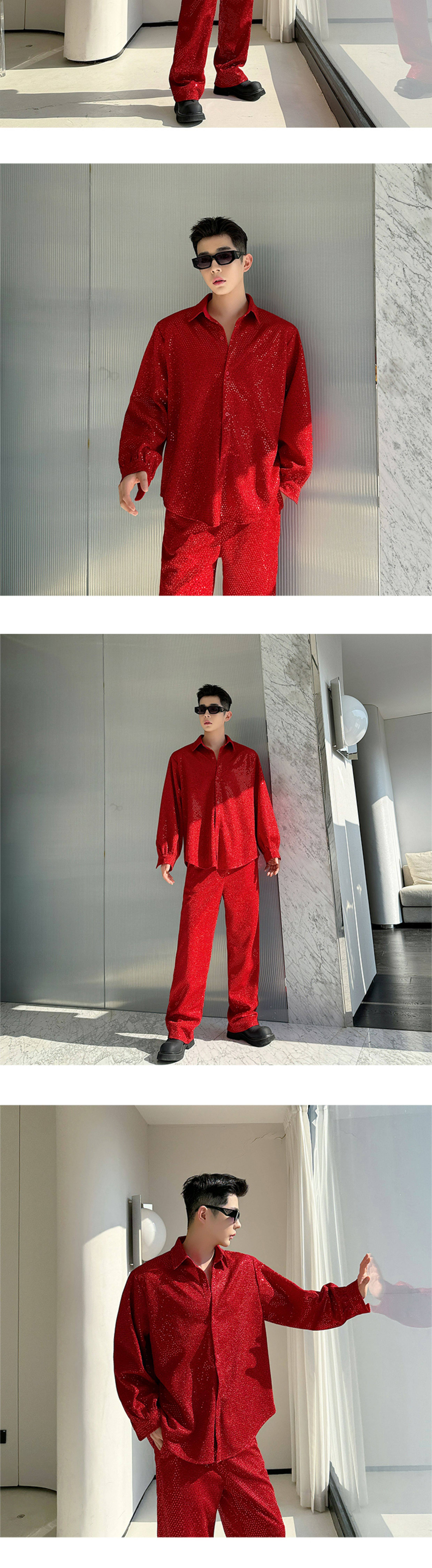 High-End Niche Sequin Shirt Set for Men, Stylish and Flashy, Street Fashion, Performance Casual Pants Two-Piece Set