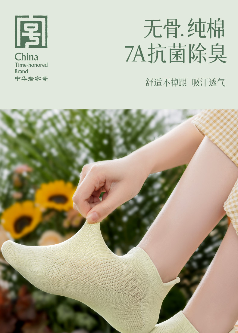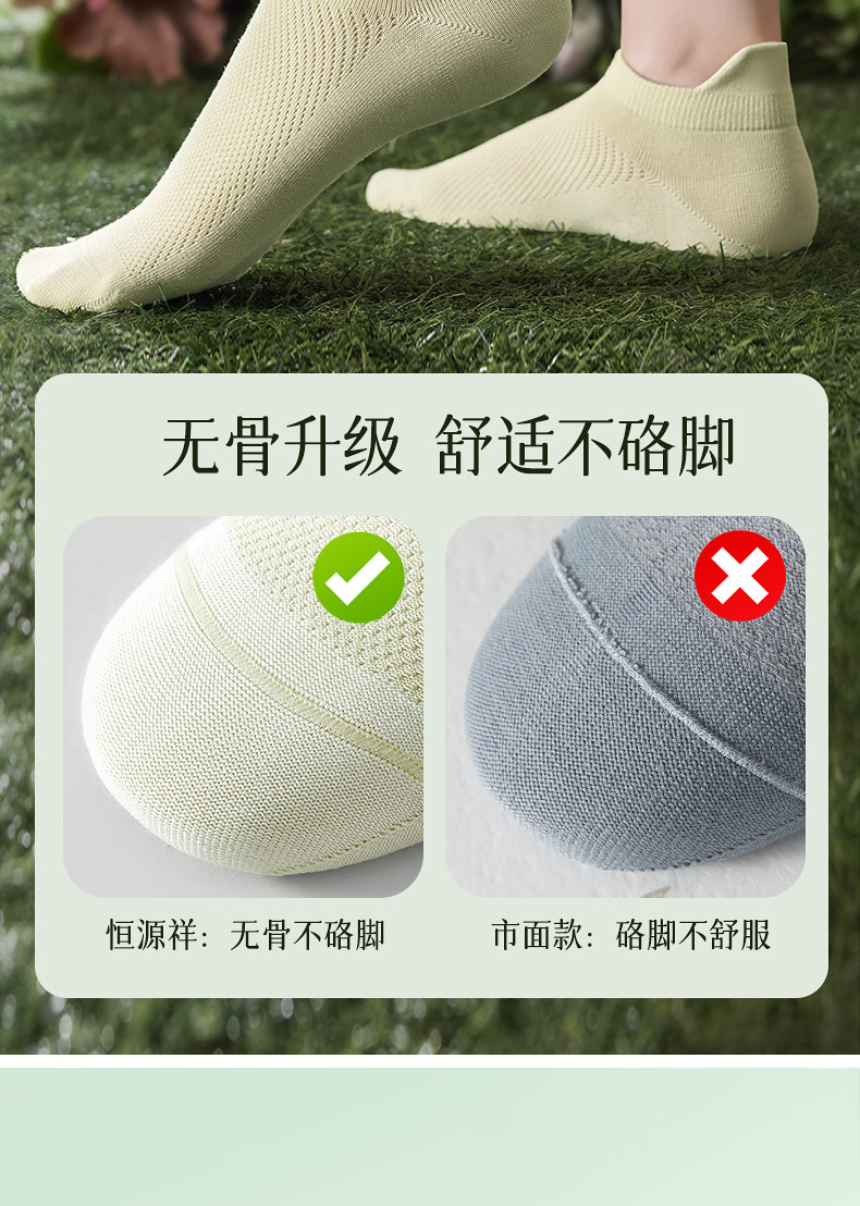 Hengyuanxiang Seamless Boat Socks for Women, Pure Cotton 7A Antibacterial, Summer Mesh Thin Breathable Anti-Odor Sweat-Absorbing Short Socks