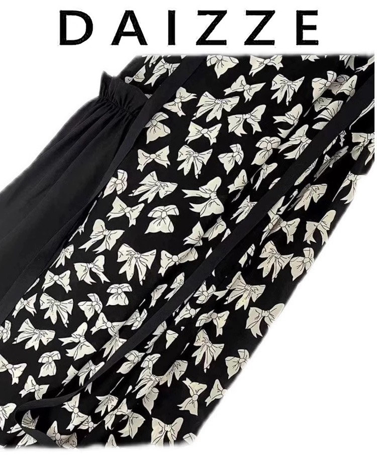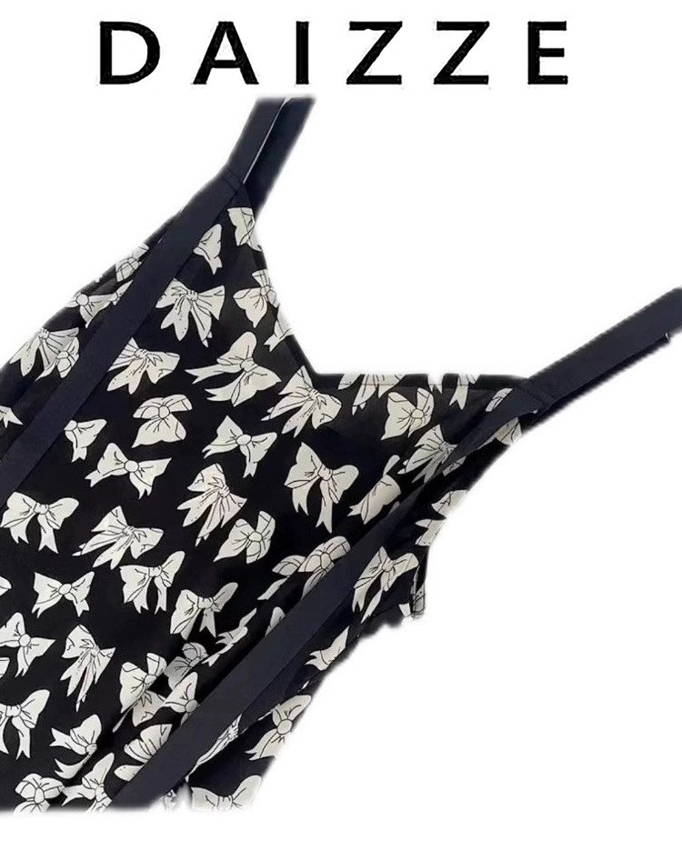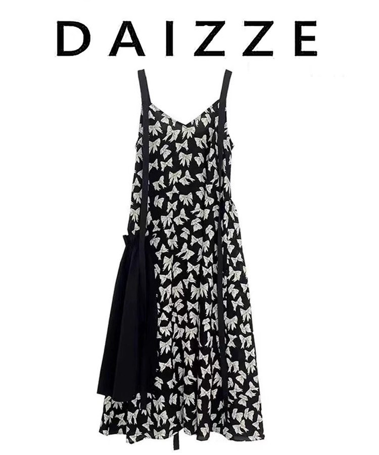 Daizze~2025 Spring/Summer New Elegant Age-Reducing Ribbon Patchwork Fashion Bow Print Strap Dress