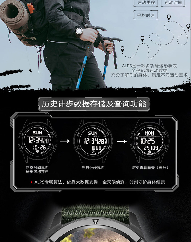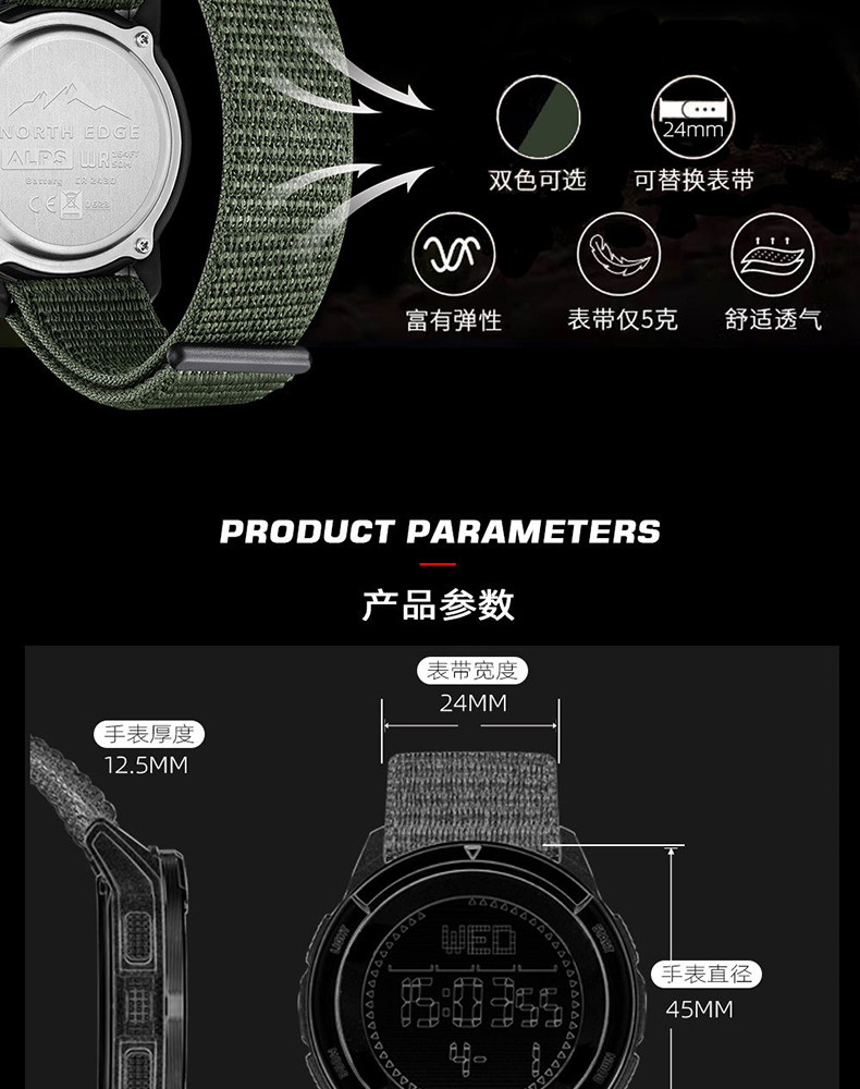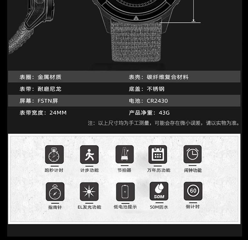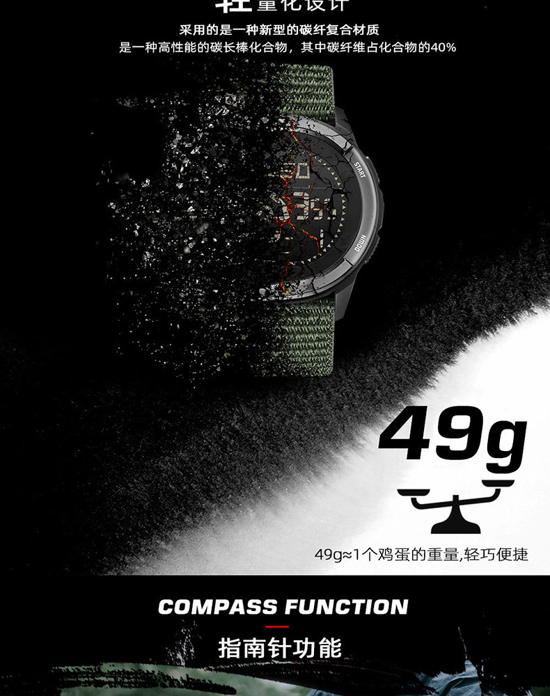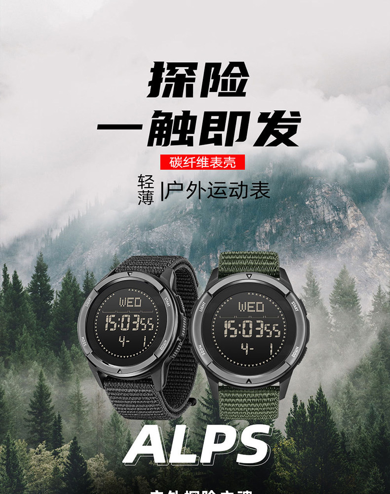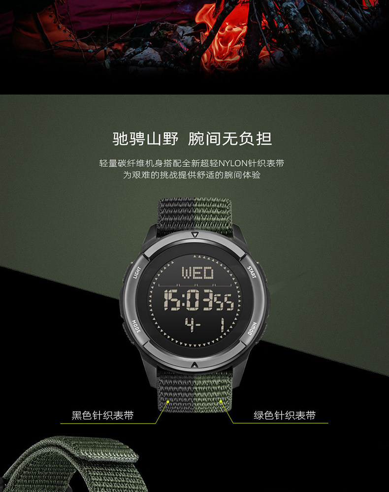 Carbon Fiber Professional Outdoor Digital Watch for Men, Mountaineering Compass, Specially Designed for High School Students to Join the Military