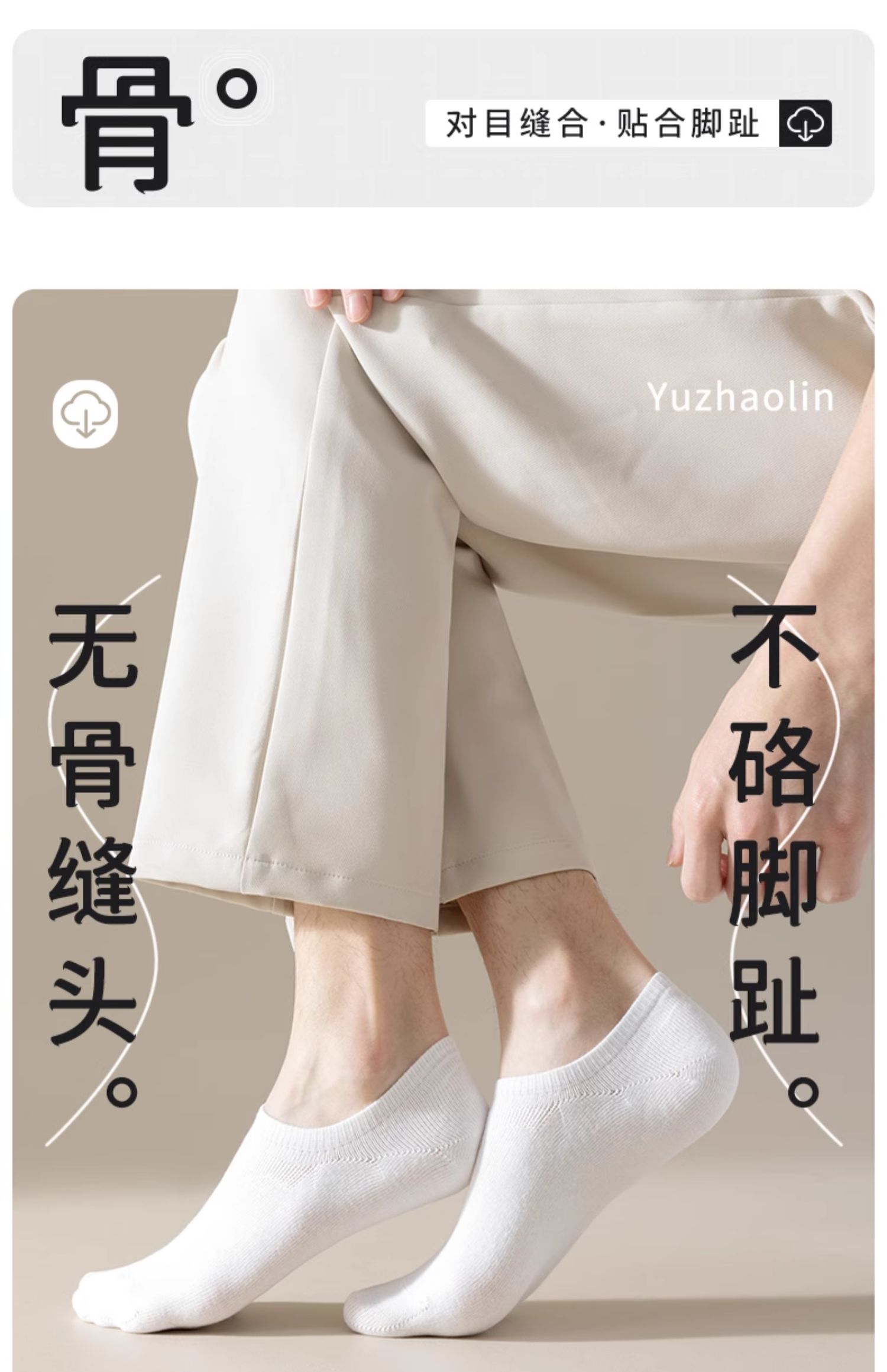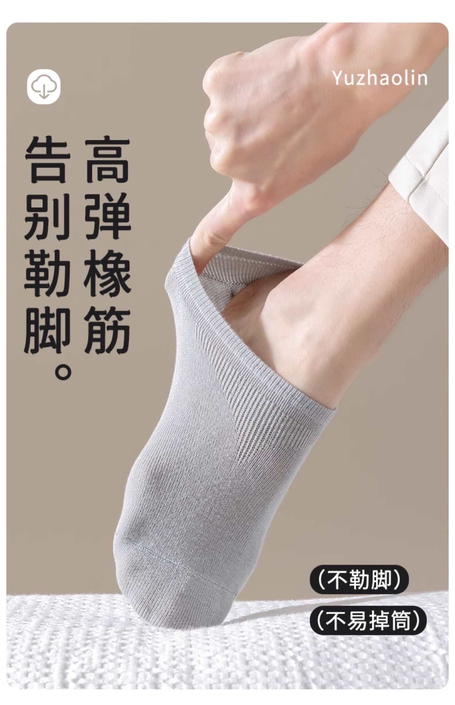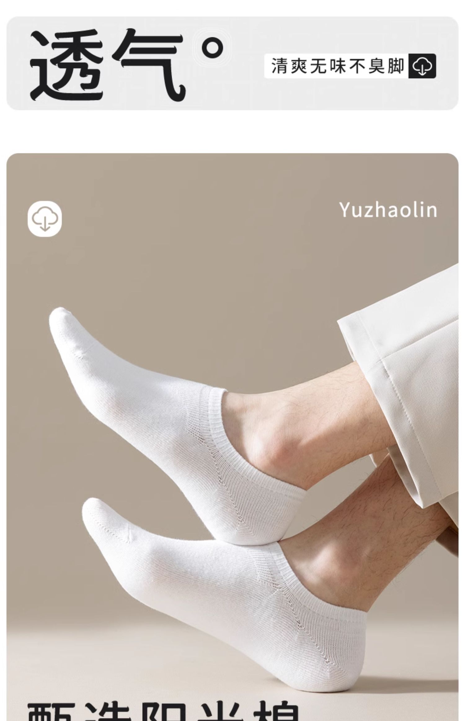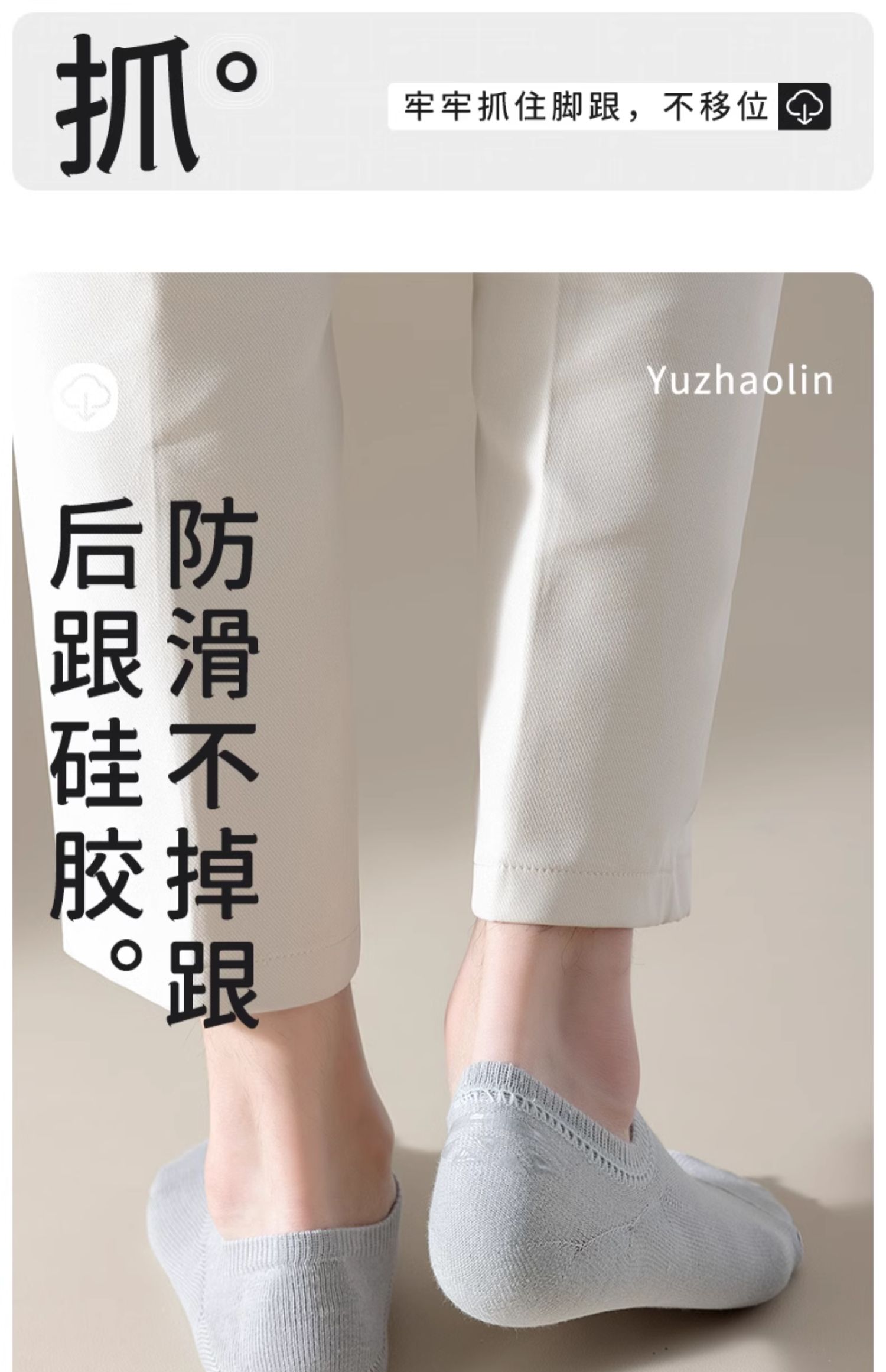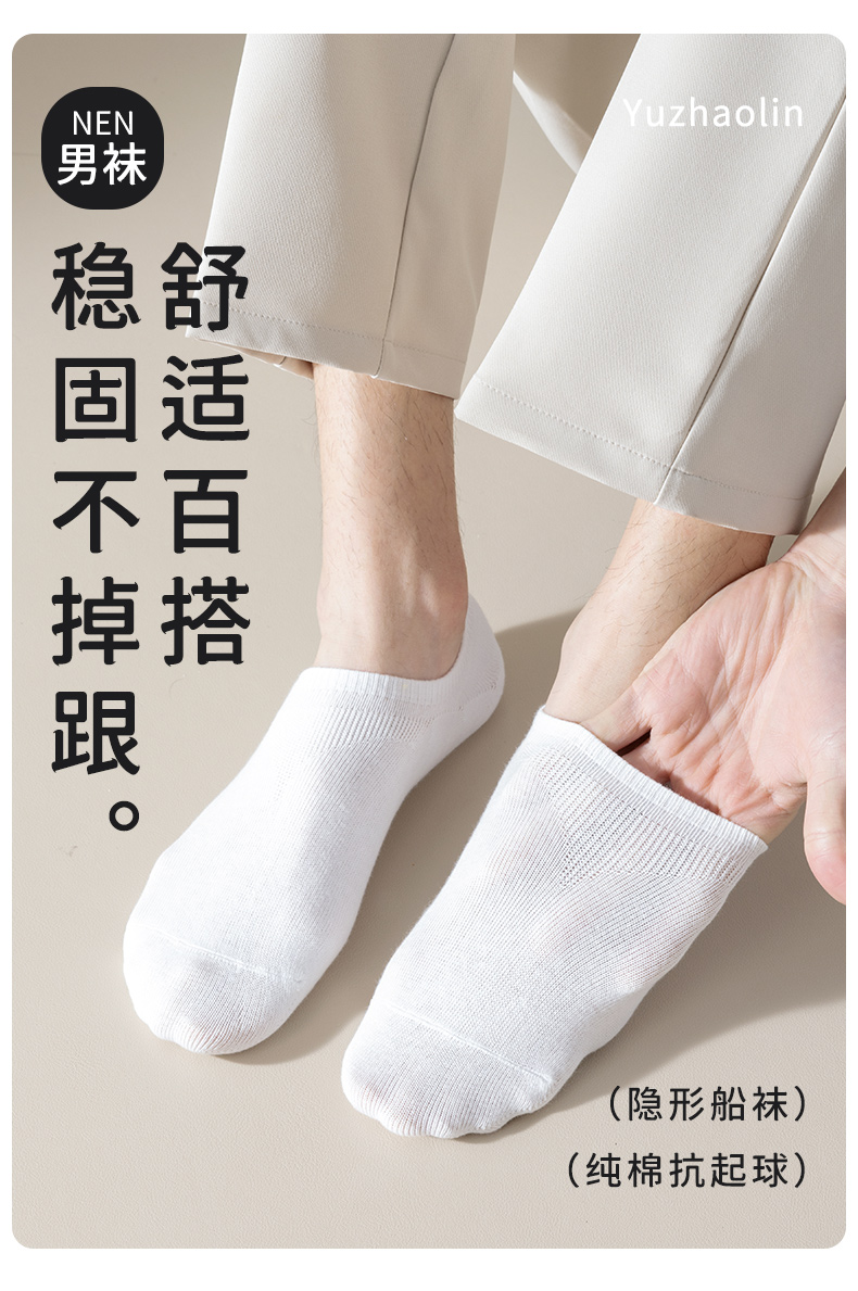 Men's No-Show Socks, Summer Thin Low-Cut Invisible Socks, Pure Cotton Non-Slip, No-Slip Heel, Odor-Resistant Short Socks for Men