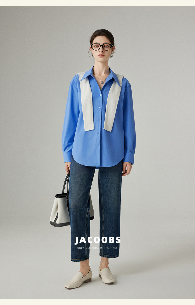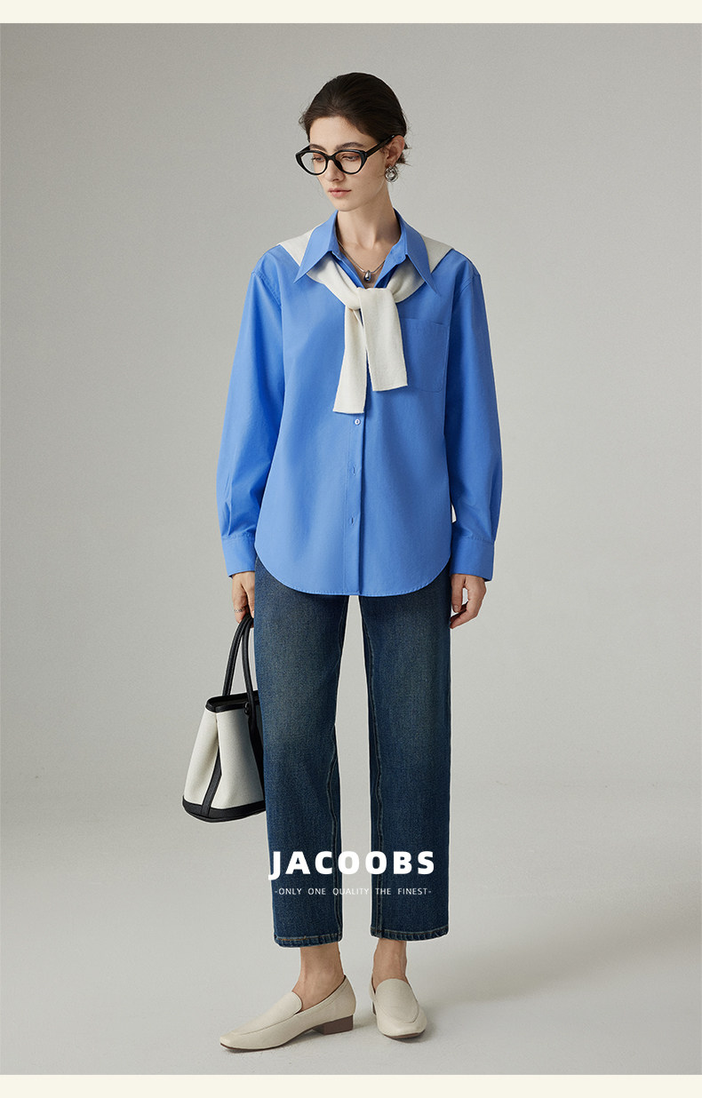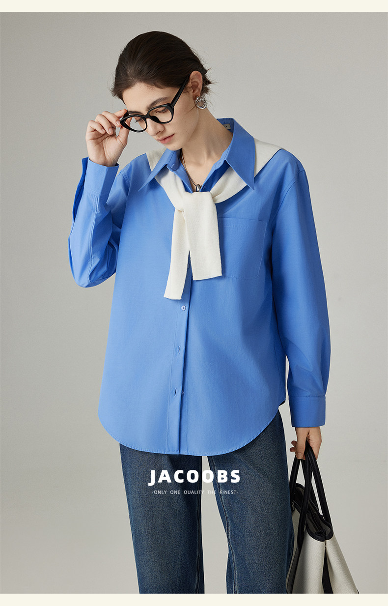 Yakejia's Shirts Can Be Worn in All Seasons! Klein Blue French-Style Airy Professional Commuting Slightly Loose Long-Sleeved Shirt