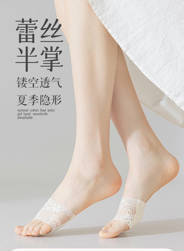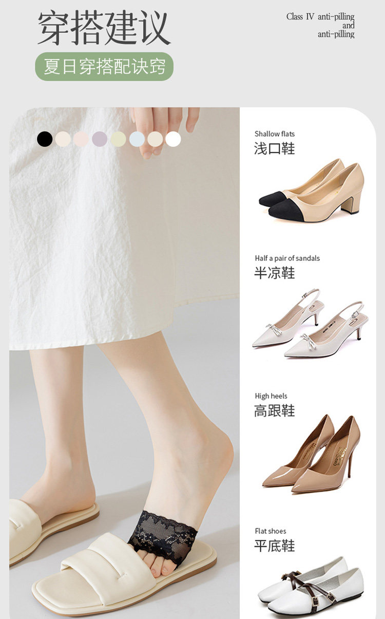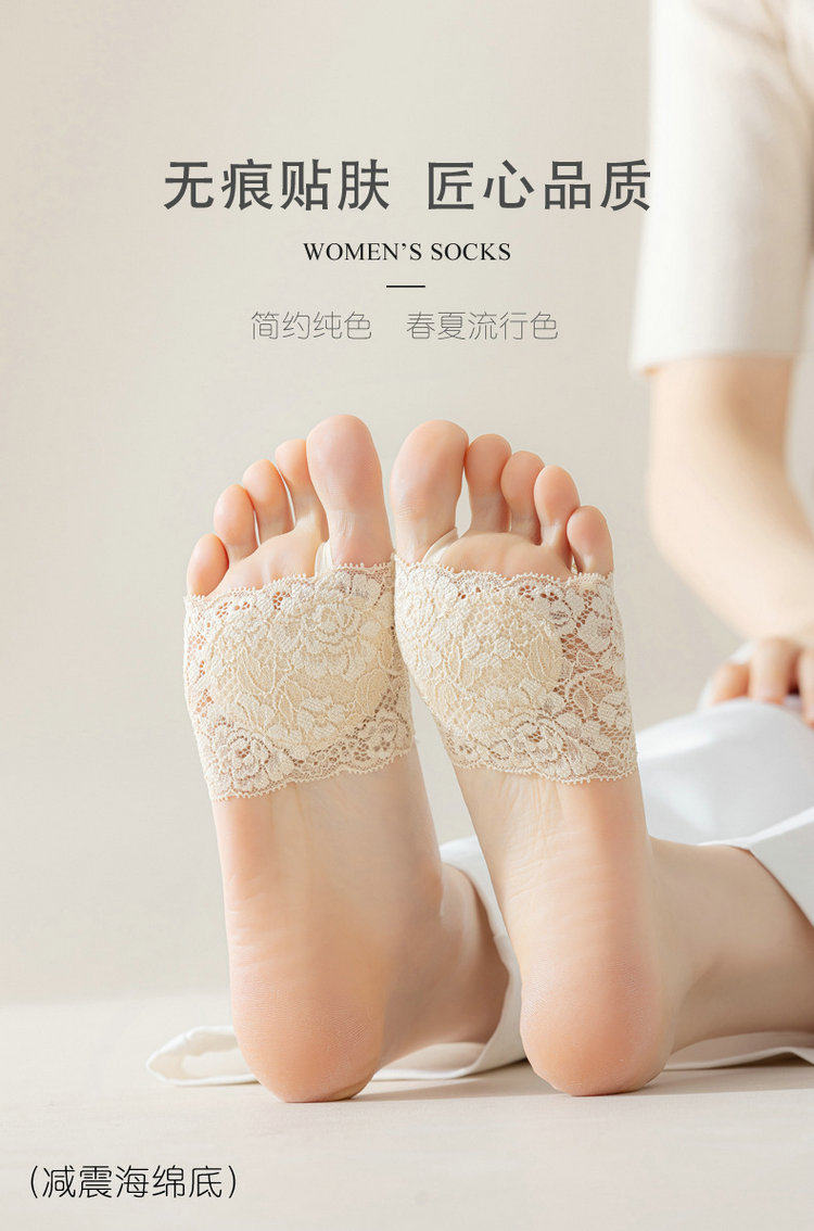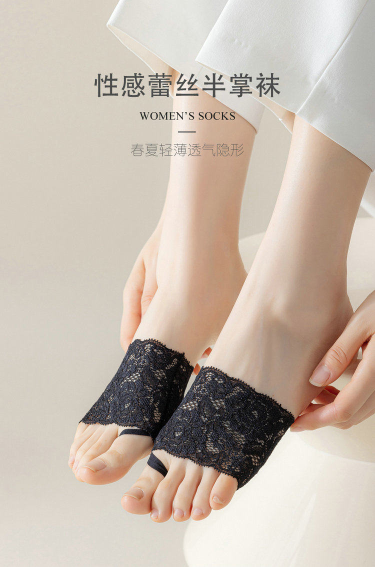 Summer High-Heeled Shoe Socks for Women, Half-Length Socks, Split-Toe Forefoot Socks, Anti-Chafing Half-Length Lace Sandals, Slippers, Invisible Socks