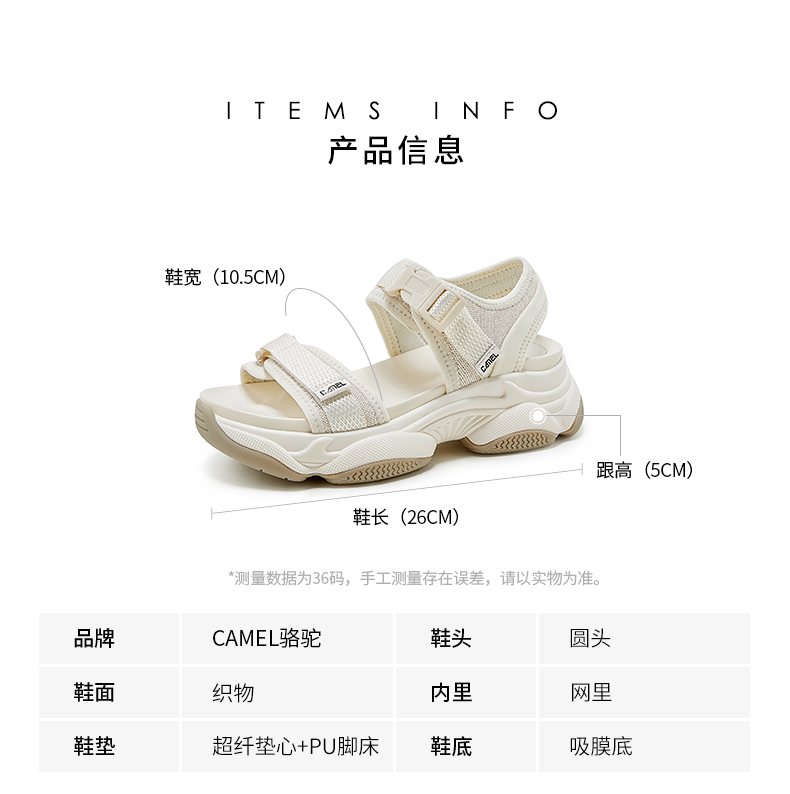 Camel Women's Shoes 2025 Summer New Thick-Soled Beach Shoes Fashionable Casual Soft-Soled Sports Velcro Outer Sandals