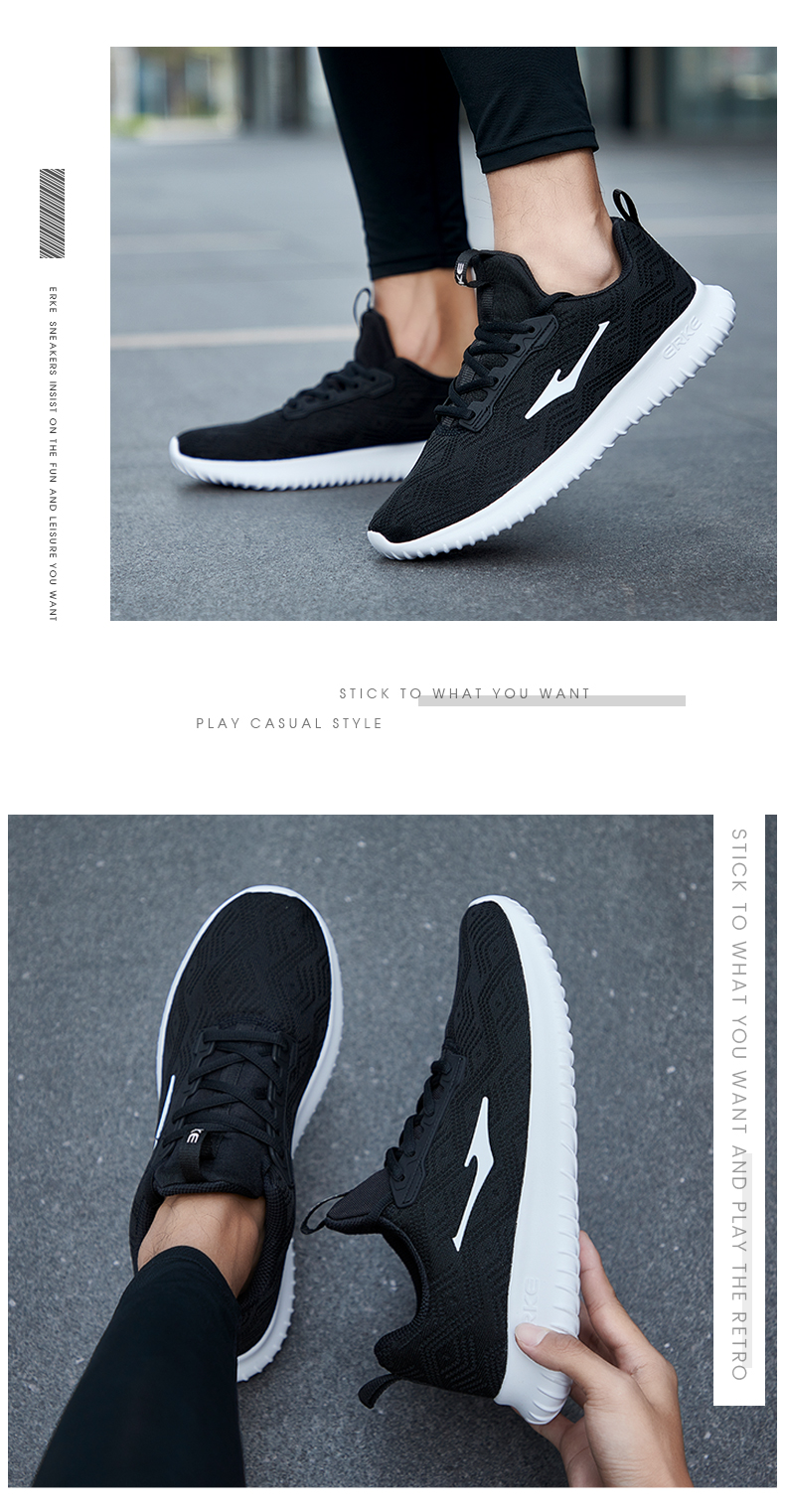 Hongxing Erke Men's Sneakers 2025 Autumn and Winter New Mesh Casual Soft-Soled Fleece-Lined Running Shoes
