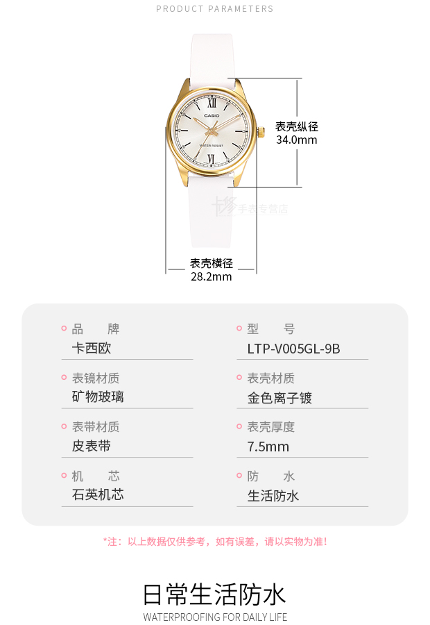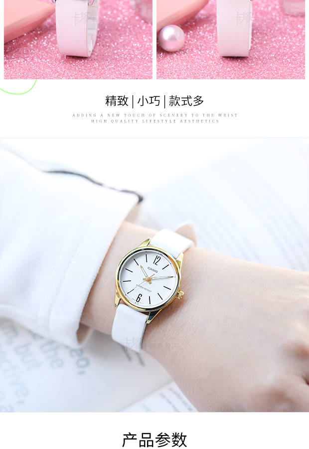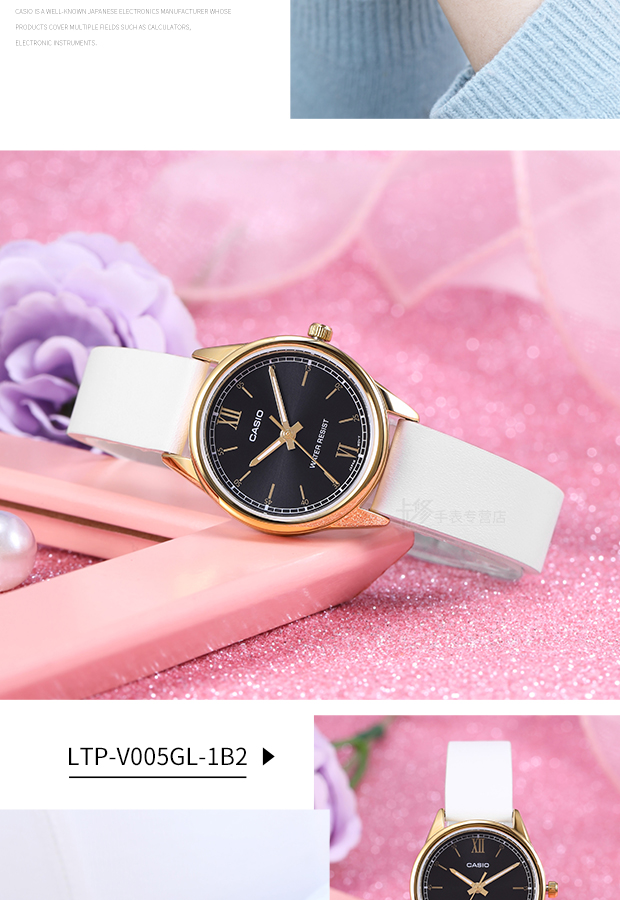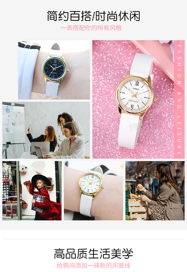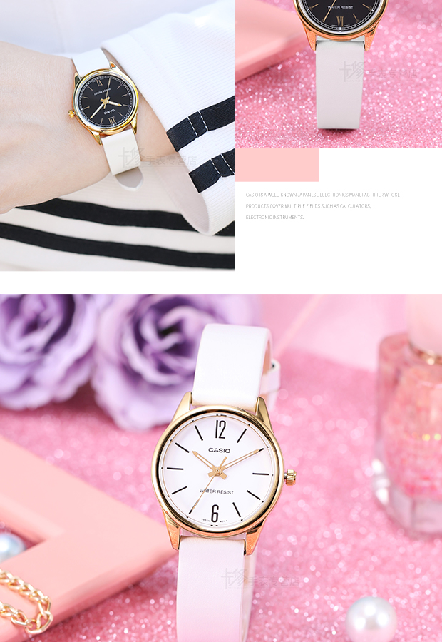Casio Watch Women's Watch Waterproof Simple and Stylish Quartz Watch Genuine Leather White Ladies Watch Ltp-V005
