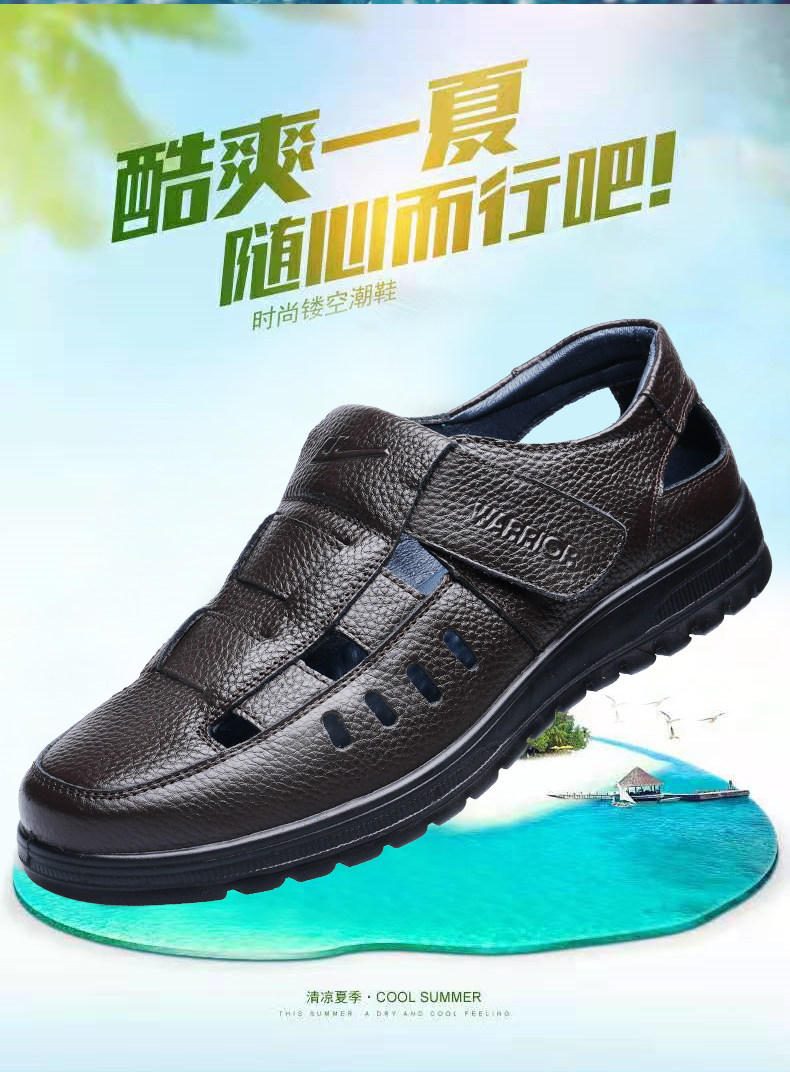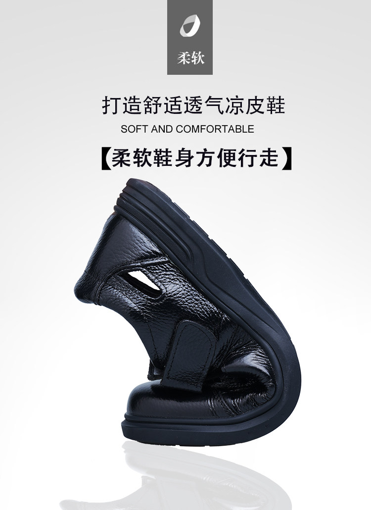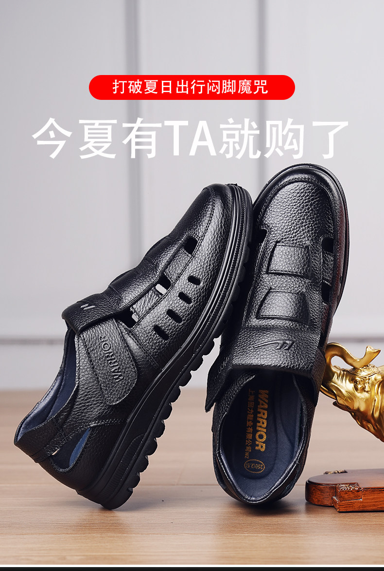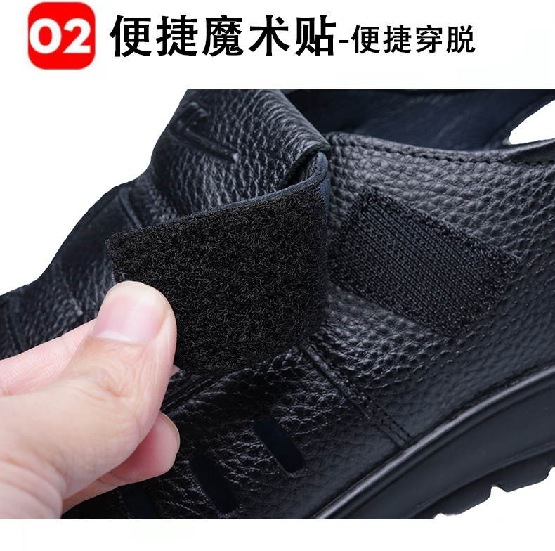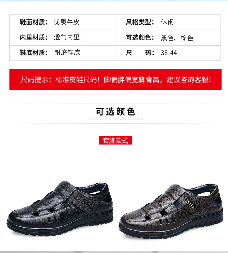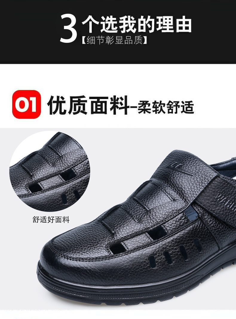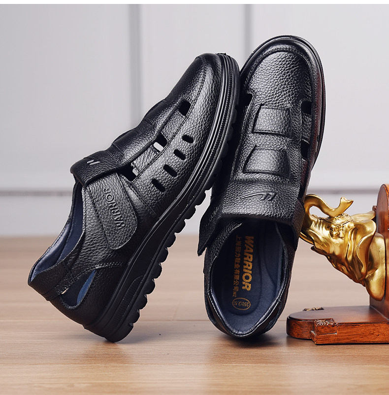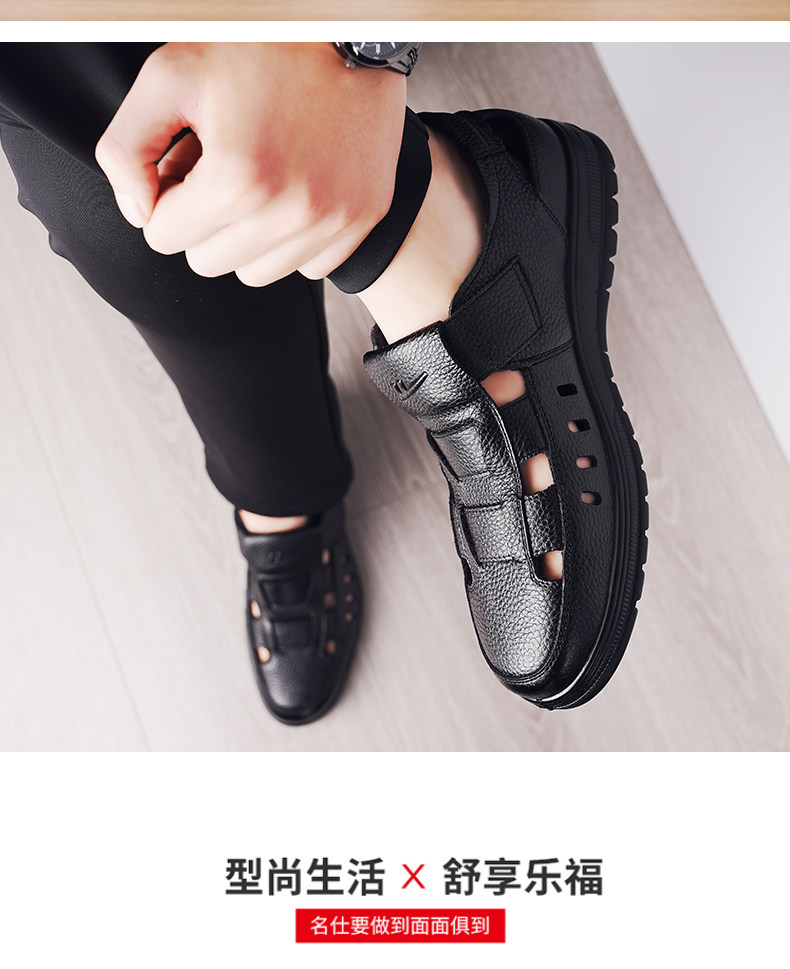 Pull-Back Leather Sandals for Men, Genuine Leather Summer Men's Closed-Toe Soft-Soled Sandals, Breathable Hollow-Out Shoes for Middle-Aged and Elderly Men, Dad Shoes
